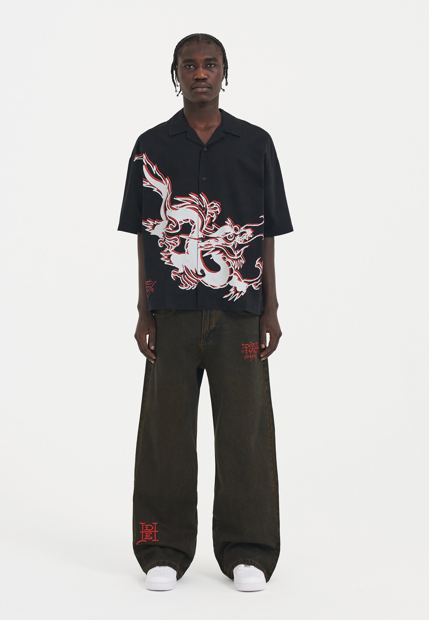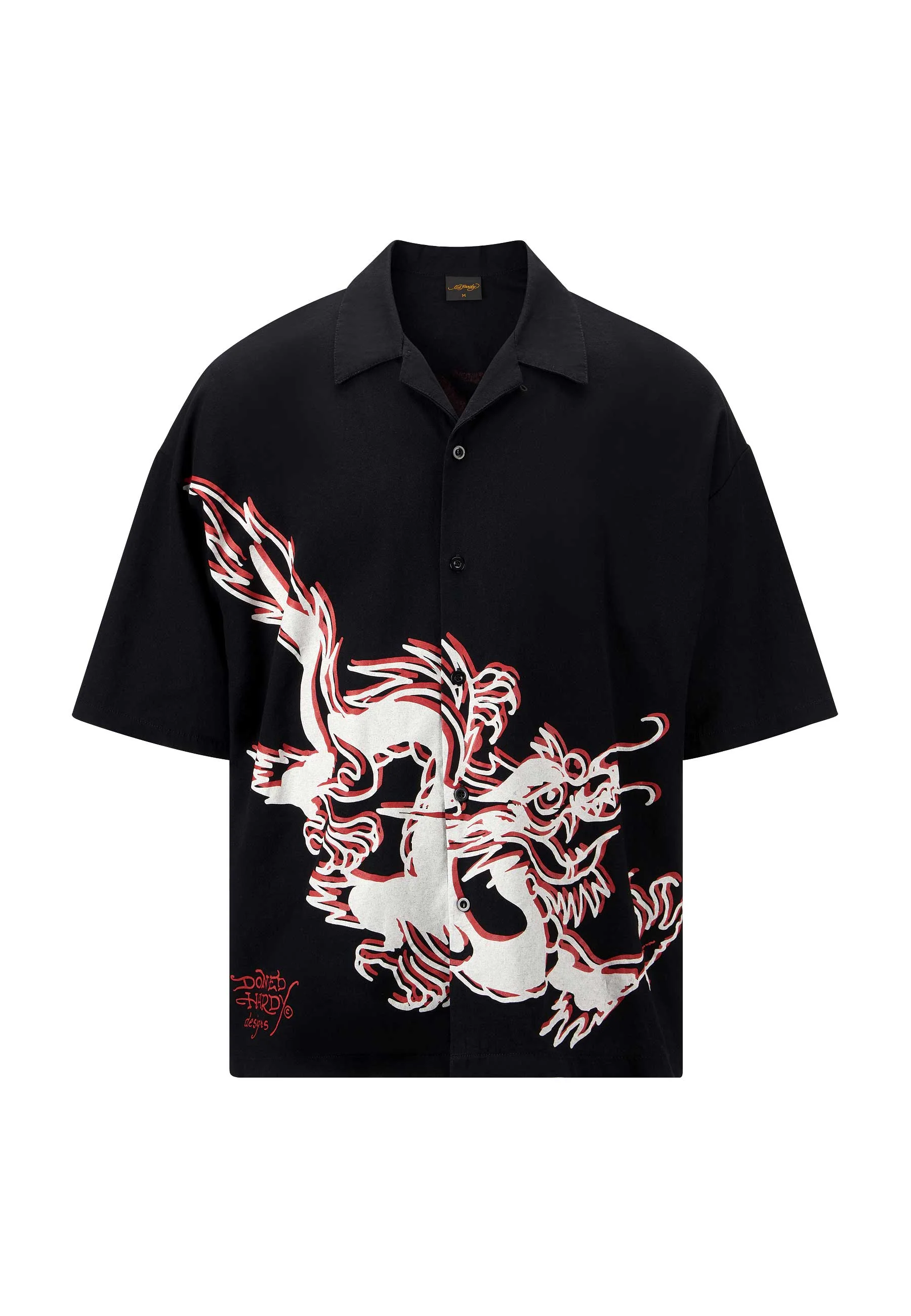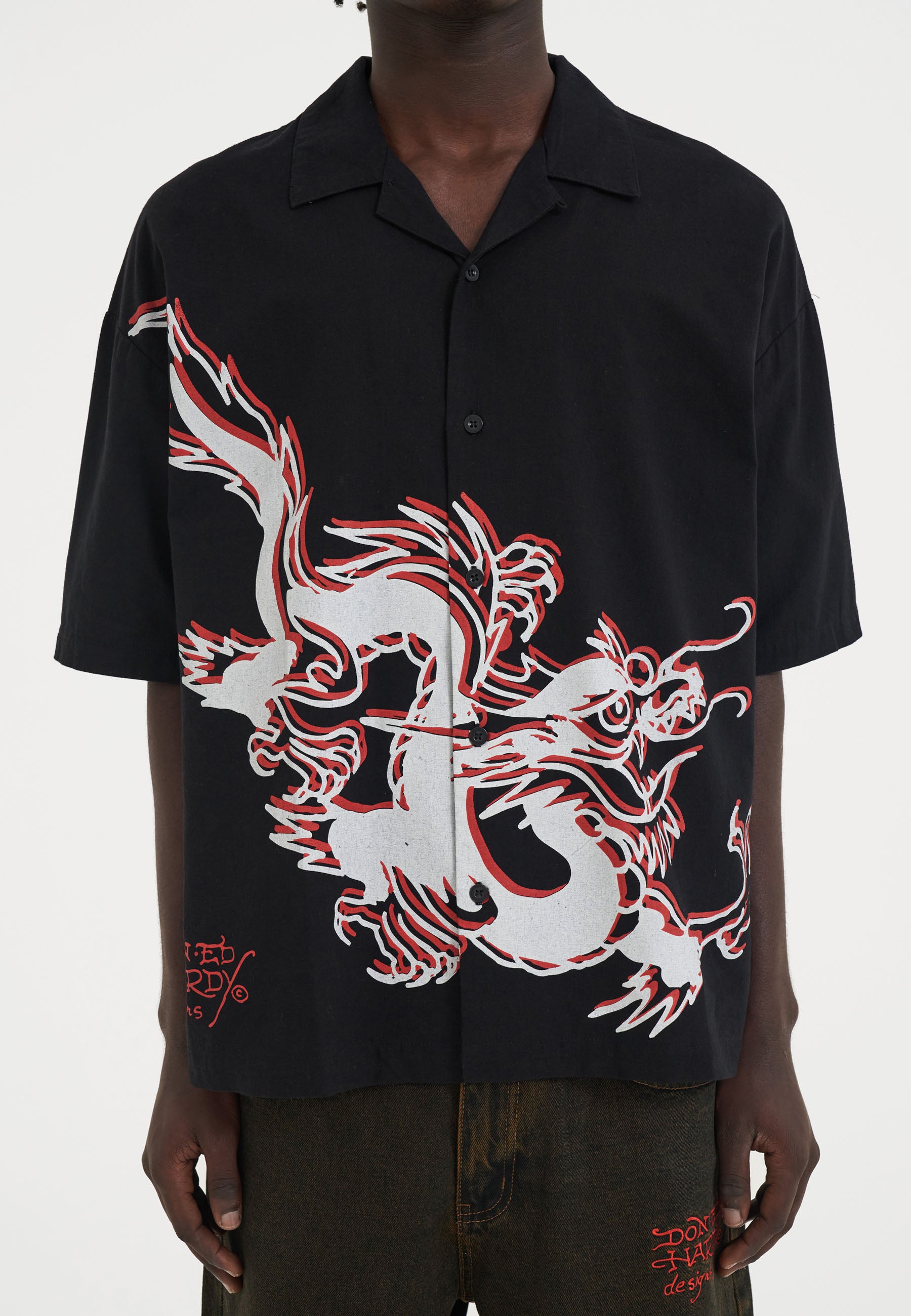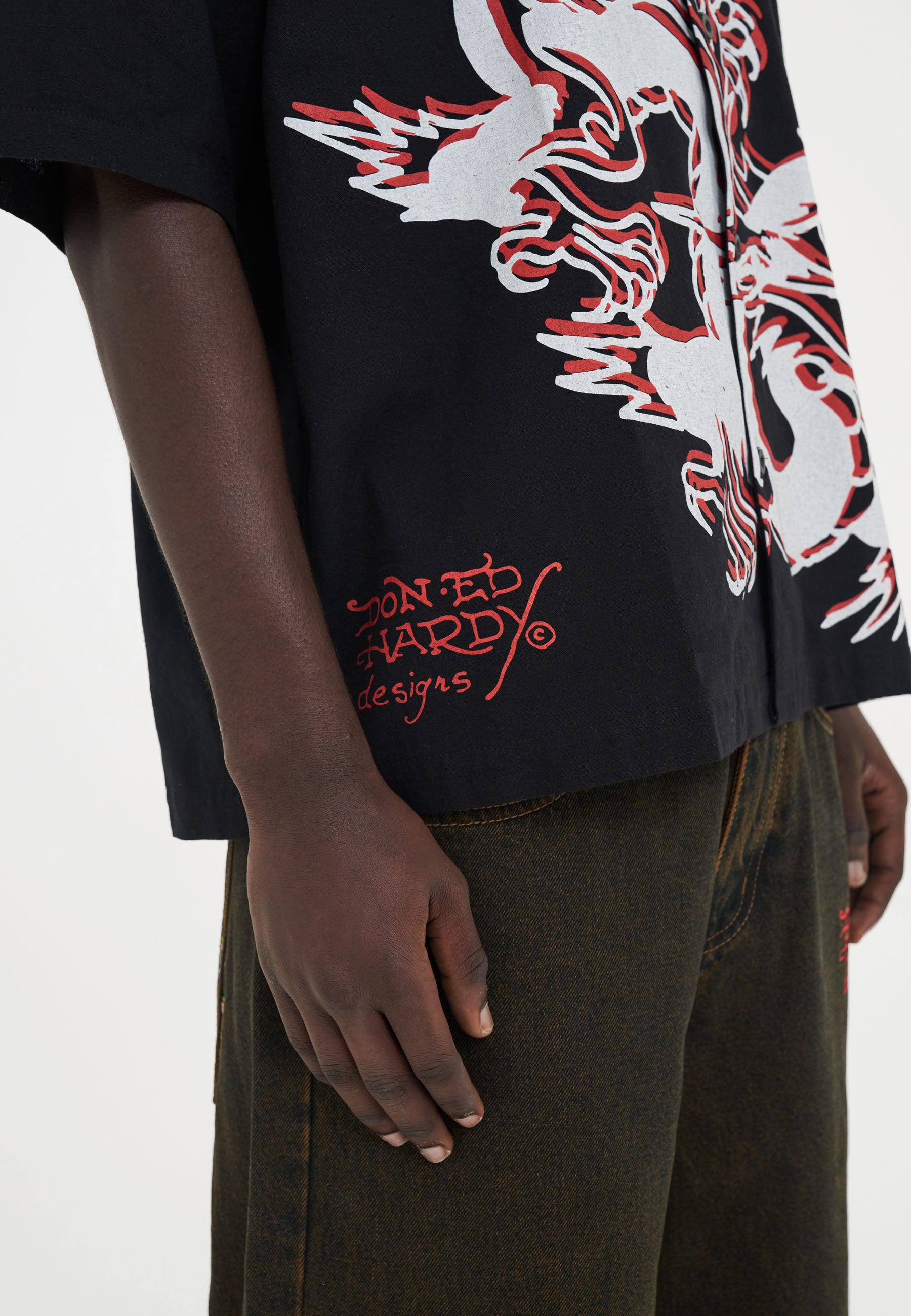 Herre offset Dragon Camp kortærmet skjorte - sort