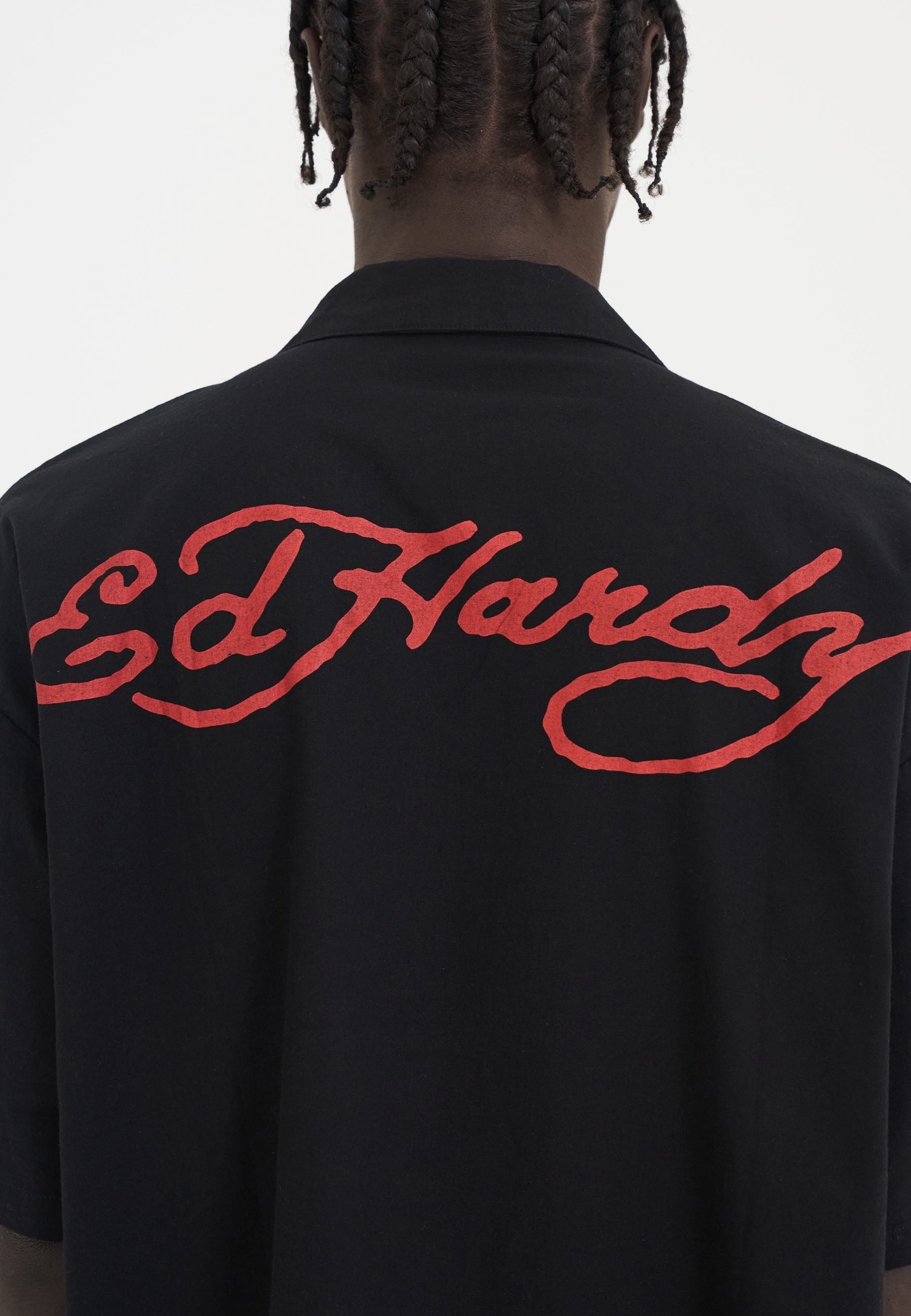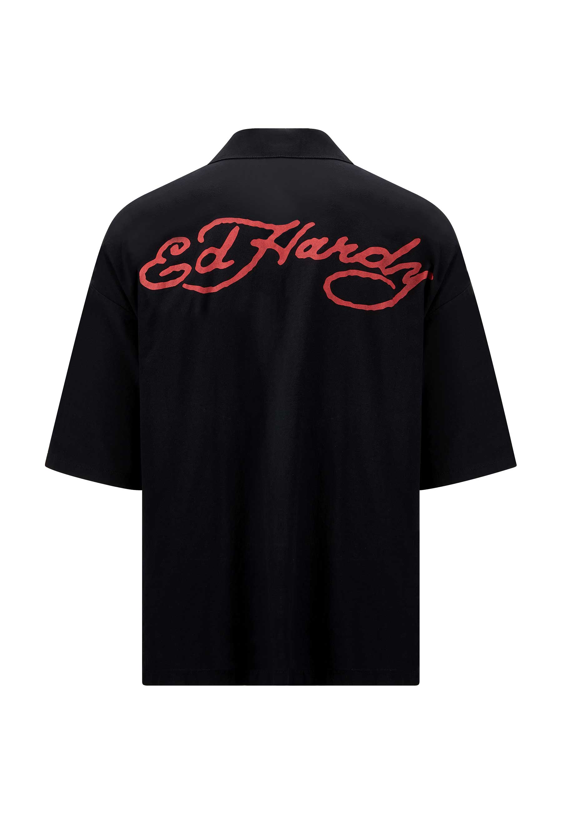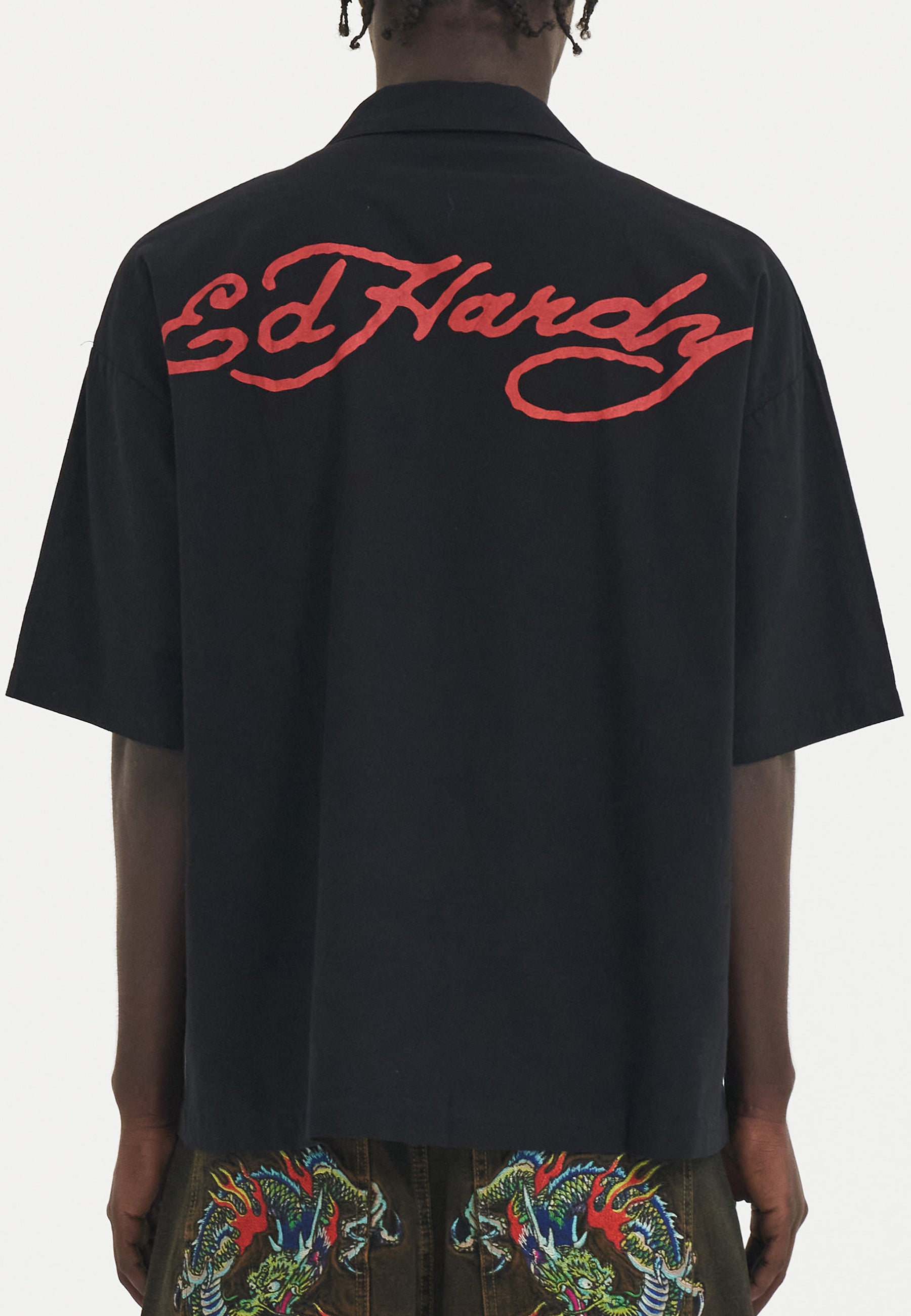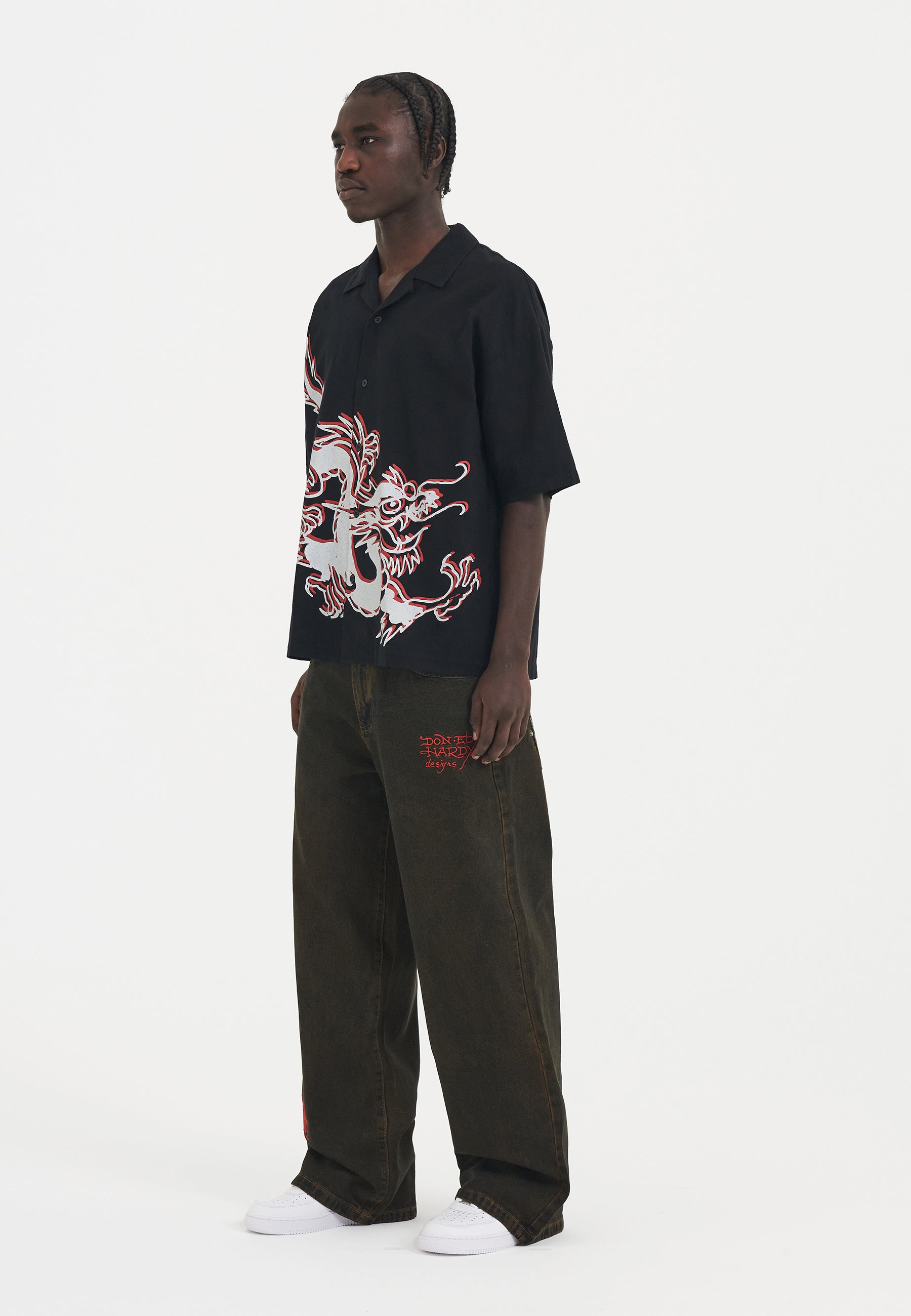 Herre offset Dragon Camp kortærmet skjorte - sort