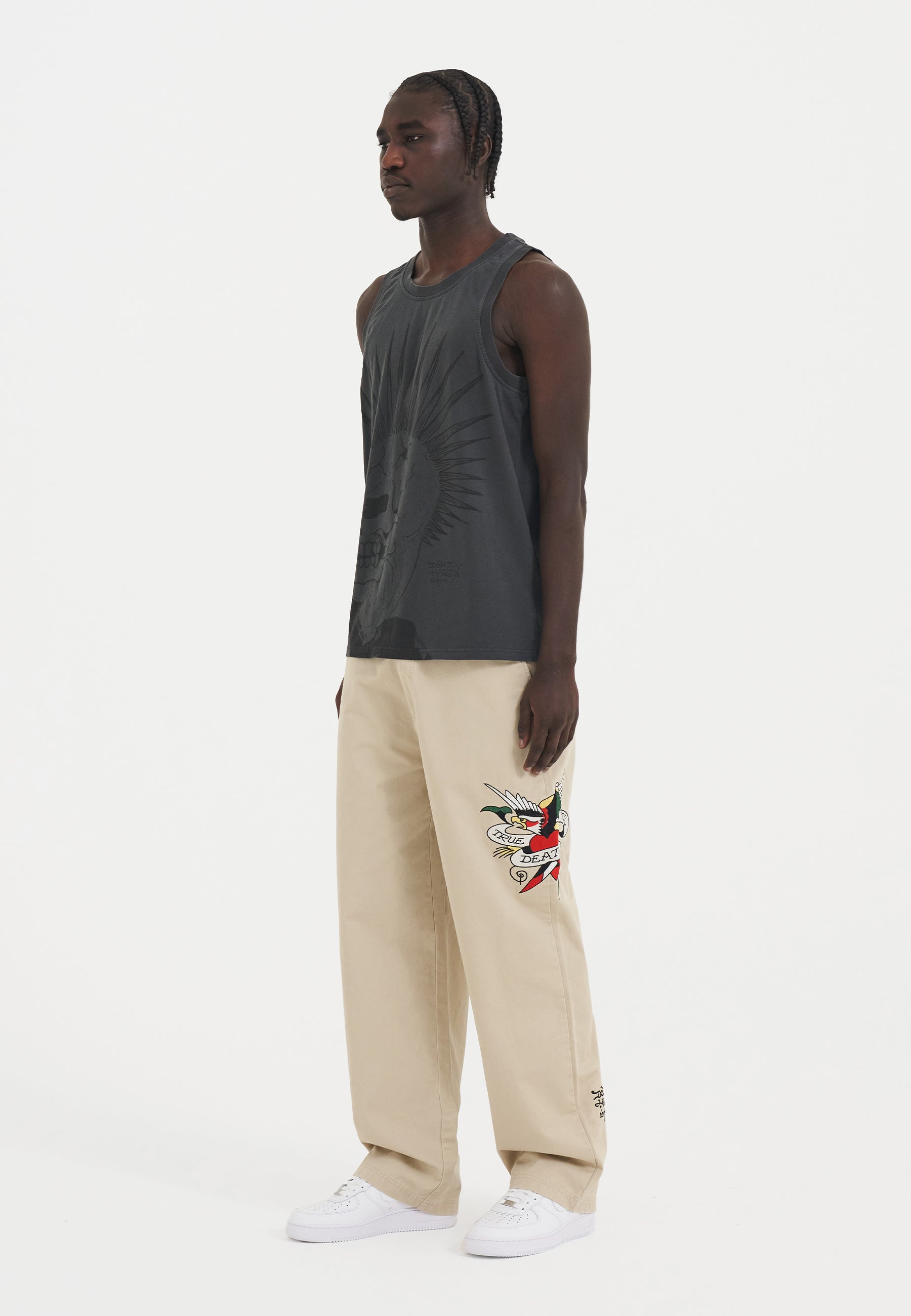 Med et tonalt grafisk og håndskrevet motiv hylder Ed Hardy den kultur, der former den nye kollektion.