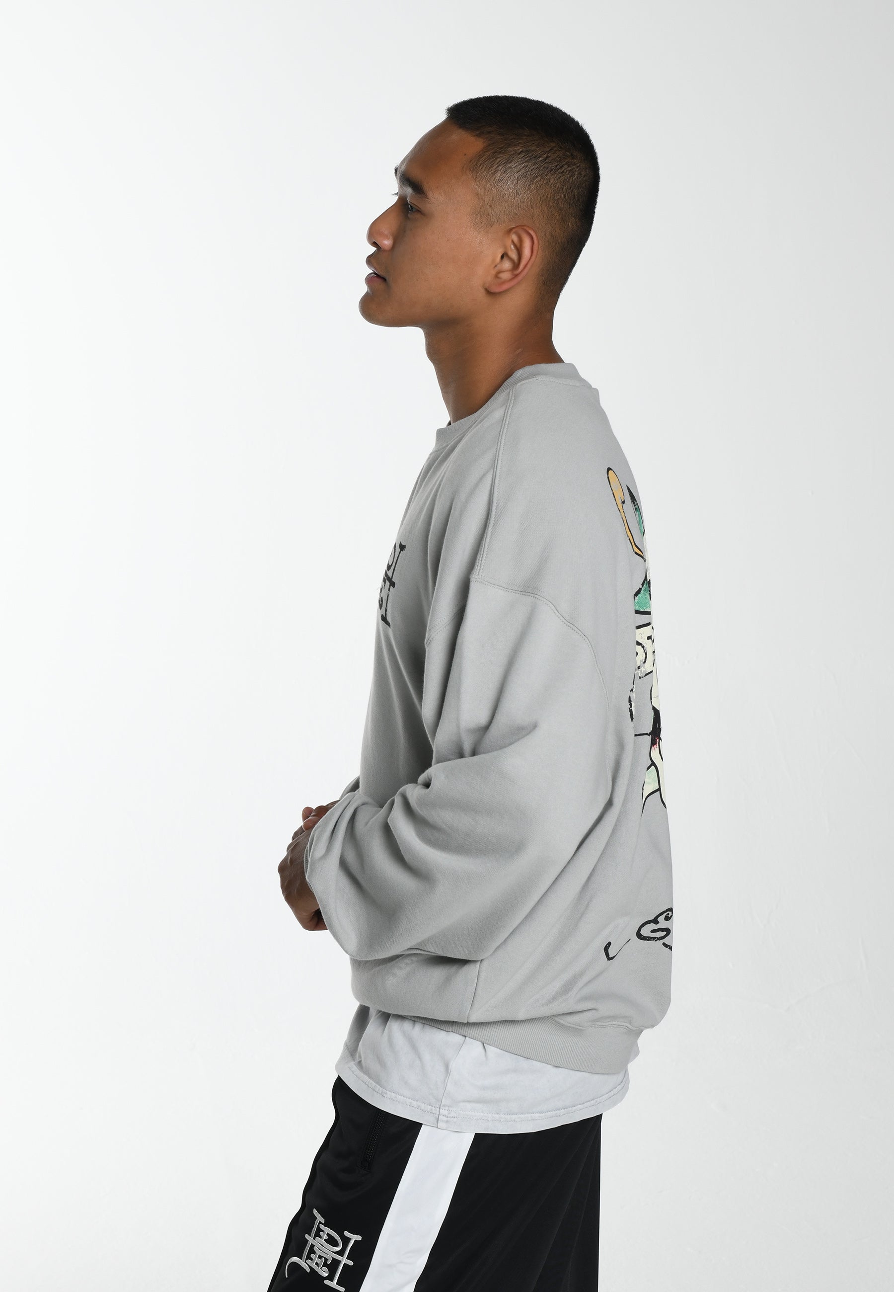 Slow-Love grafisk sweatshirt med rund hals til mænd - grå