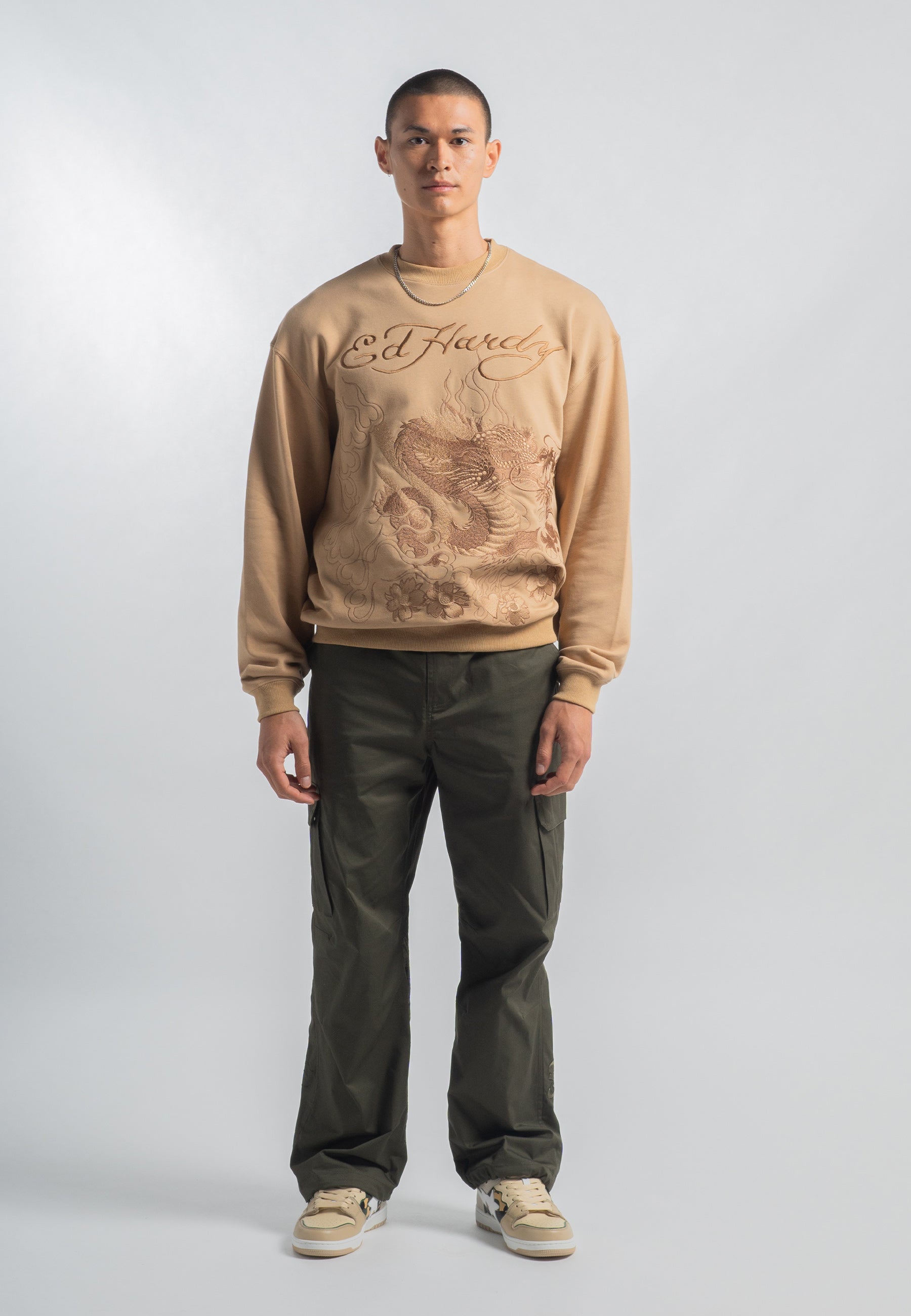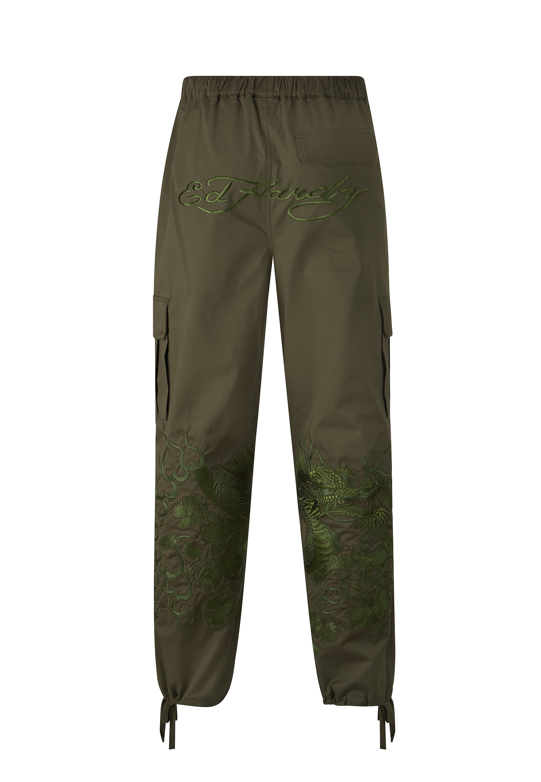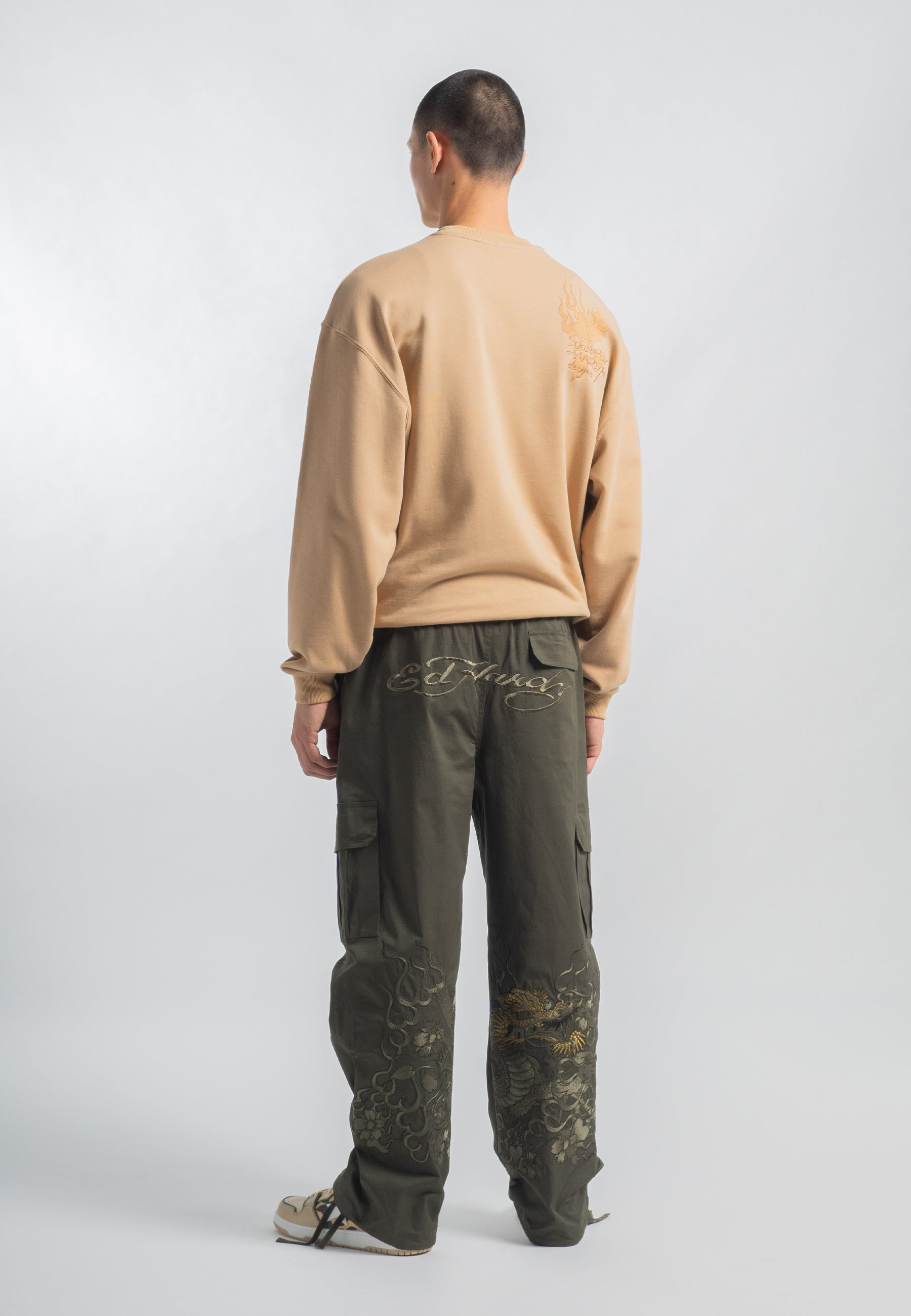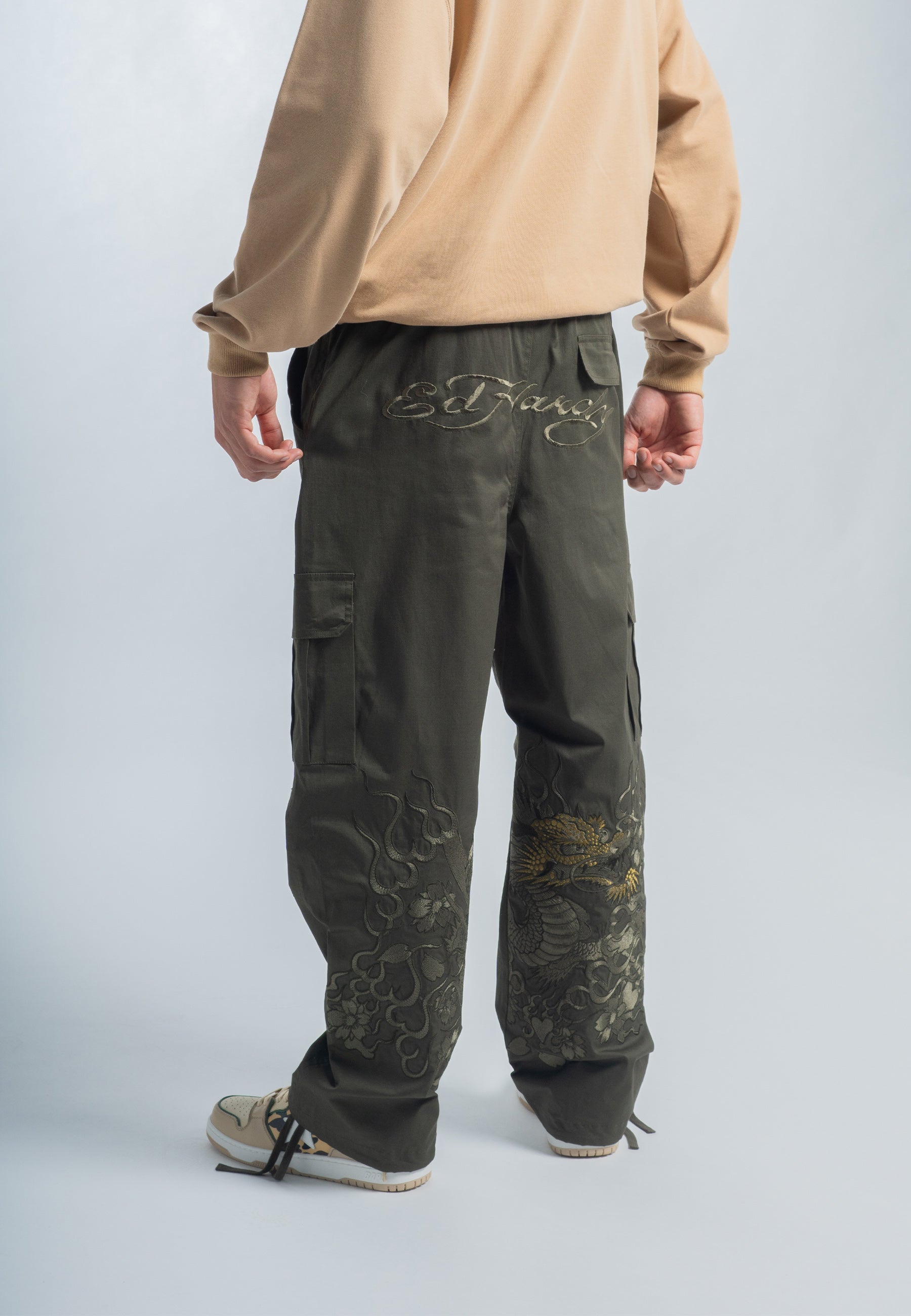 Vi præsenterer Vintage Dragon Combat Trouser. Designet byder på omhyggeligt udformet vintage-inspireret tonalt broderi og hylder Ed Hardys arkivkunstværker.