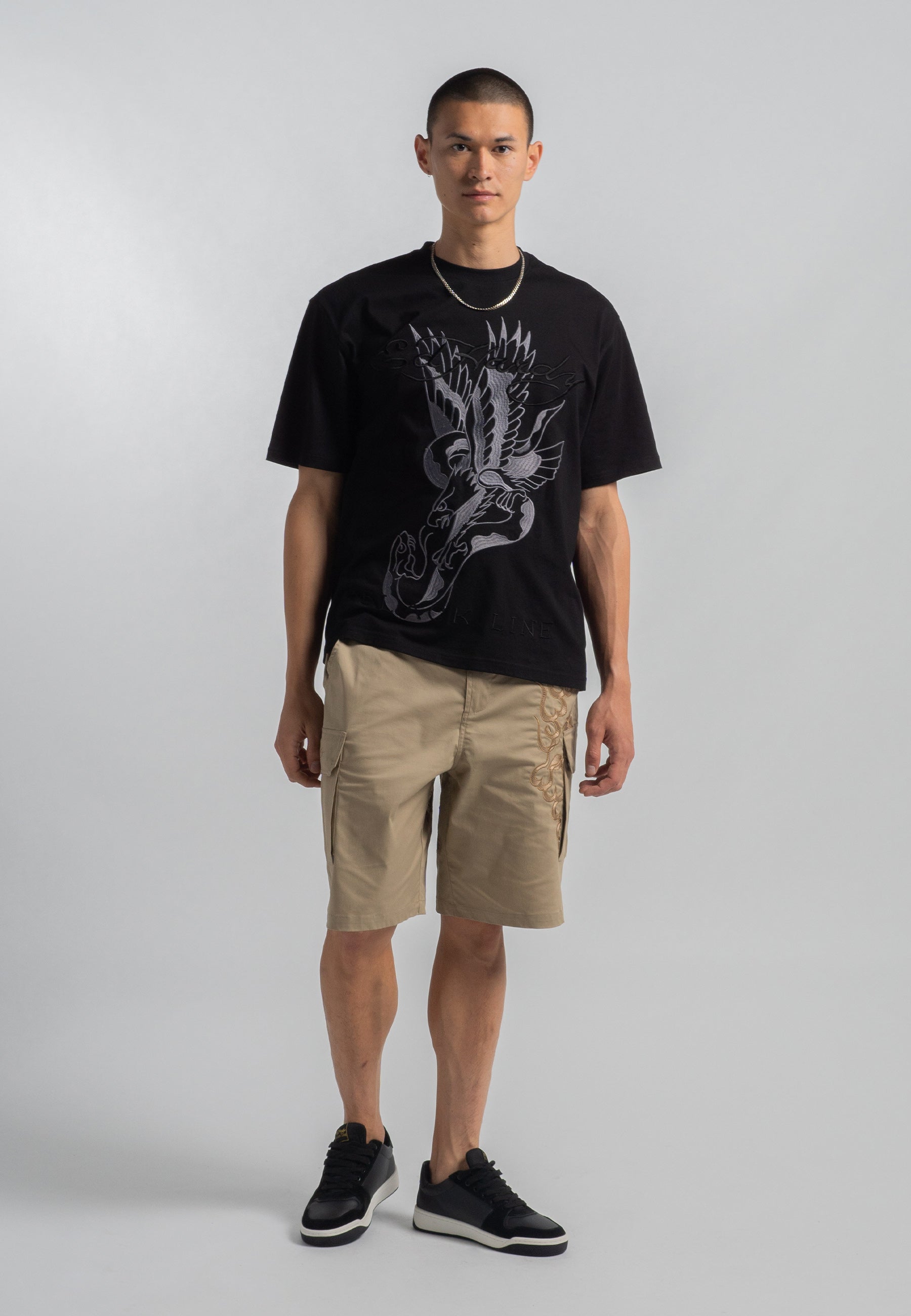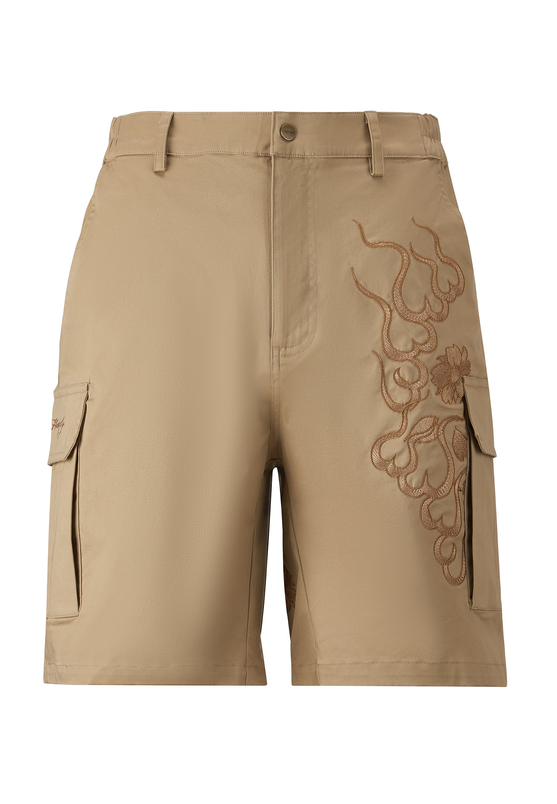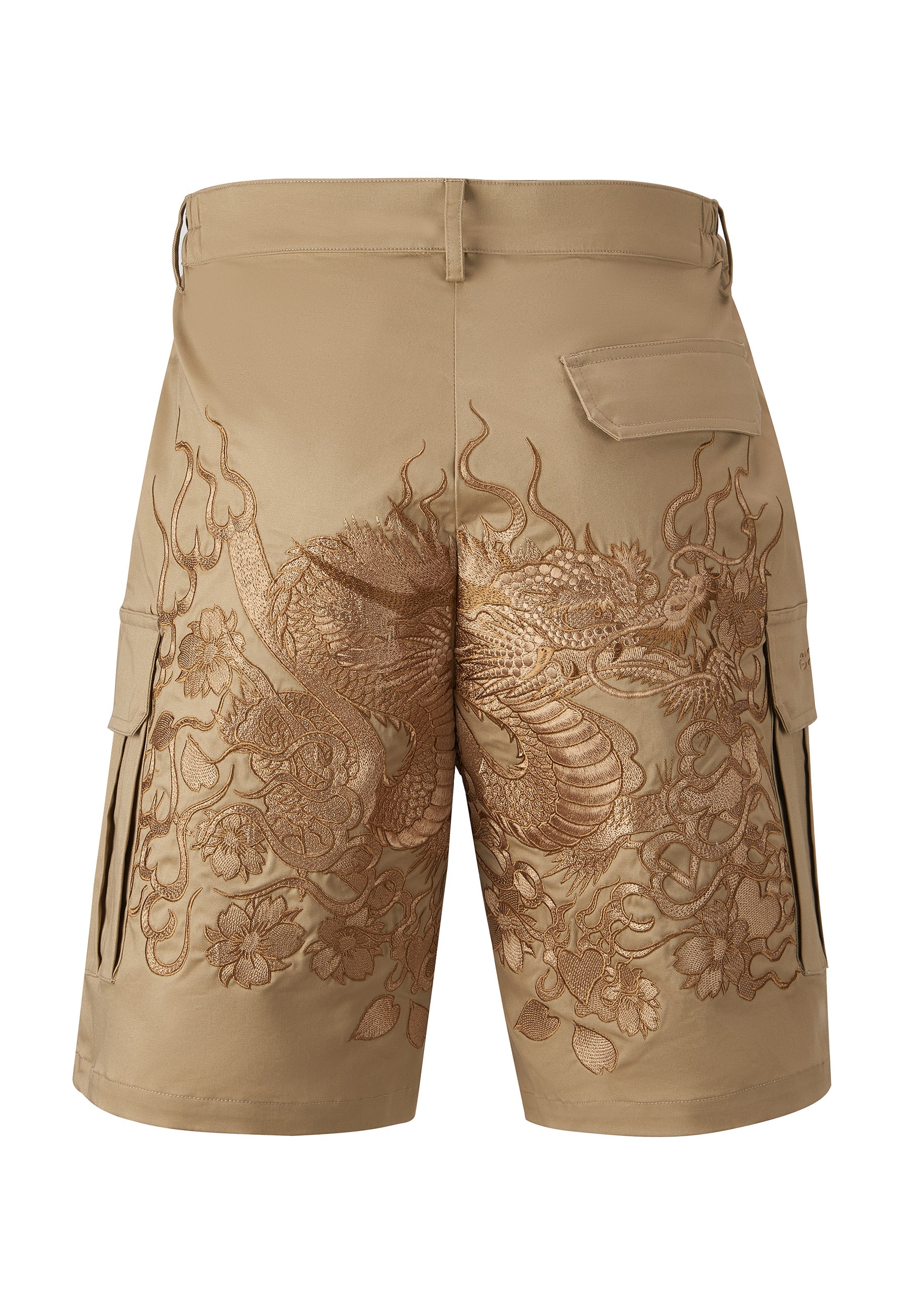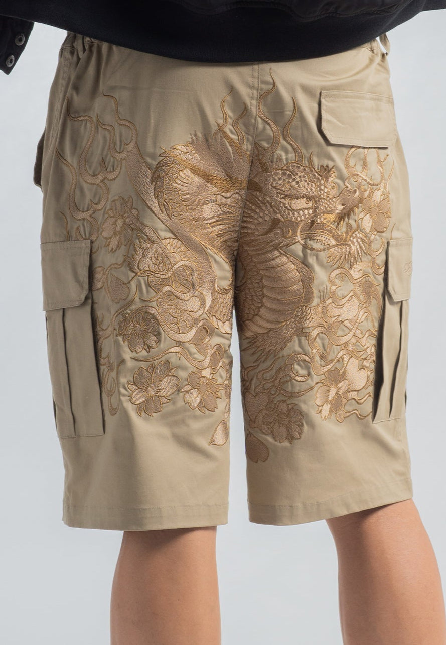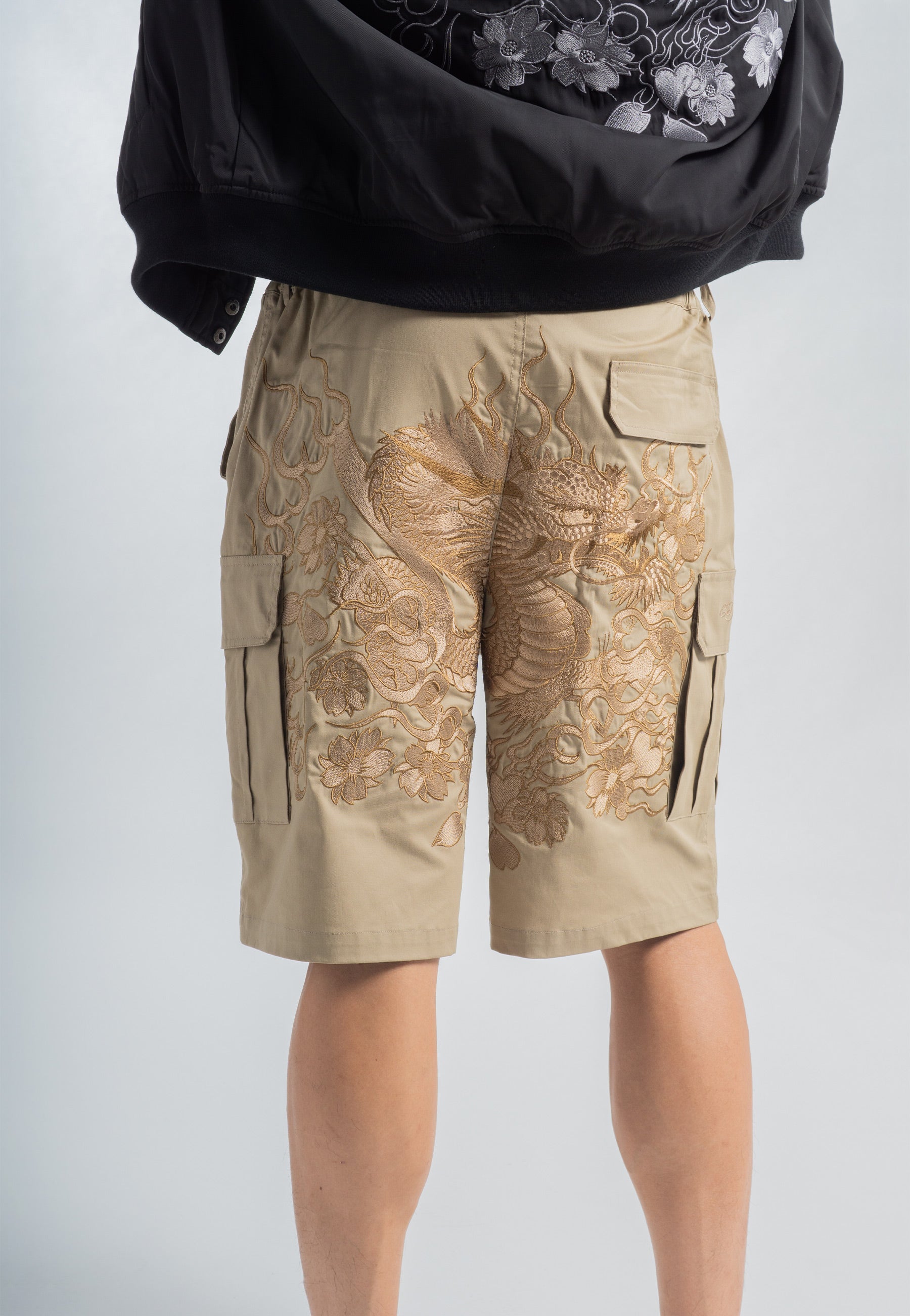 Herre Vintage-Dragon Broderede Combat Bukser Shorts - Beige