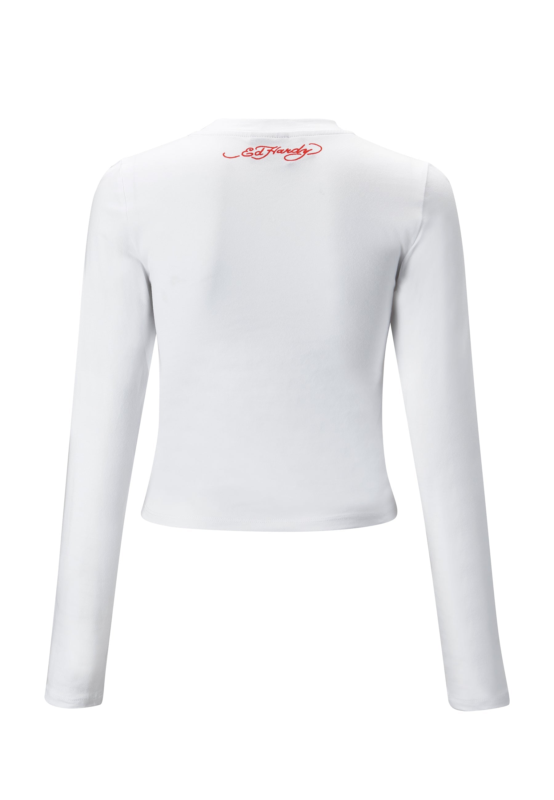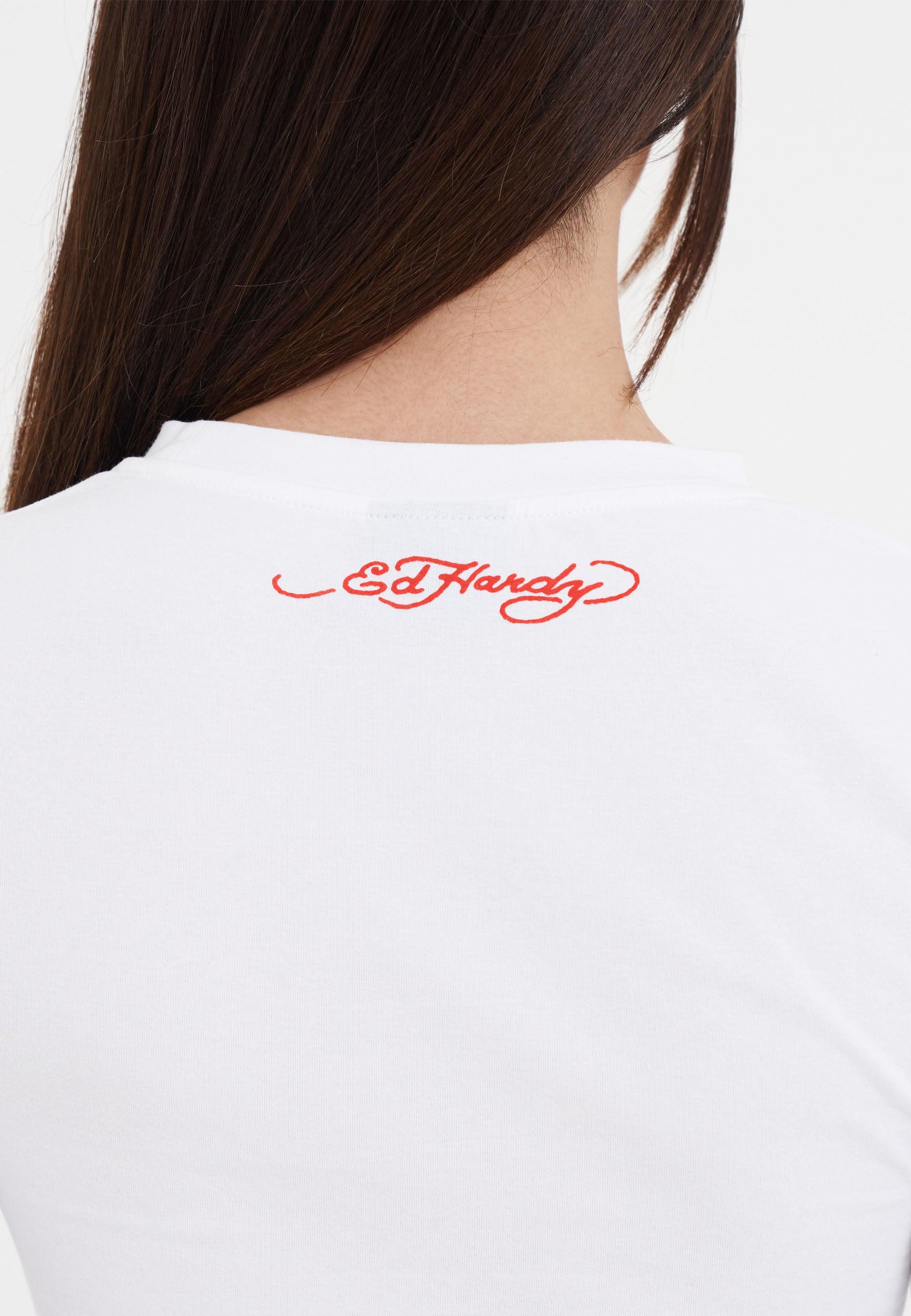 Bomuld spandex-jersey er figursyet og behagelig, og den vovede grafik og Ed Hardy-signaturen gør den til et statement.