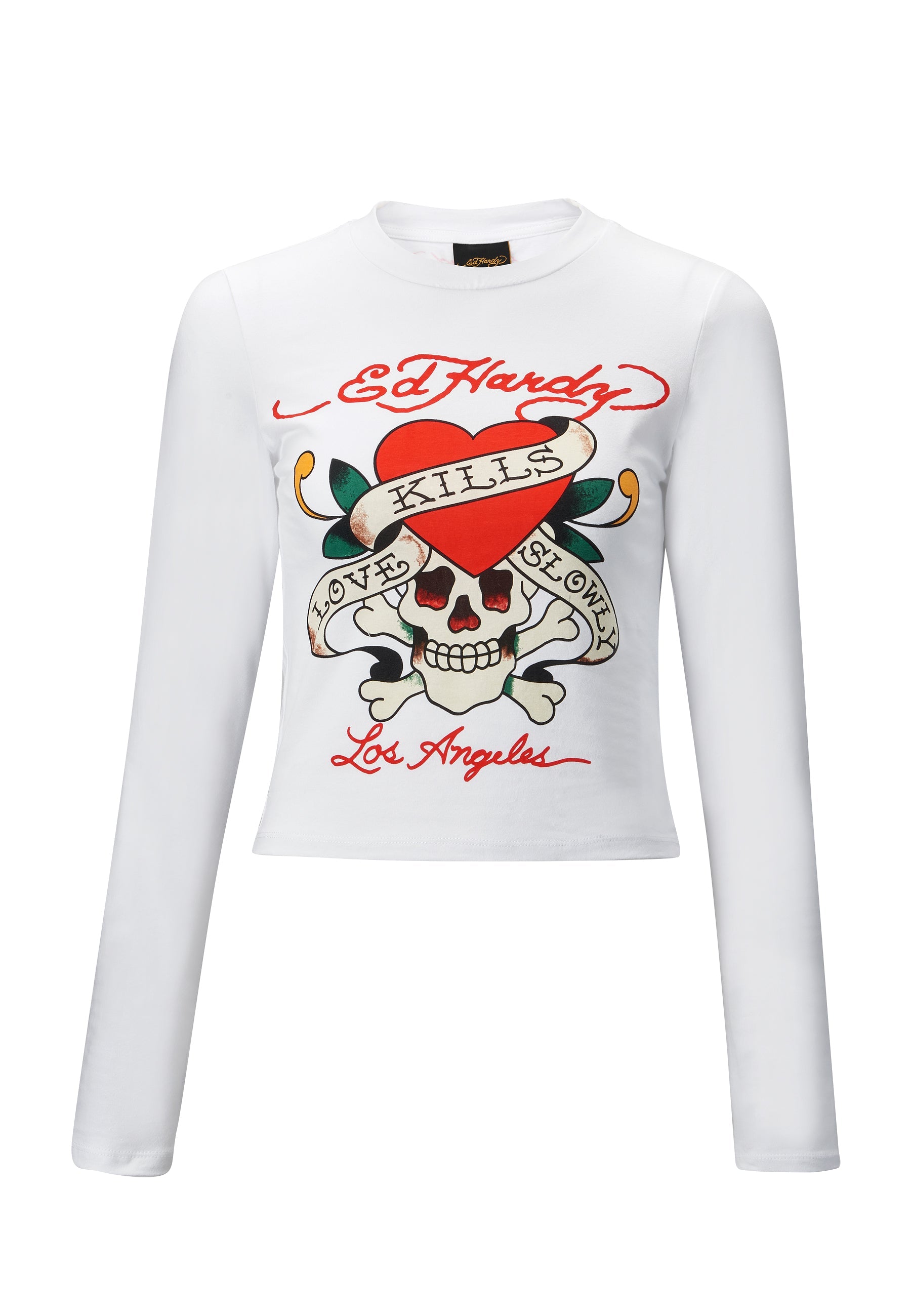 Dame Love Kills Langærmet T-Shirt - Hvid