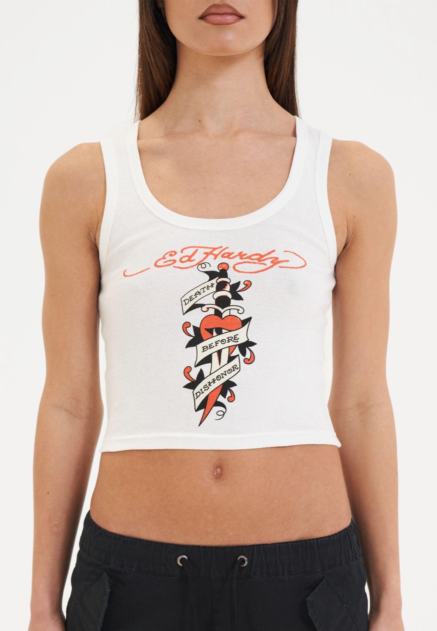 Womens Death Before Ribbed Cropped Vest - Hvid