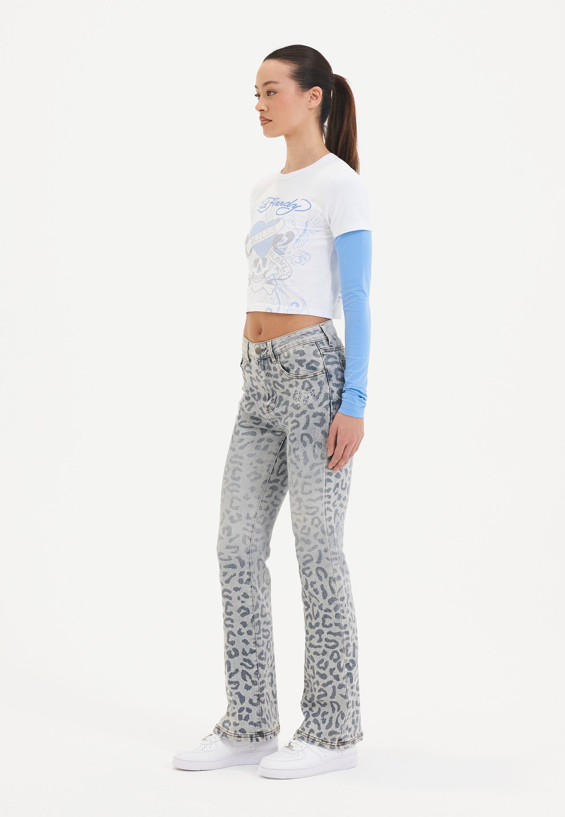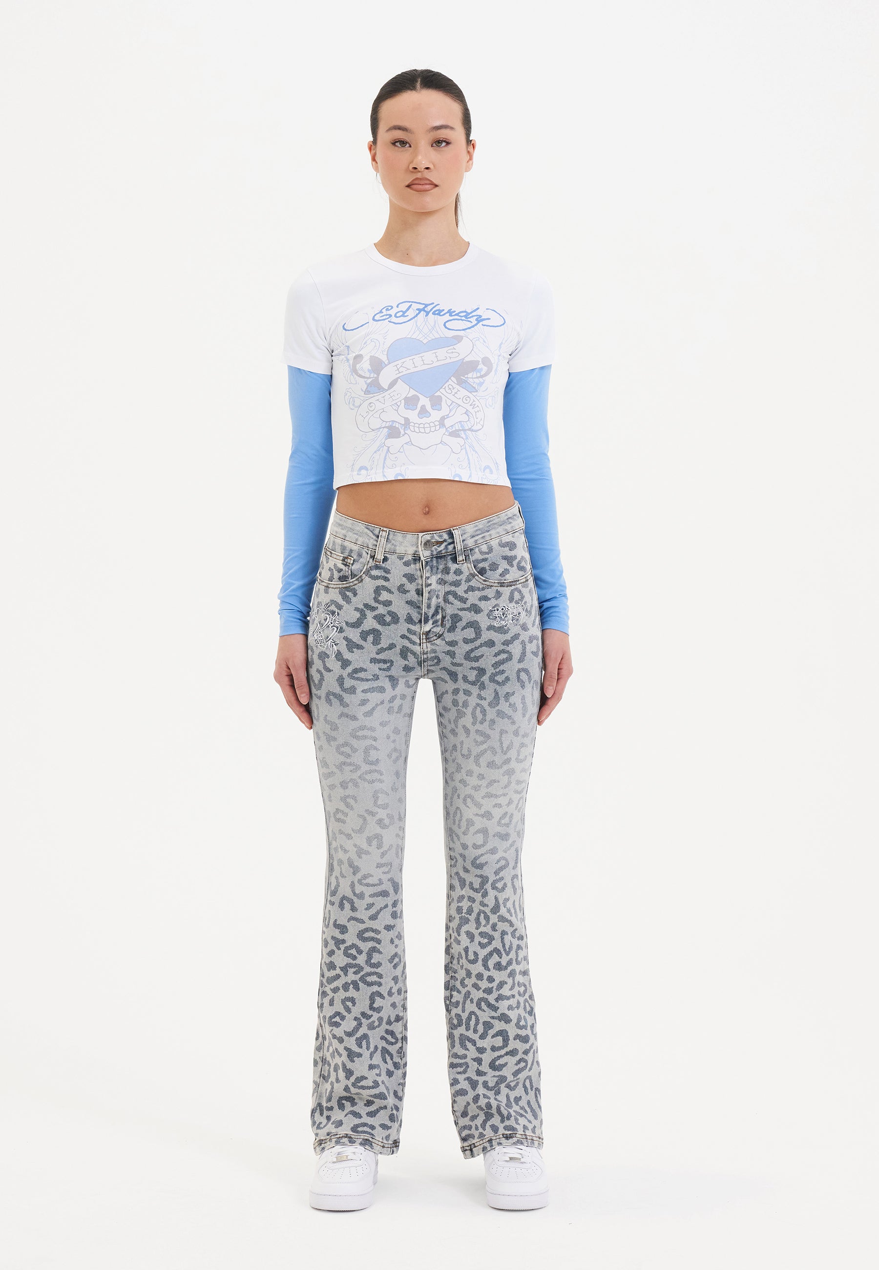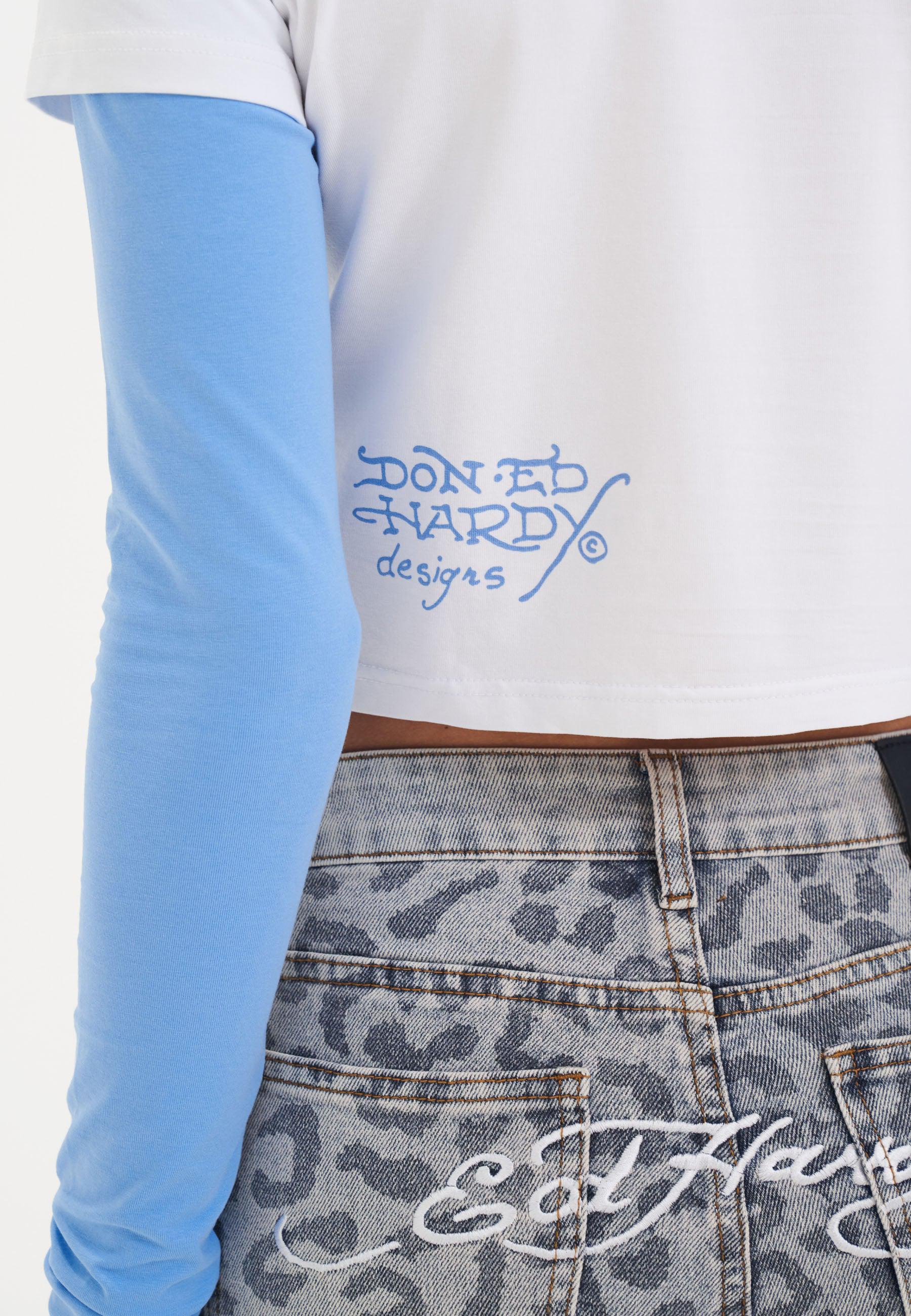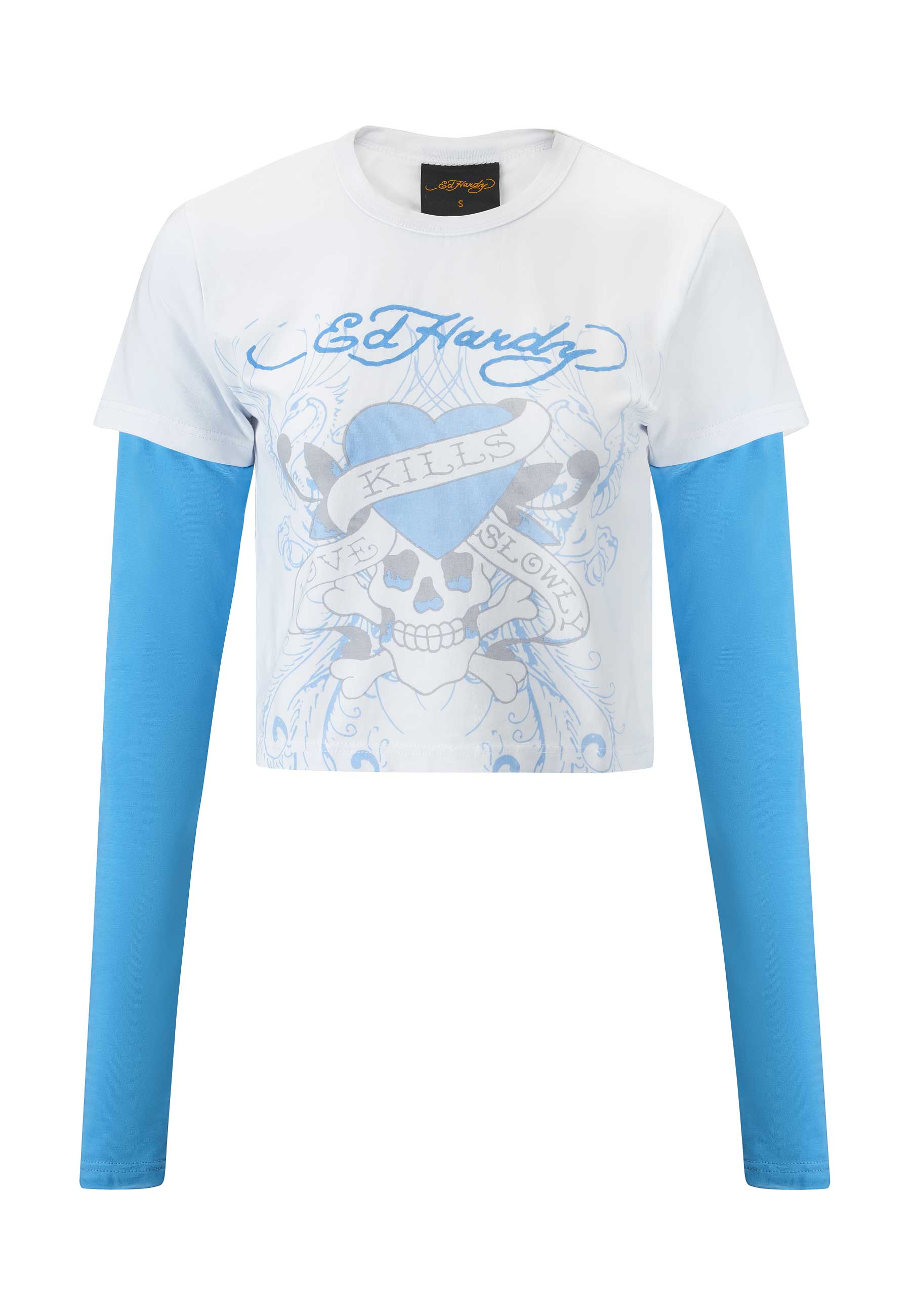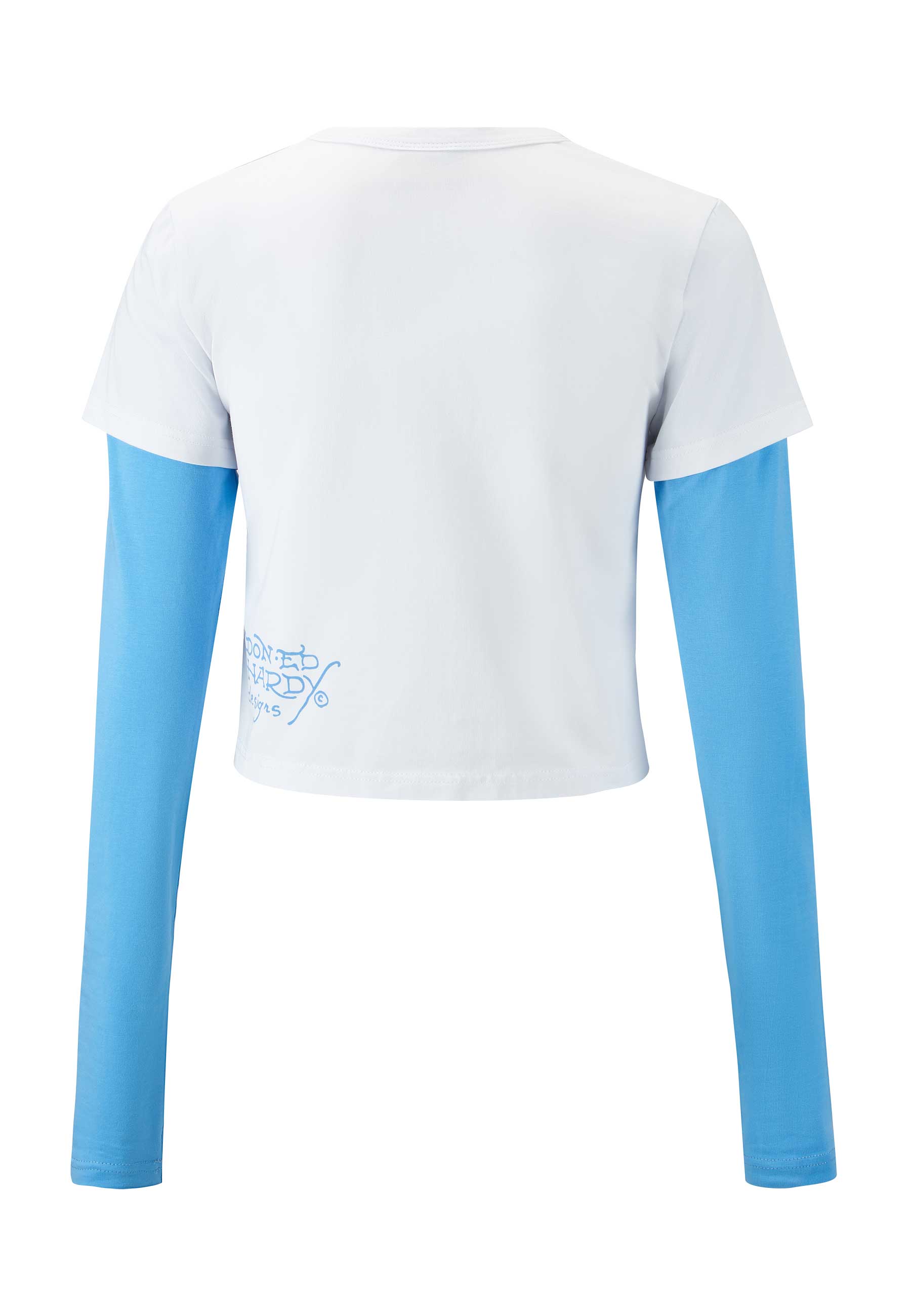 Dame Kill Slowly Double Sleeve Baby Tshirt Top - Hvid/Lyseblå