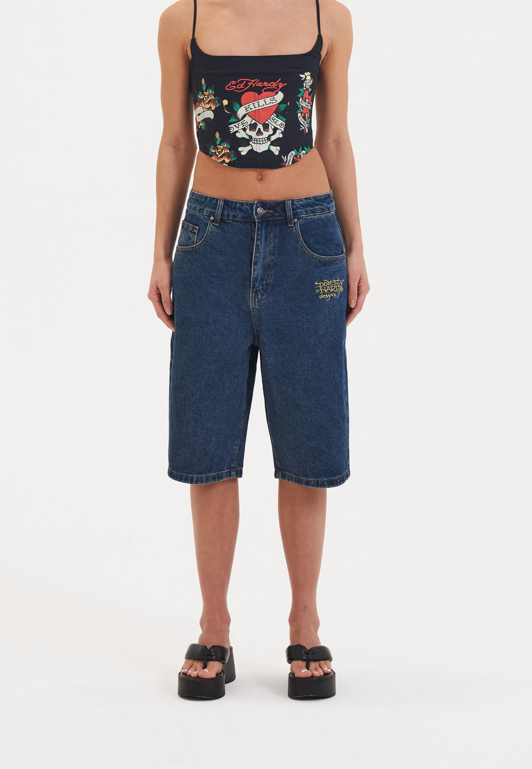 Dame Dragon Crawl Relaxed Denim Jorts Shorts - Indigo