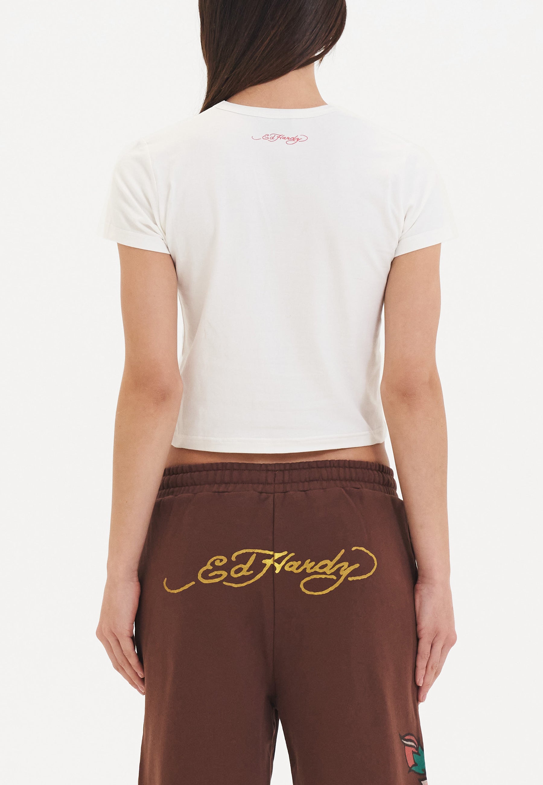 Dame Hell Swinging Baby Tshirt Top - Hvid