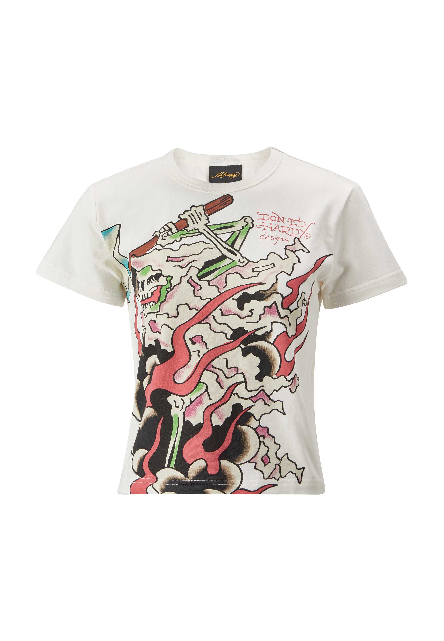 Den Hell Swinging Baby T-Shirt er prydet med Eds fuldfarvede grafik, der levende viser hans kreative oprør – et tidløst mærke, der konsekvent giver genlyd for hver sæson, der går.
