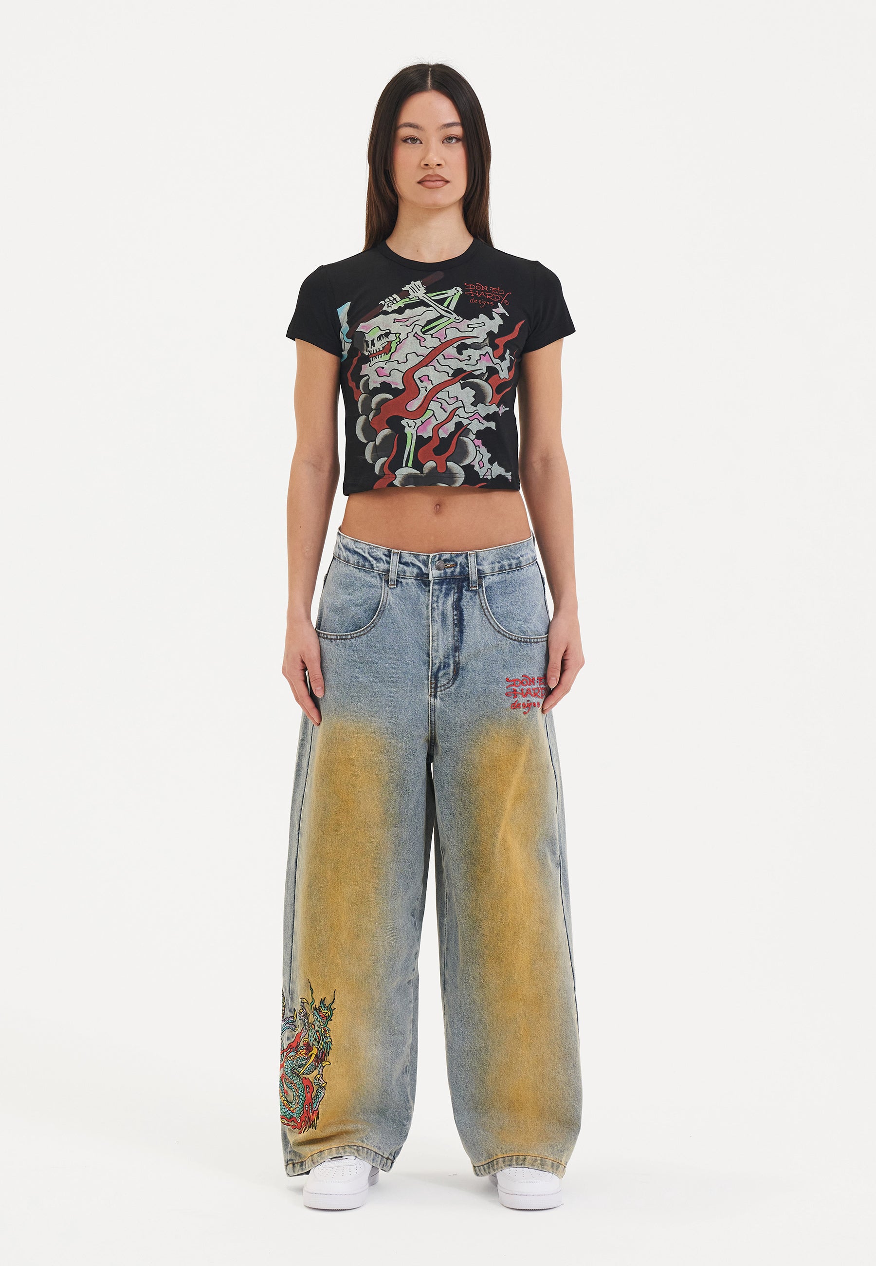 Dame Hell Swinging Baby Tshirt Top - Sort