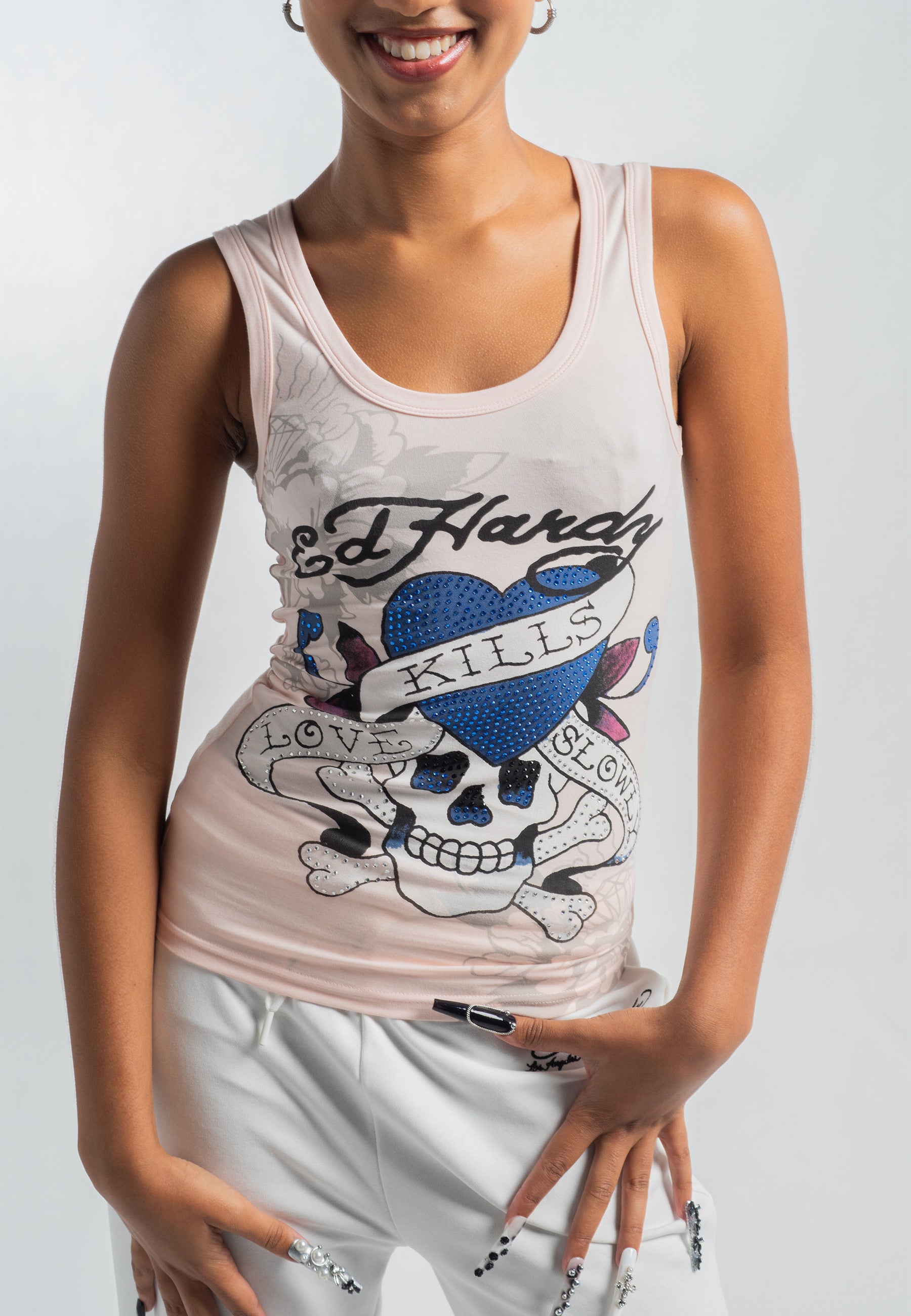 Udviklet sig over tid, det ikoniske Love Kills Slowly-emblem, dybt forankret i Ed Hardys arv, har taget nye fortolkninger til sig.