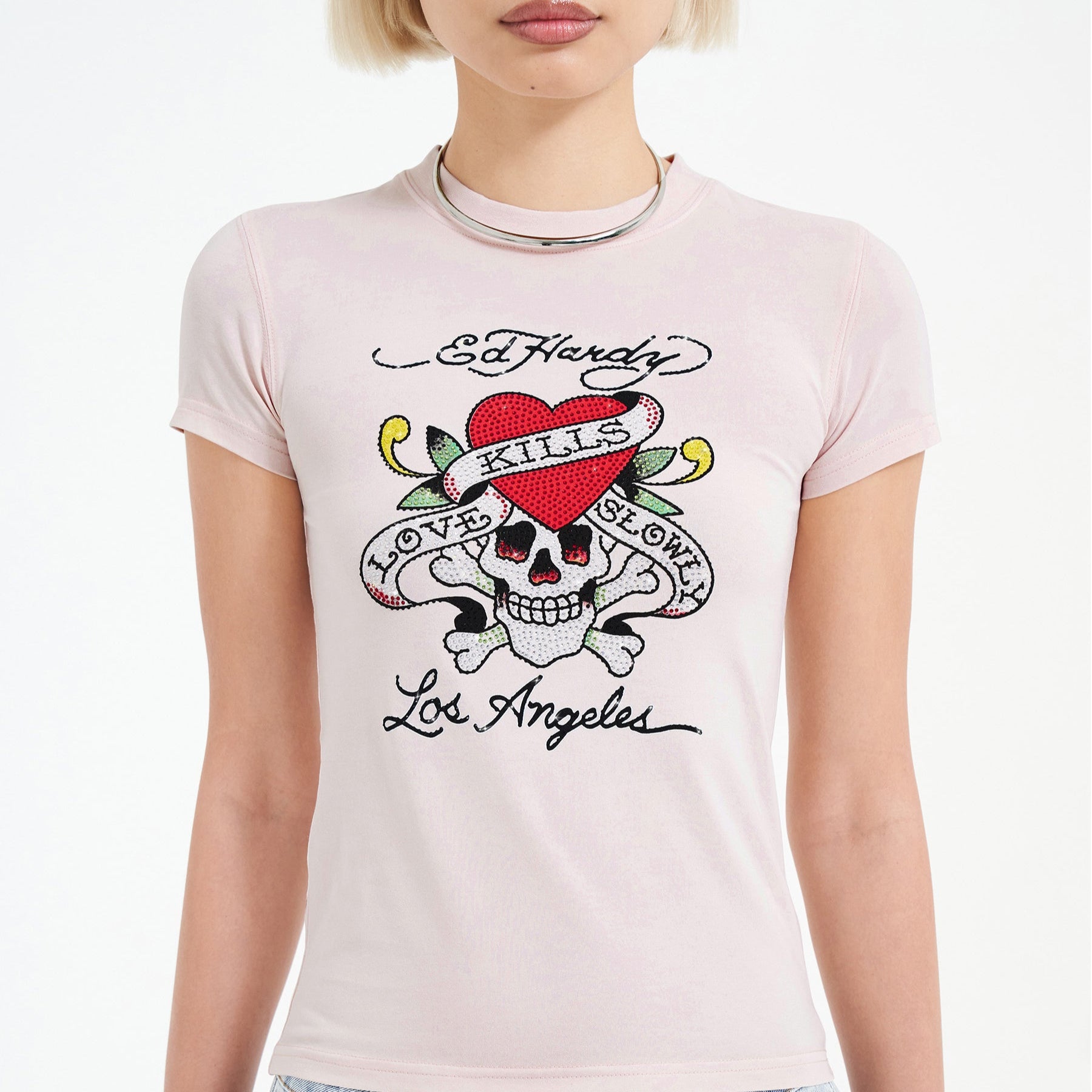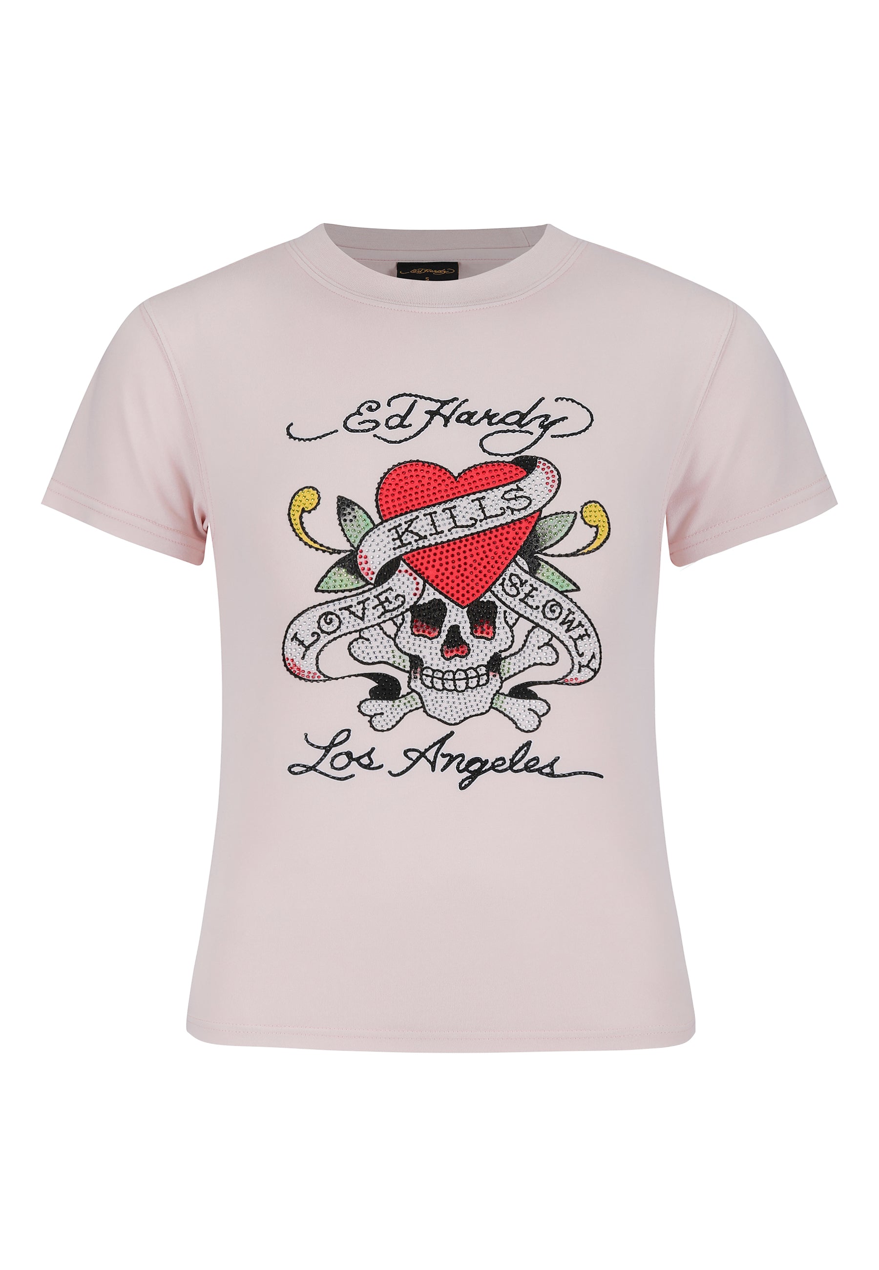 Tænd punkånden i din garderobe med Love Kills Diamante Baby T-Shirt—en sammenlægning af Ed Hardys signaturstil og design.