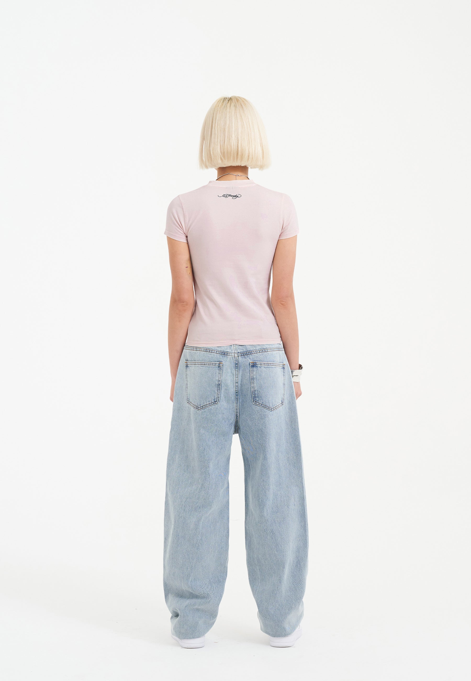Womens Love Kills Slowly Diamante Baby Tshirt Top - Pink