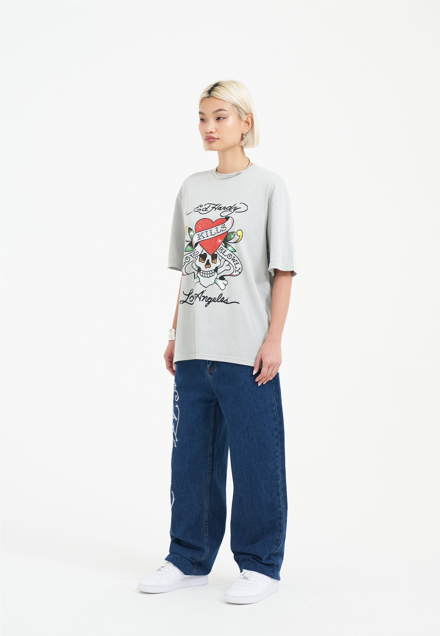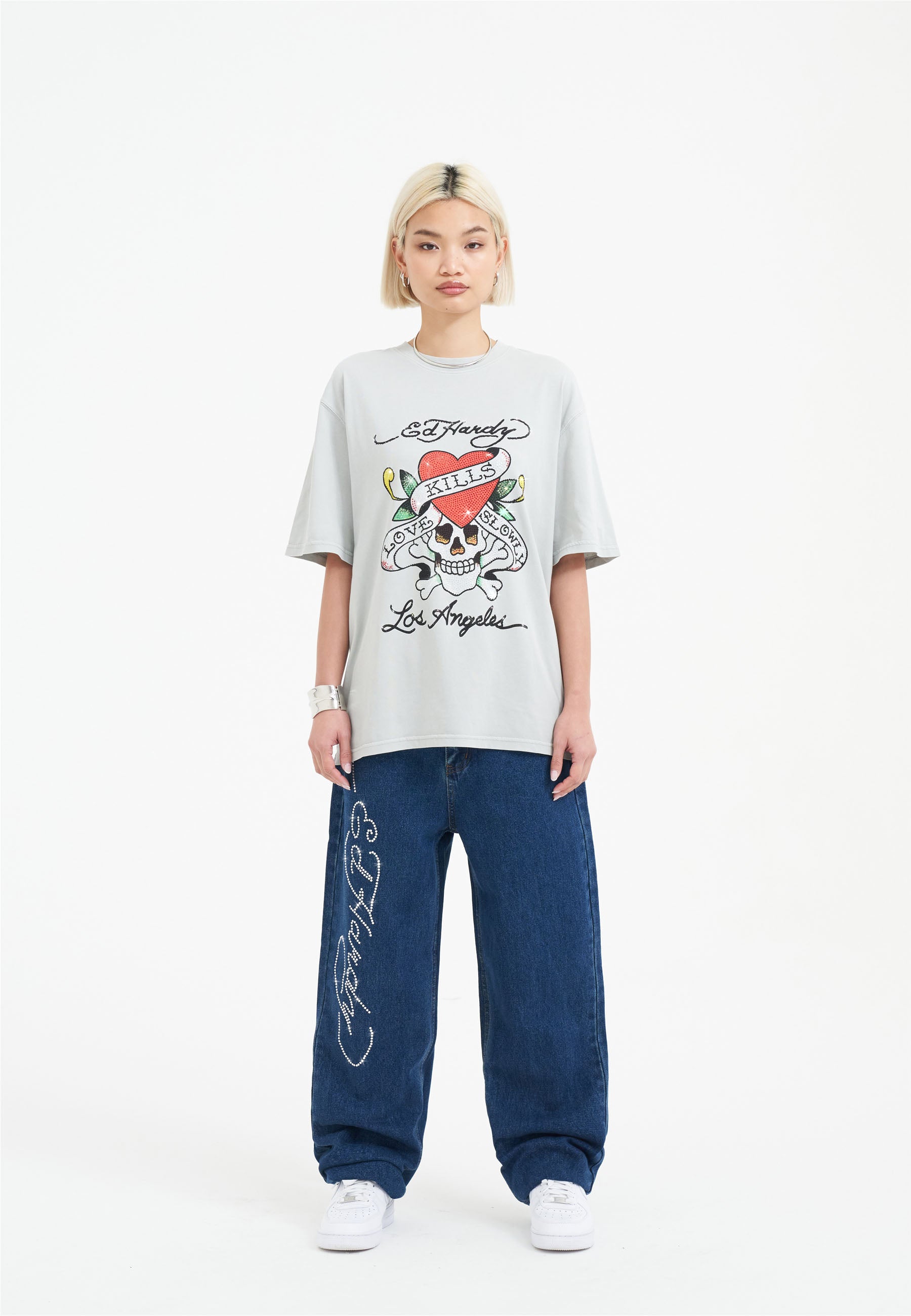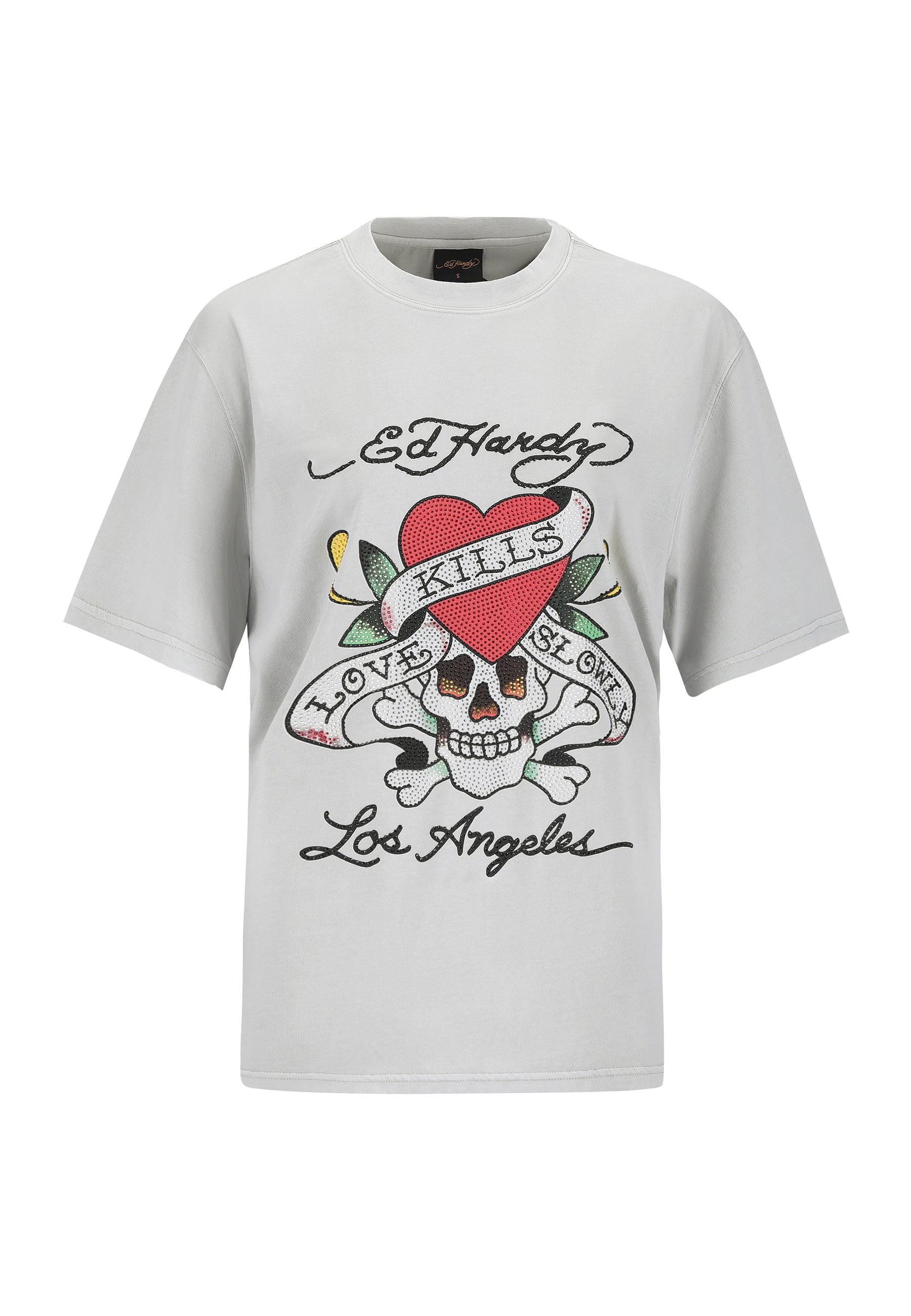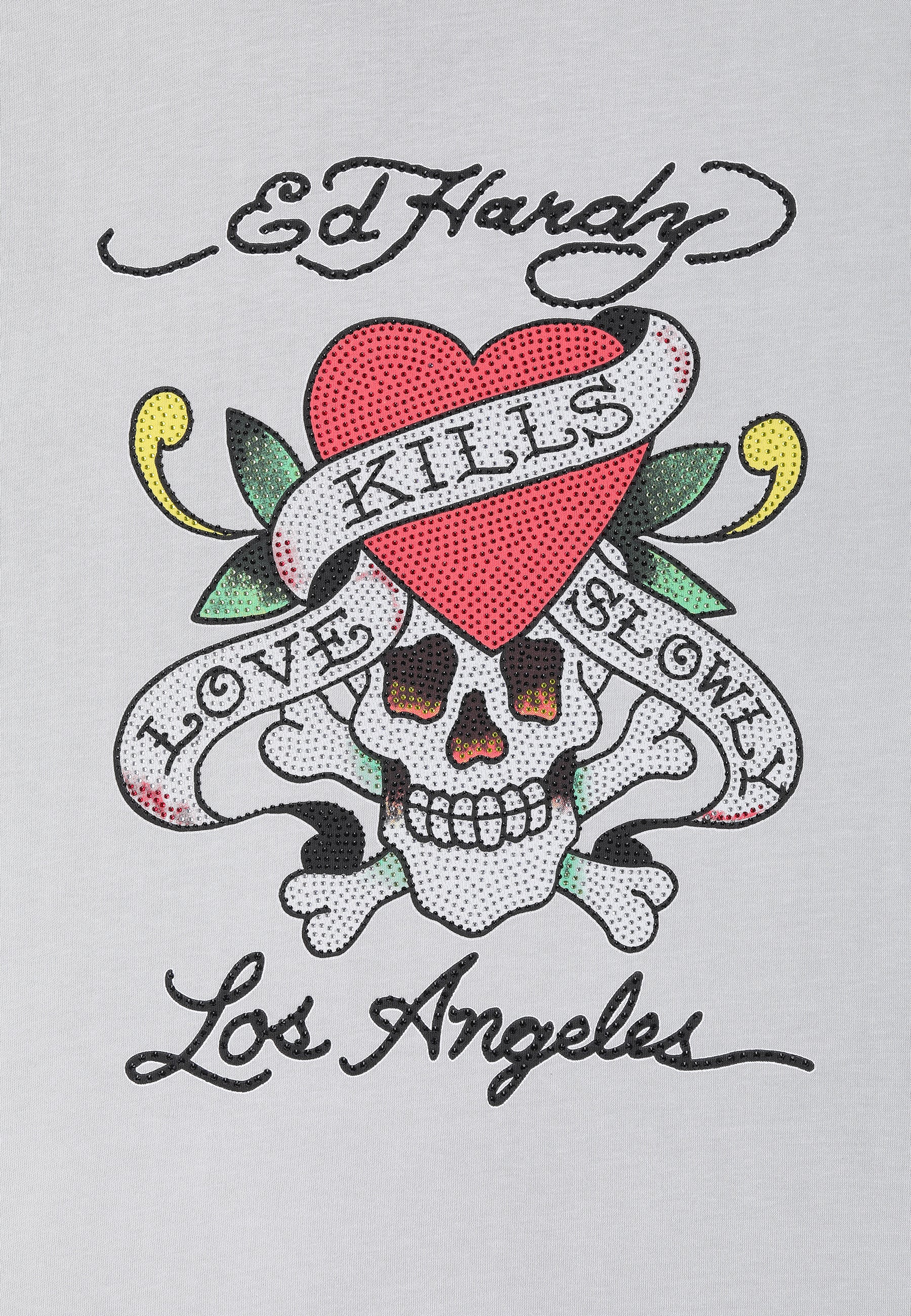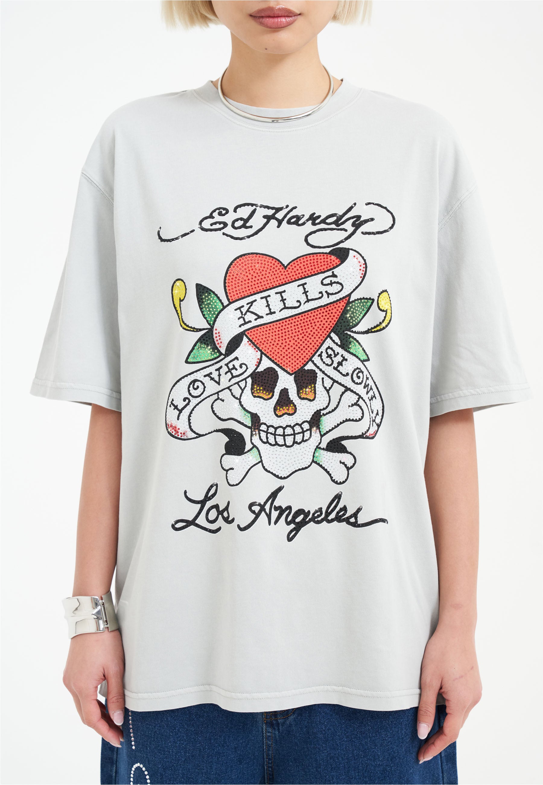 Forstyrr og gør oprør i Love Kills Slowly Diamante T-Shirt. Med fuldfarve diamantgrafik til en ny æra af Ed Hardy.