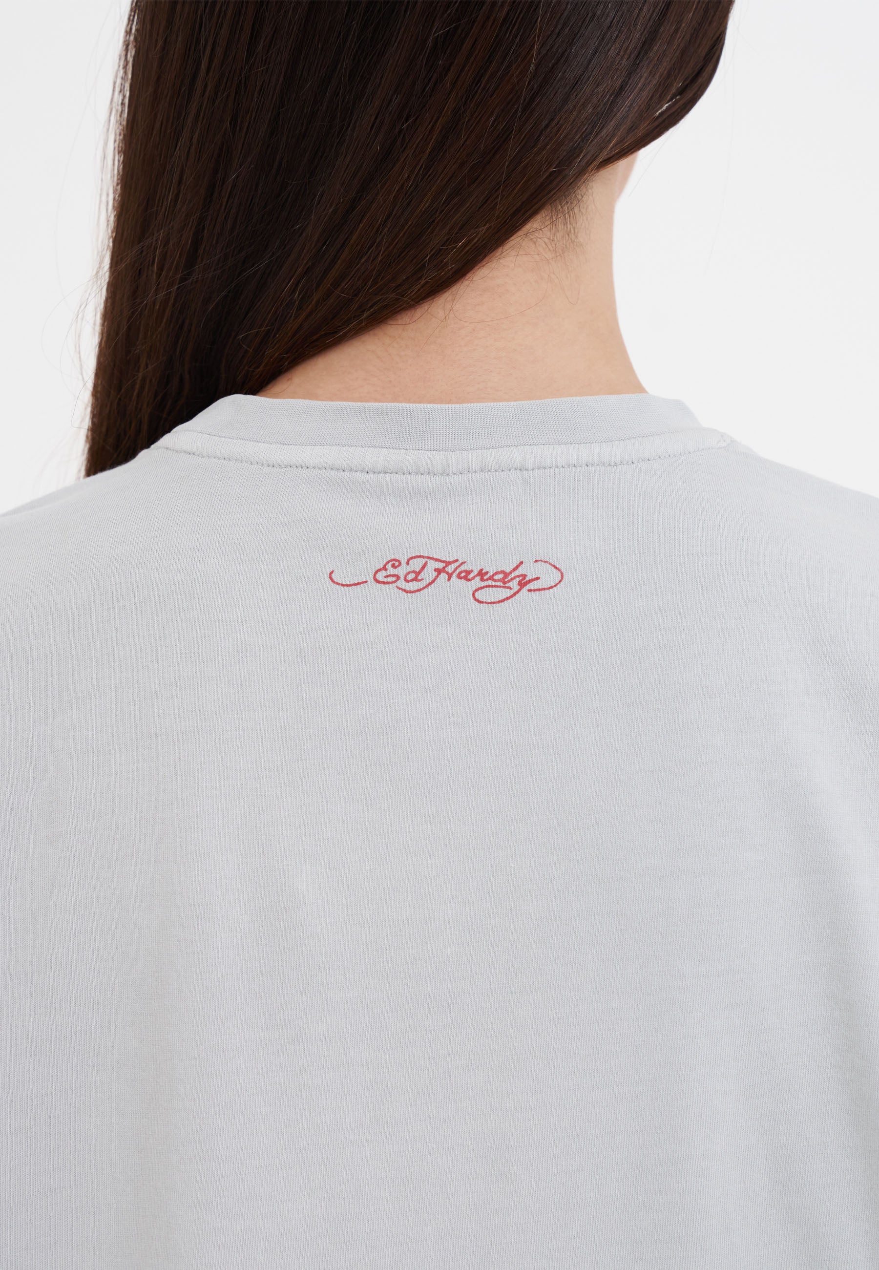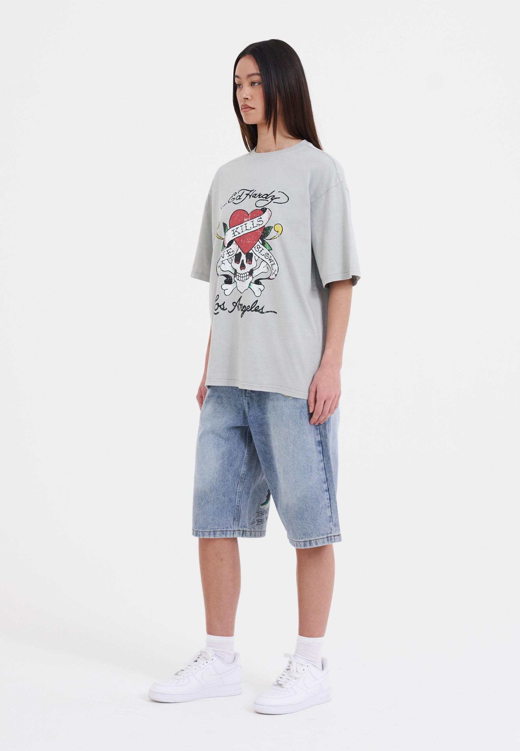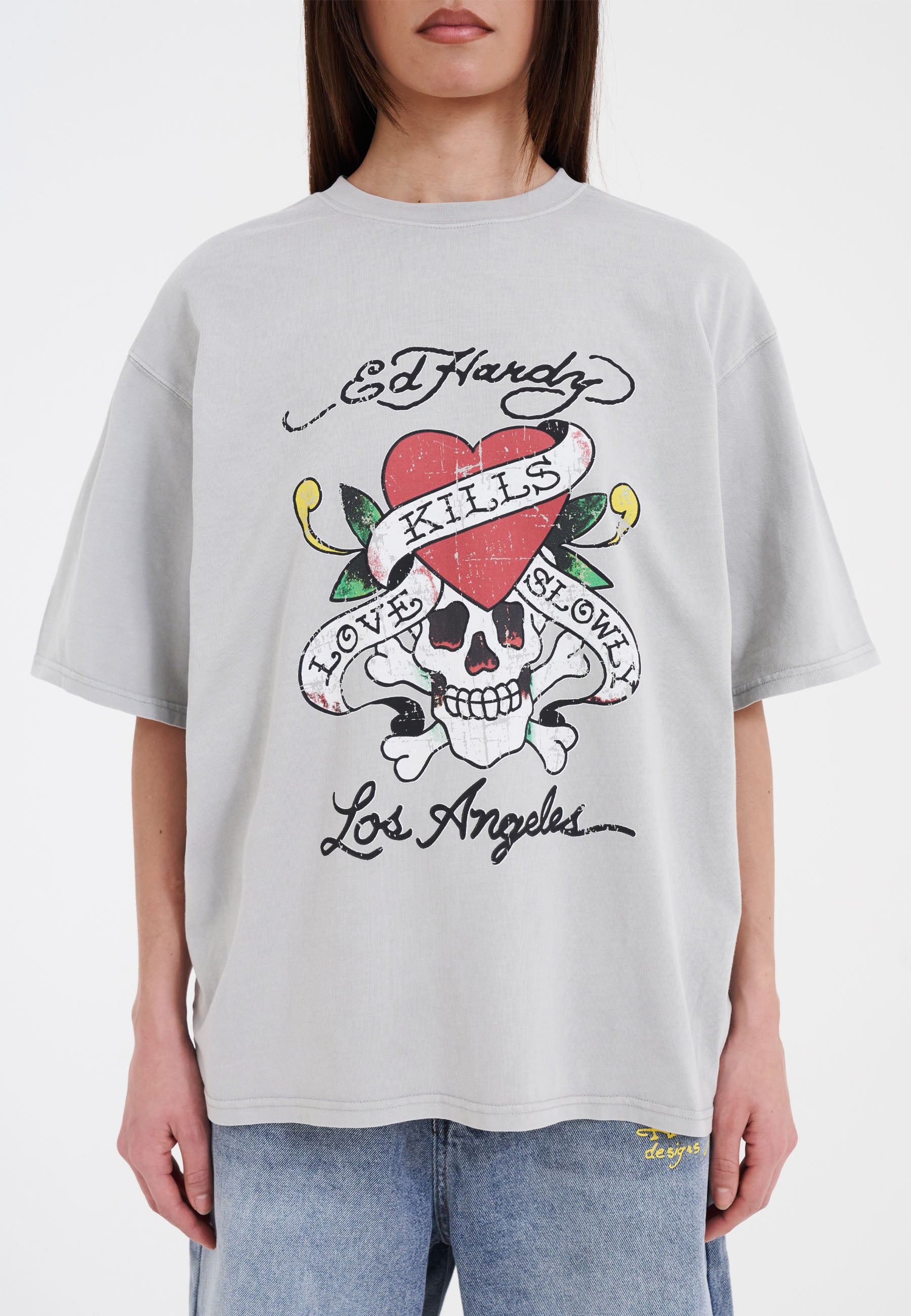The Love Kills Slowly T-Shirt har udviklet sig til et iøjnefaldende design, der strækker sig over generationer, hvilket styrker dens status som en Ed Hardy-klassiker.