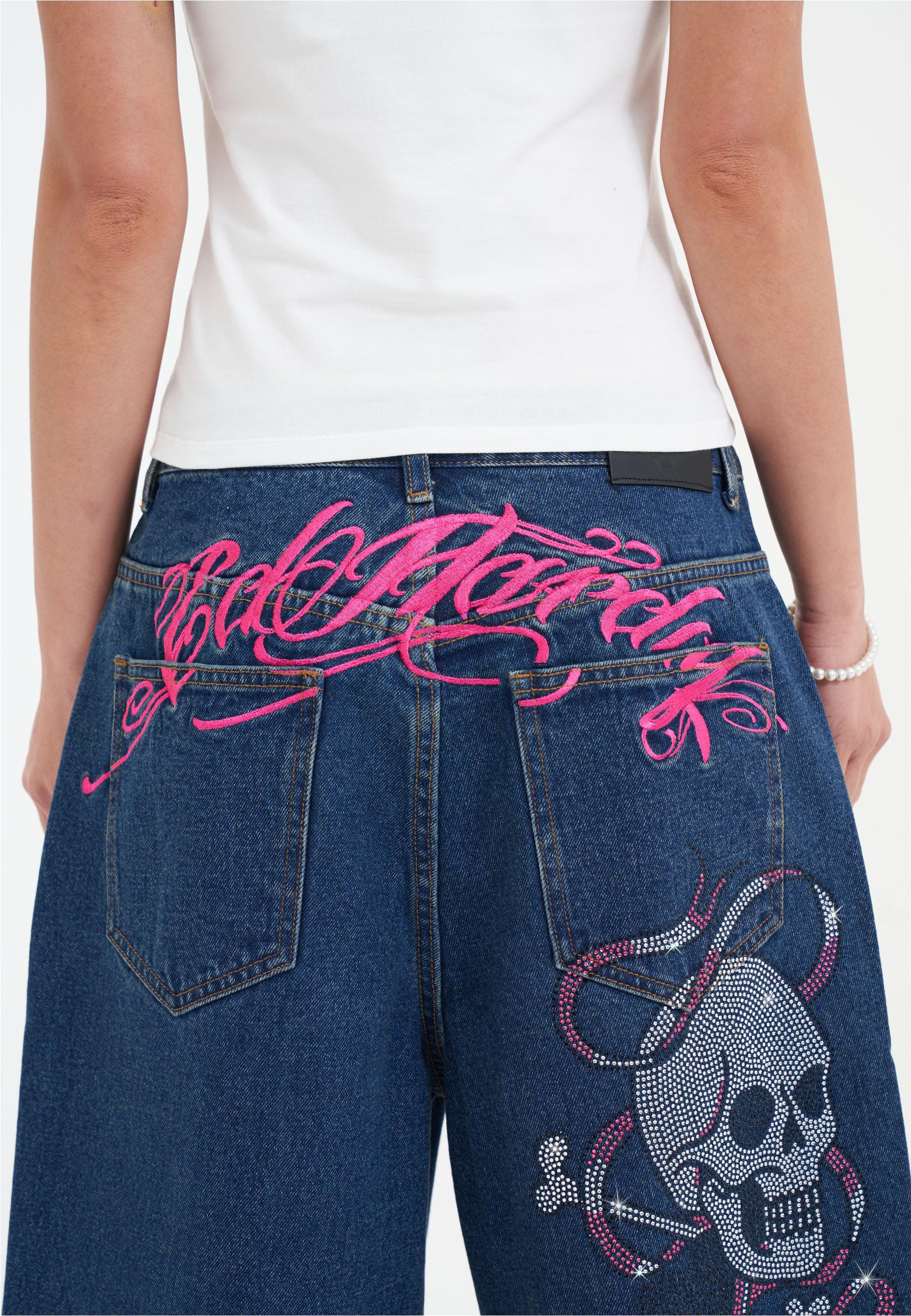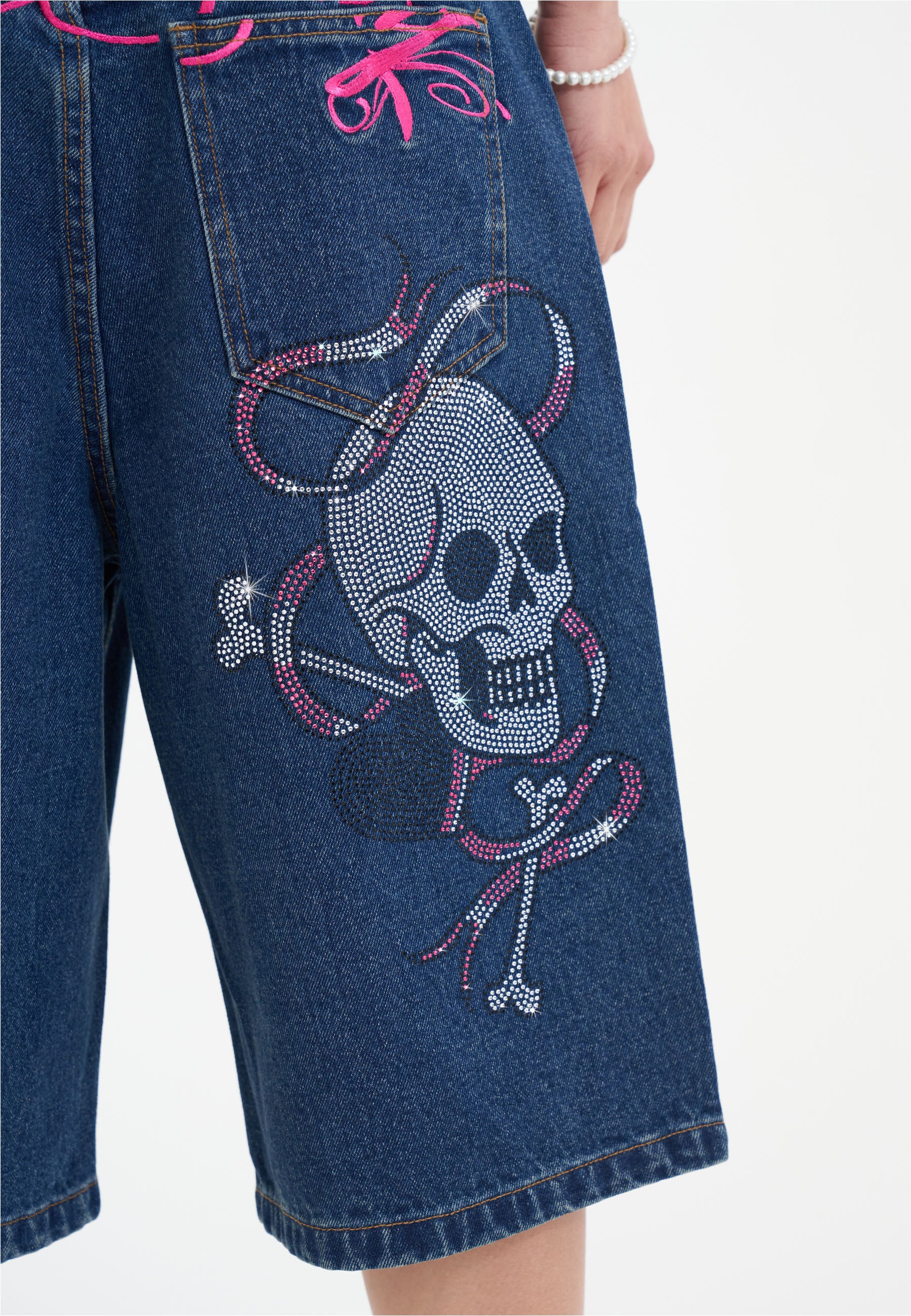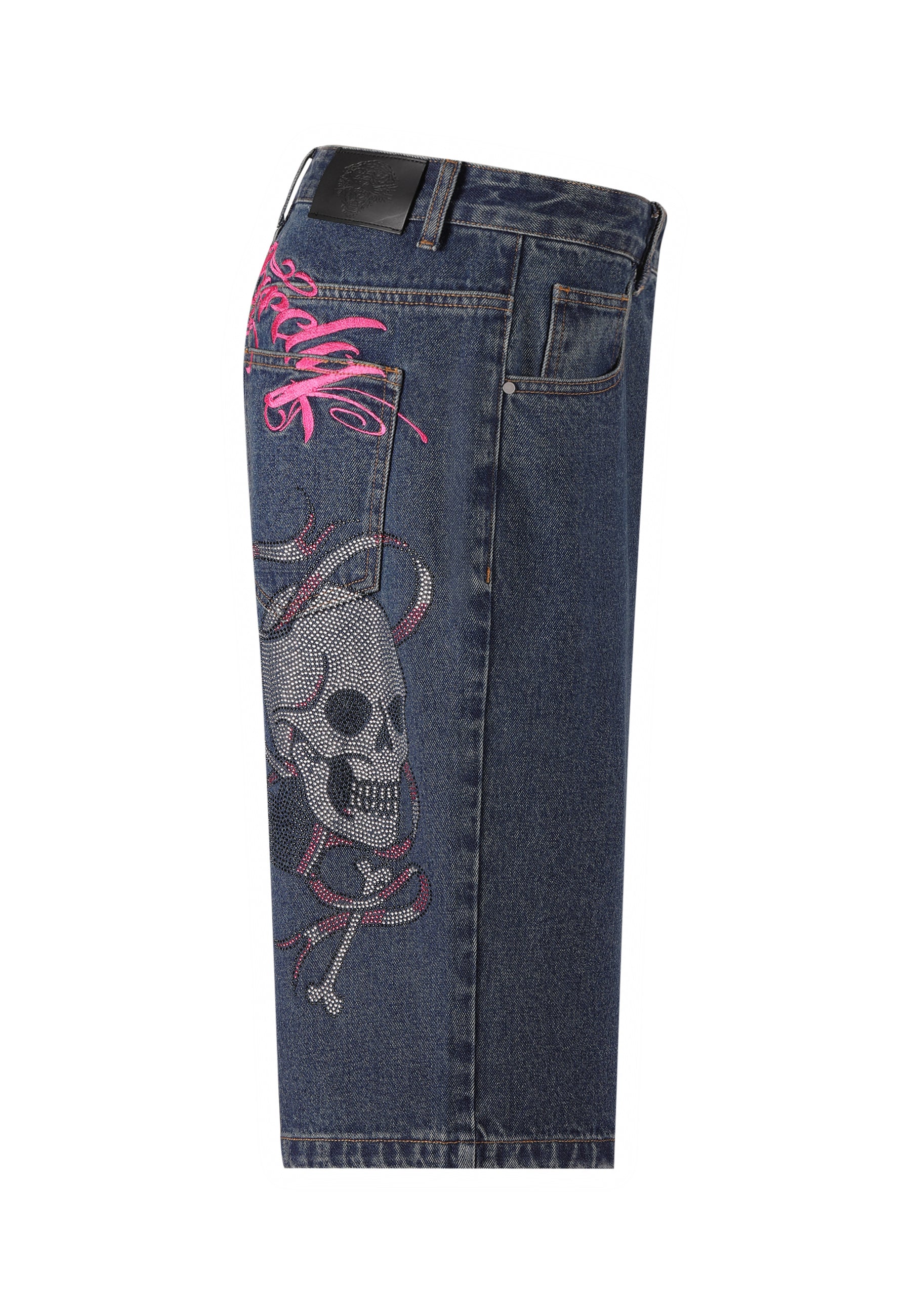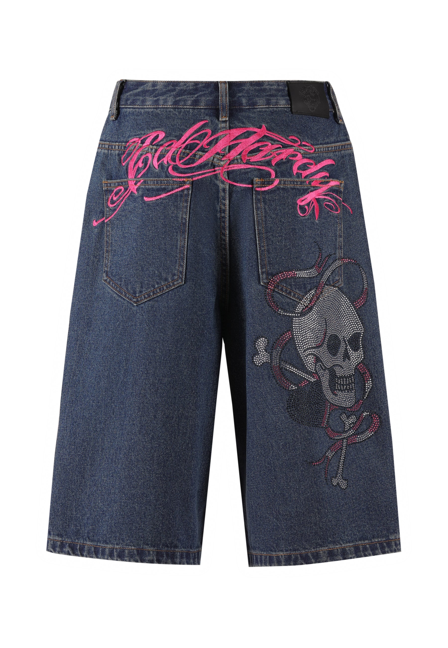 Dame Love Wrapped Diamante Denim Jorts Shorts - Indigo