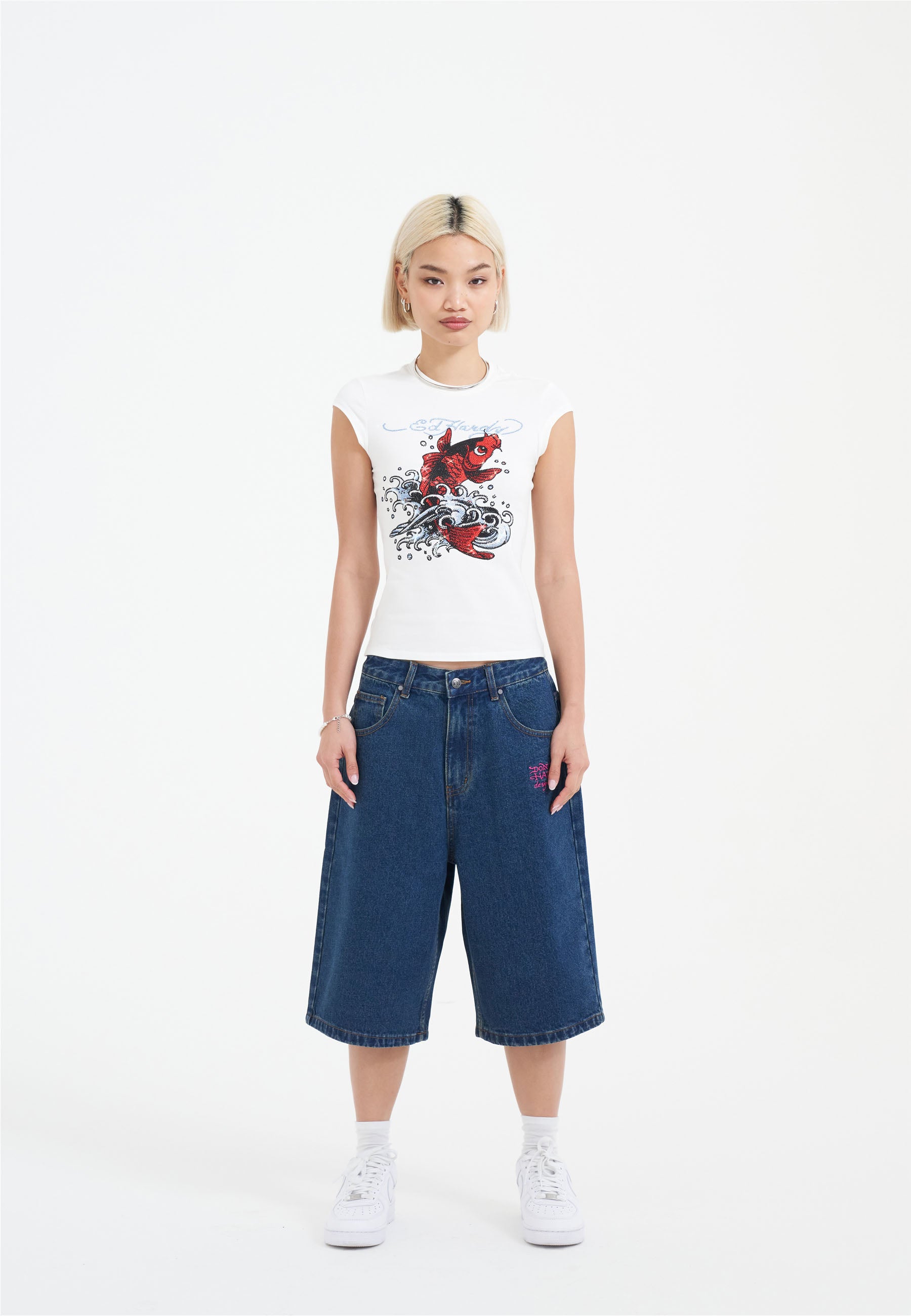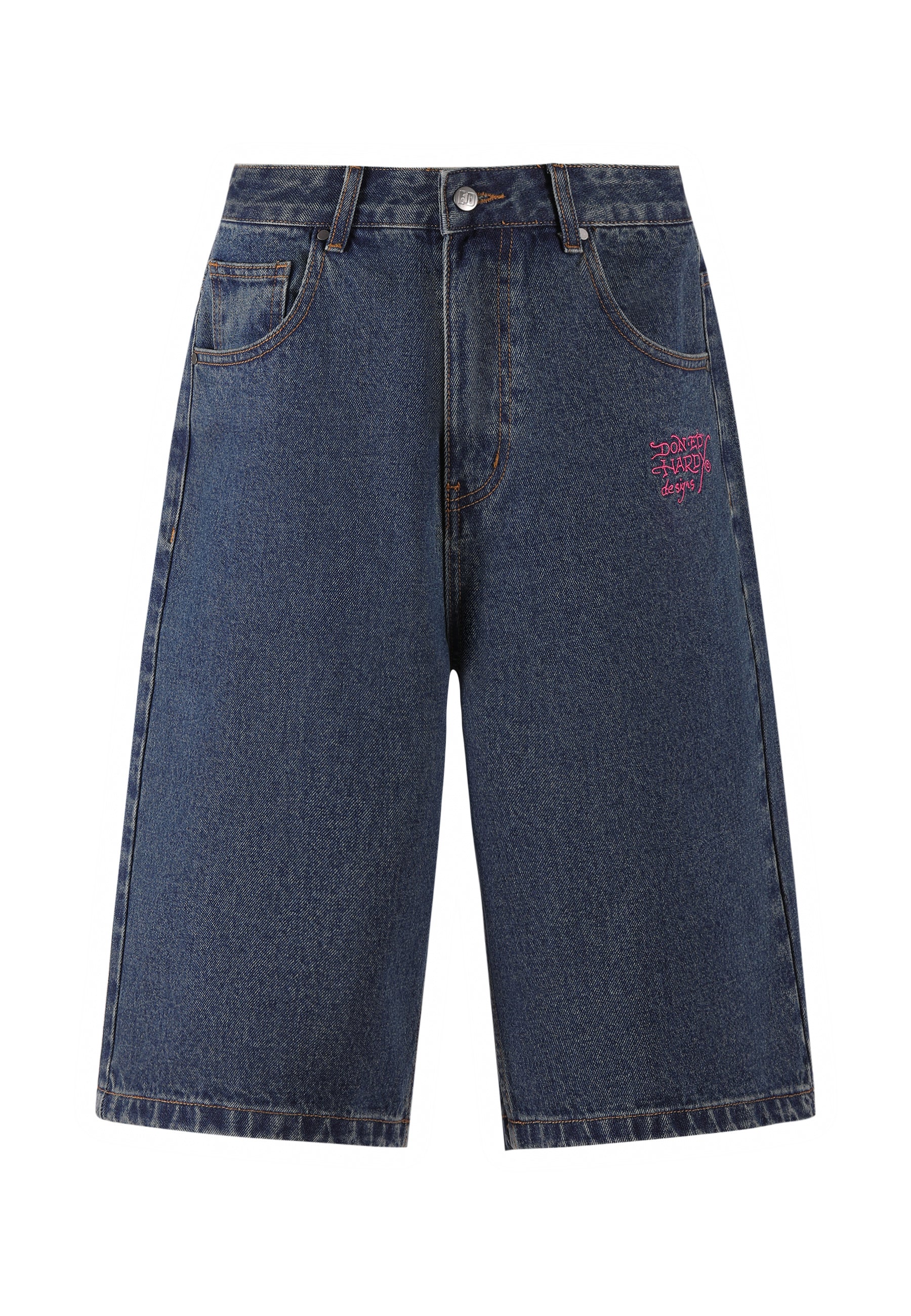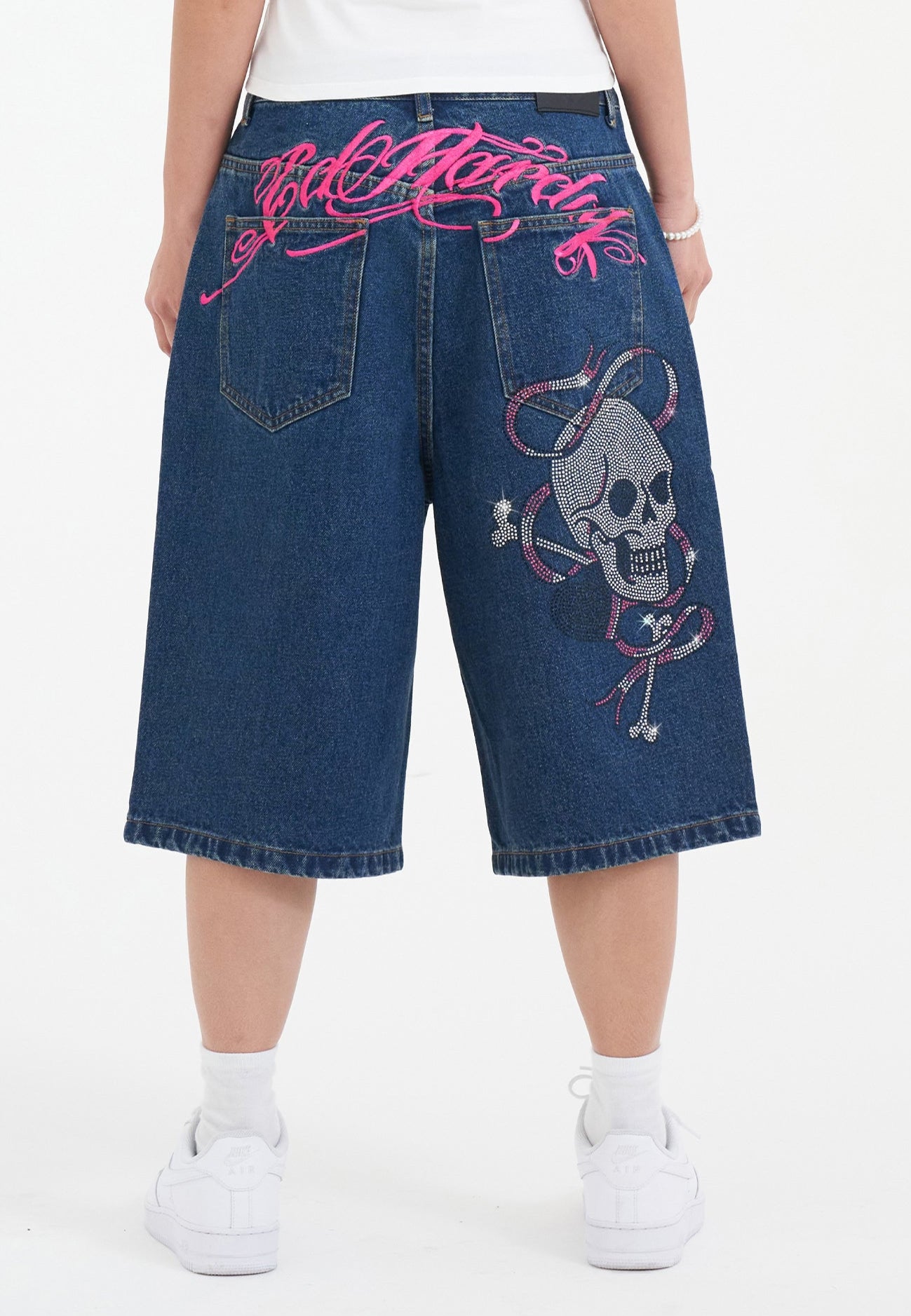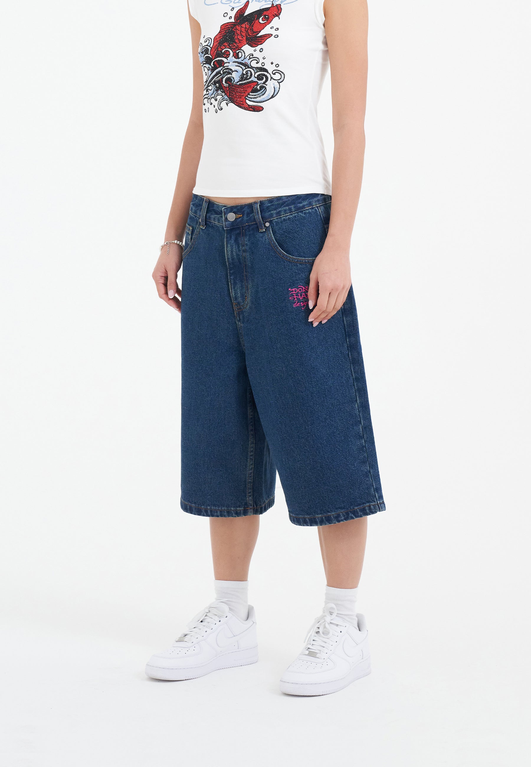 Dame Love Wrapped Diamante Denim Jorts Shorts - Indigo