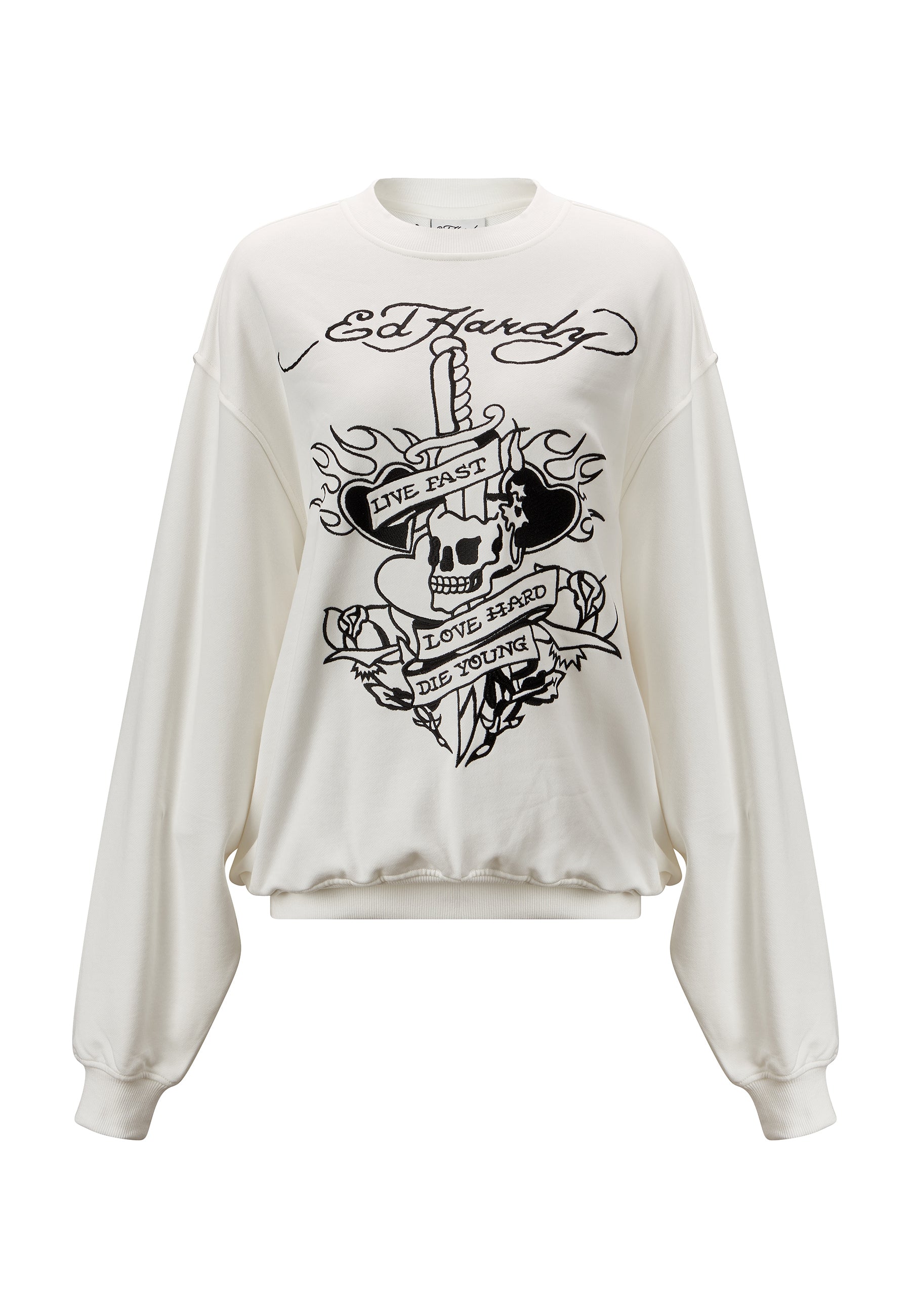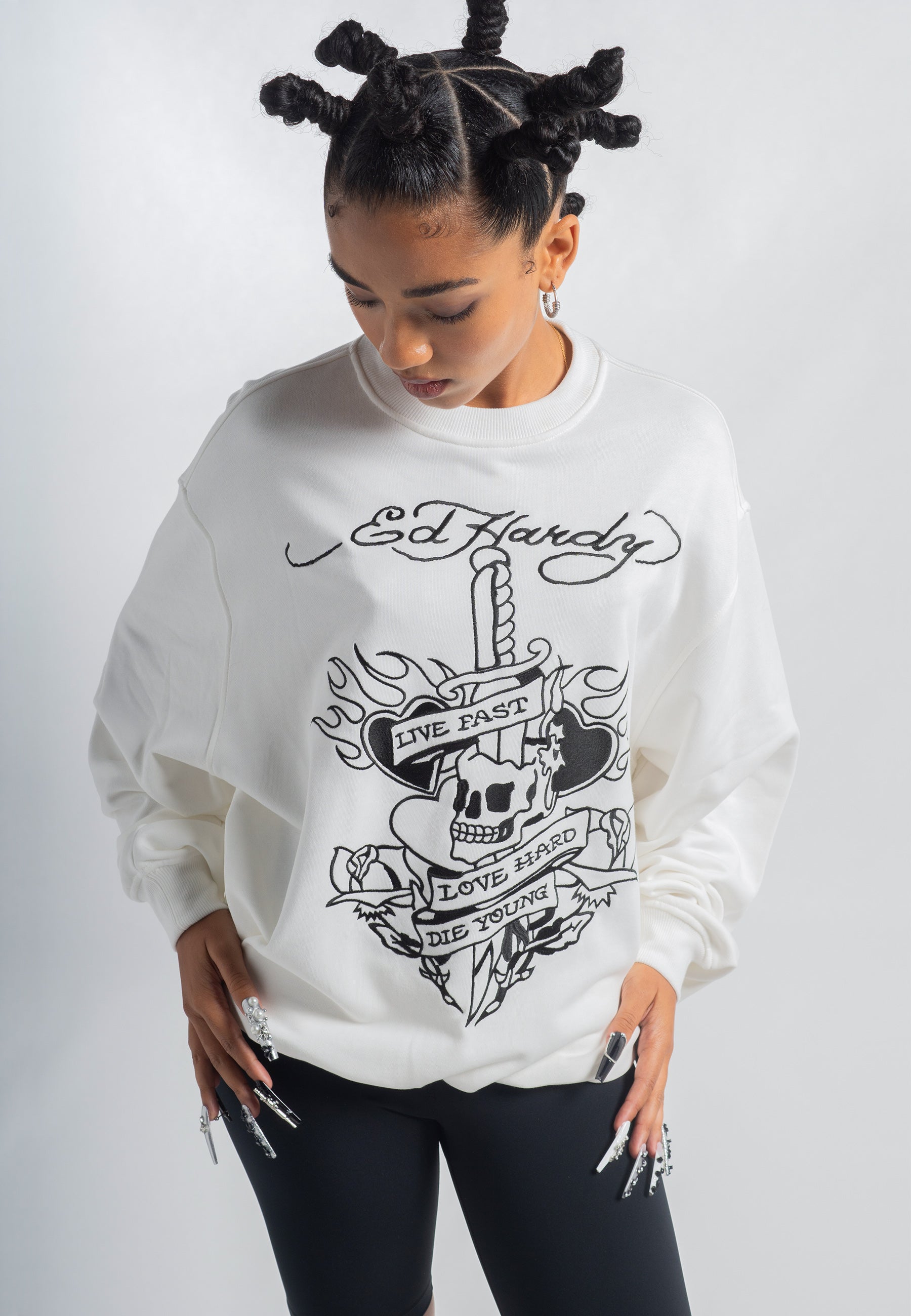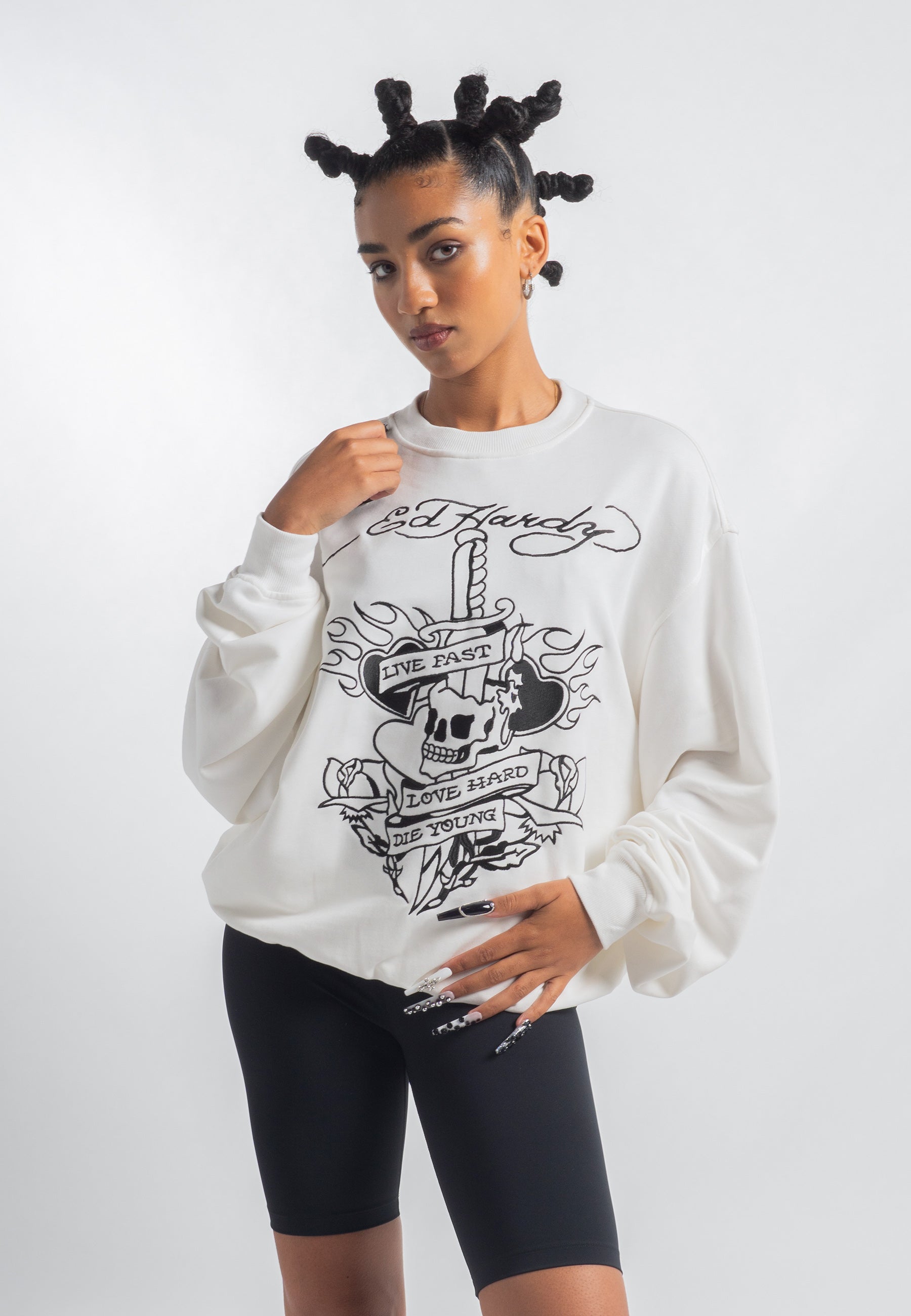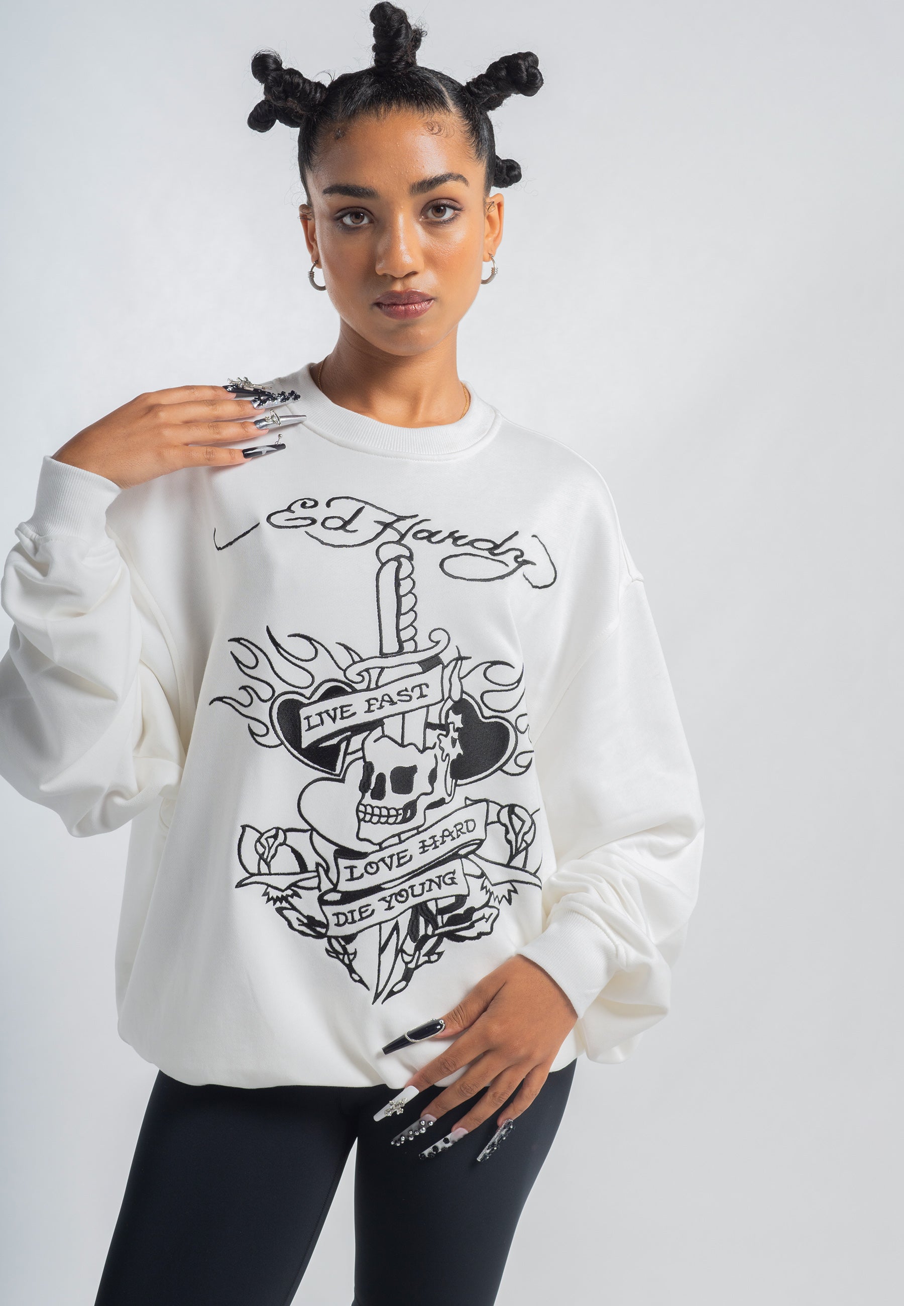 Omfavn Eds livsfilosofi med Women's Live Fast Crew Neck Jumper fra vores A/W Collection. Denne premium jumper kombinerer klassisk komfort med Eds karakteristiske design, og puster nyt liv i hans signaturkunstarkiver.