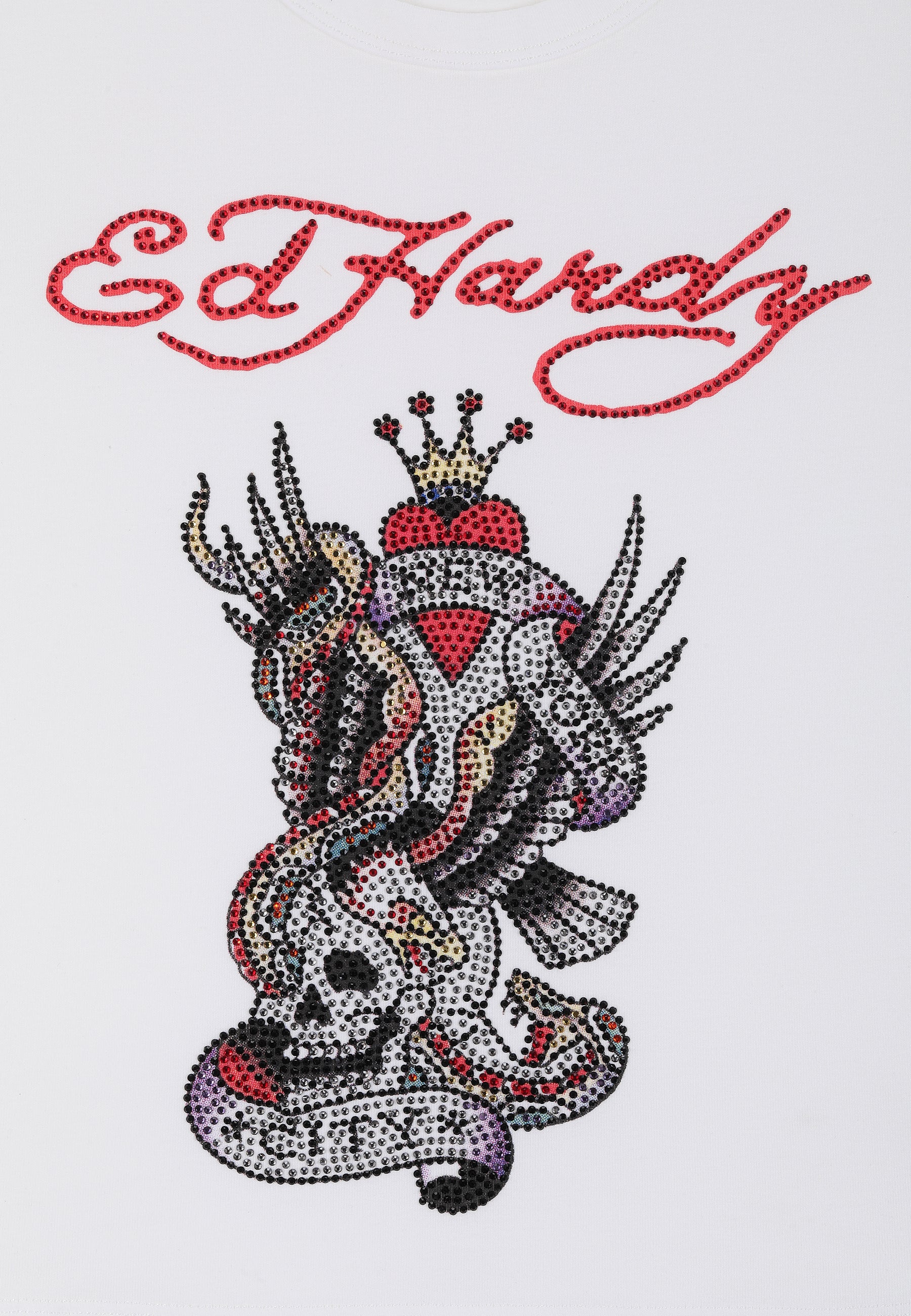 Features Ed's iconic designs, re-worked for a new season in full-colour diamante graphics.