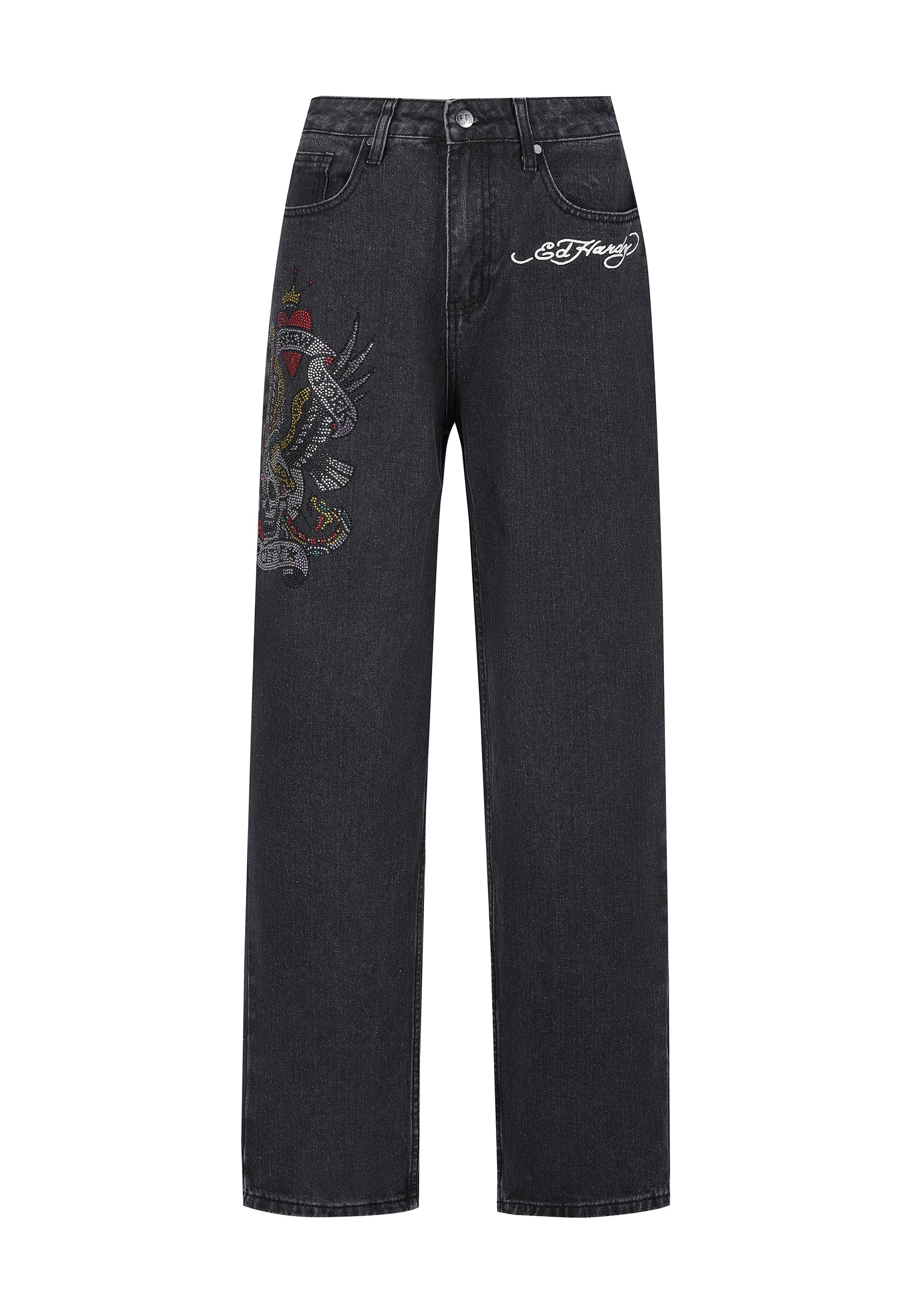 Dame Nyc Diamante Relaxed Denim Bukser Jeans - Sort