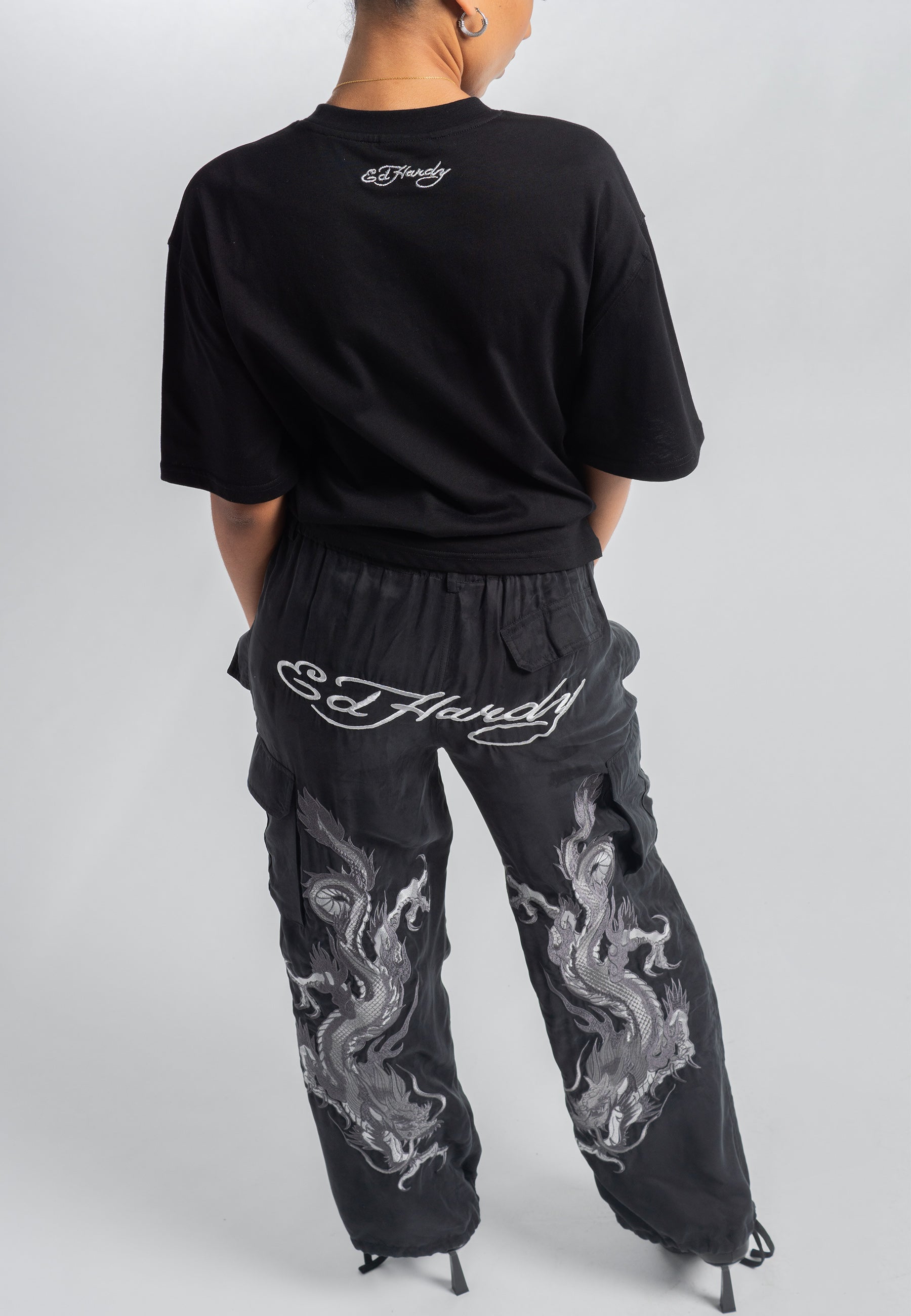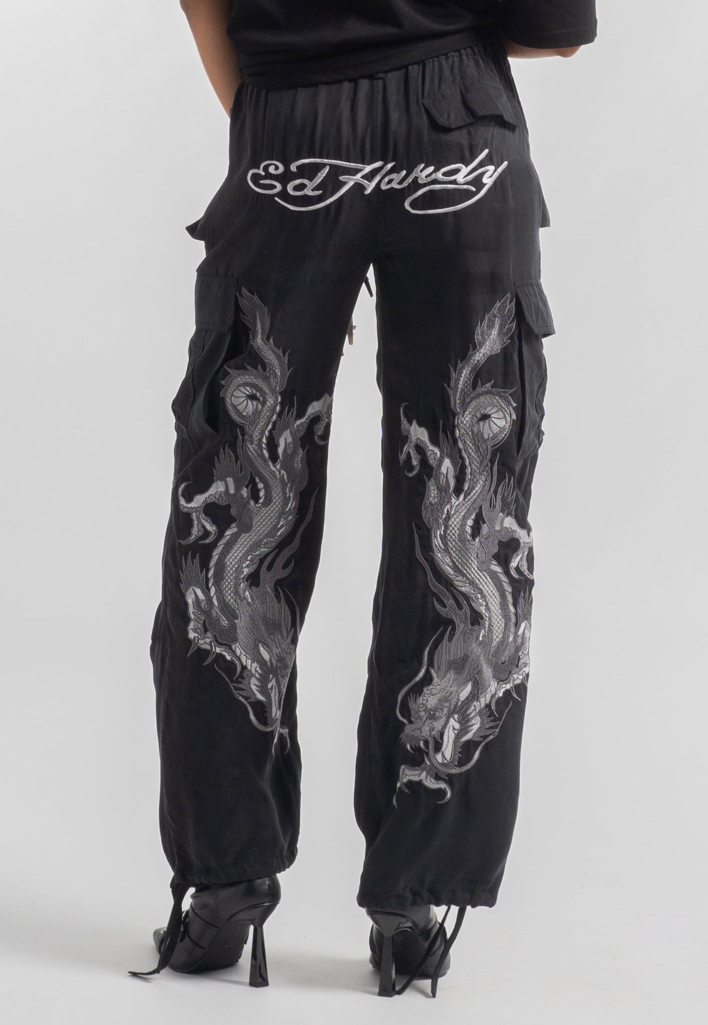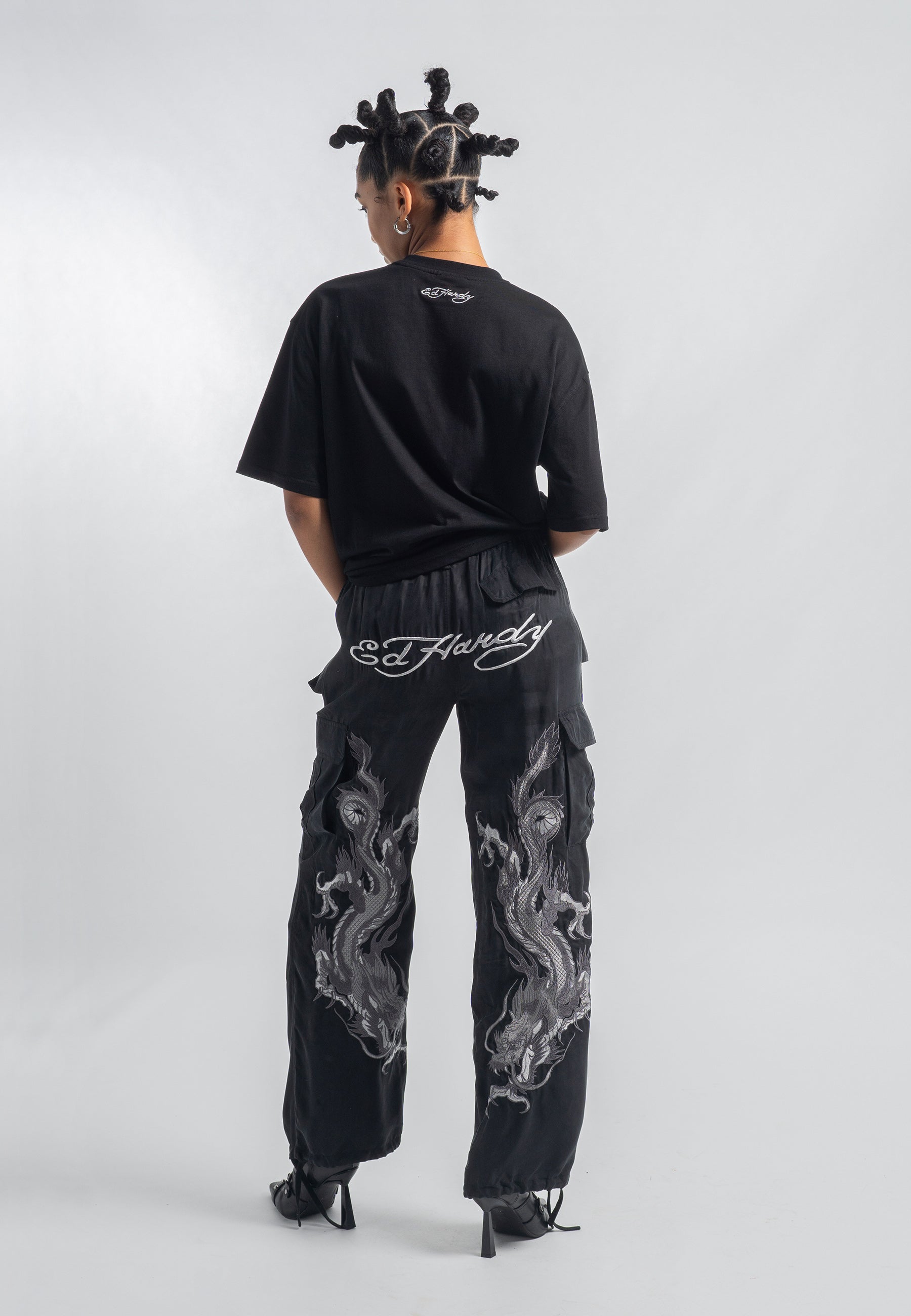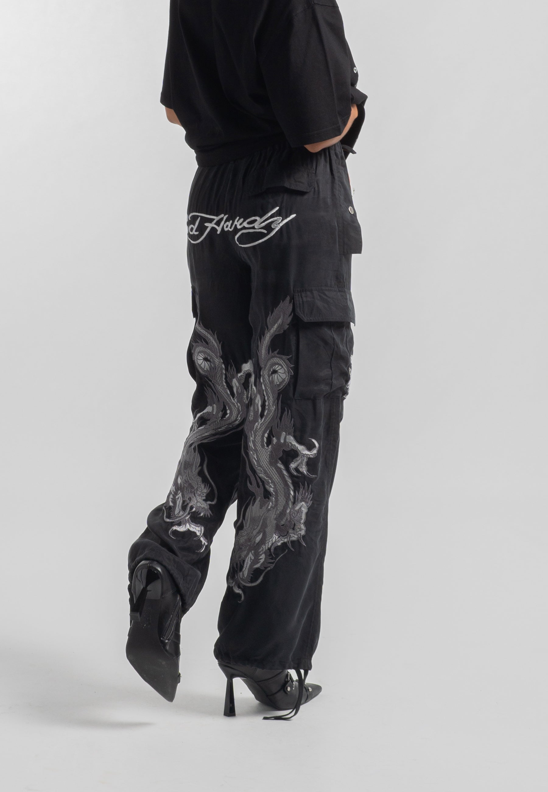 De Hidden Dragon Cargo-bukser er et vidnesbyrd om Ed Hardys artisteri, der blander førsteklasses materialer og gennemtænkte detaljer.