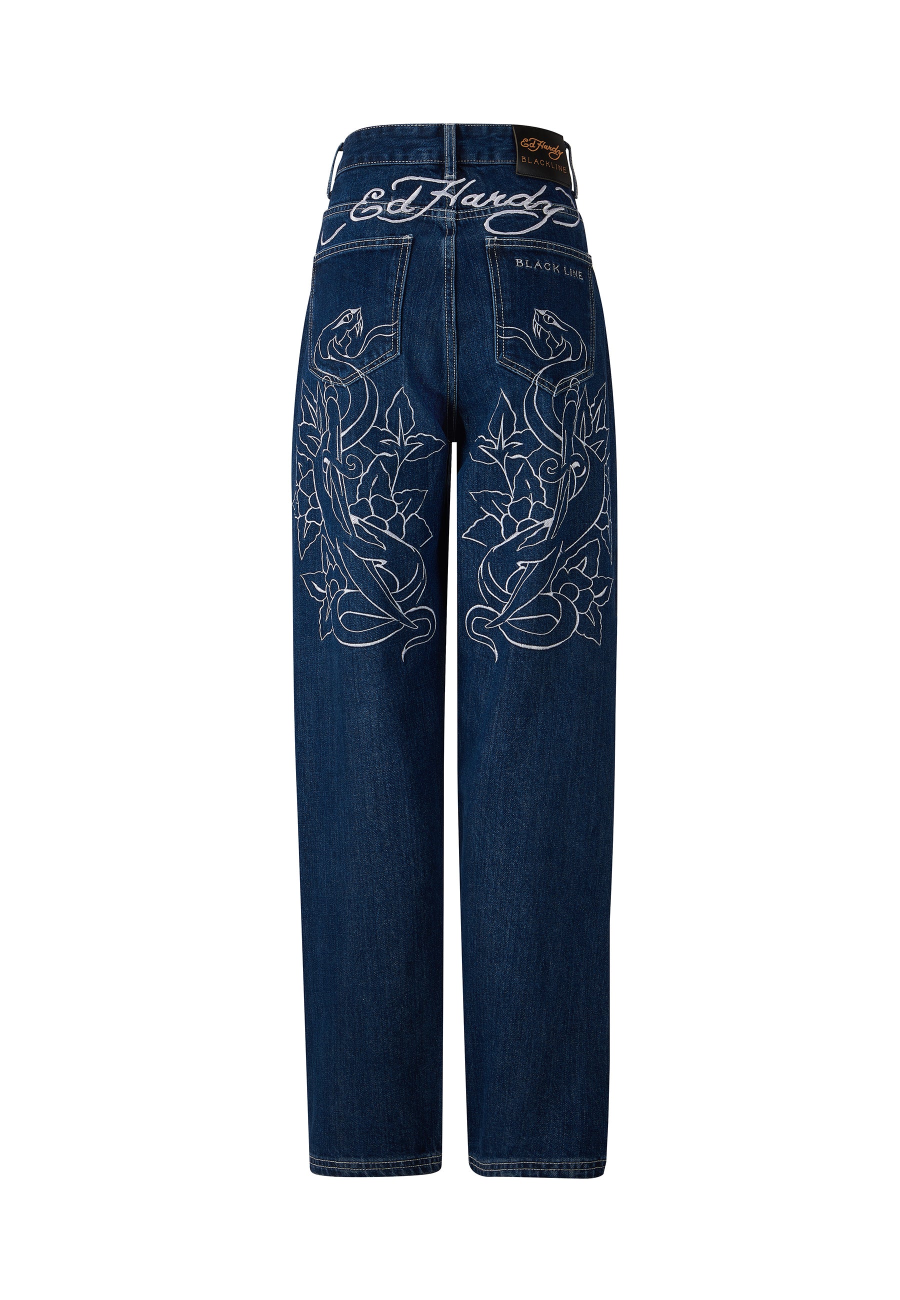 Dame Snake & Dagger Tonal Relaxed Denim Bukser Jeans - Indigo