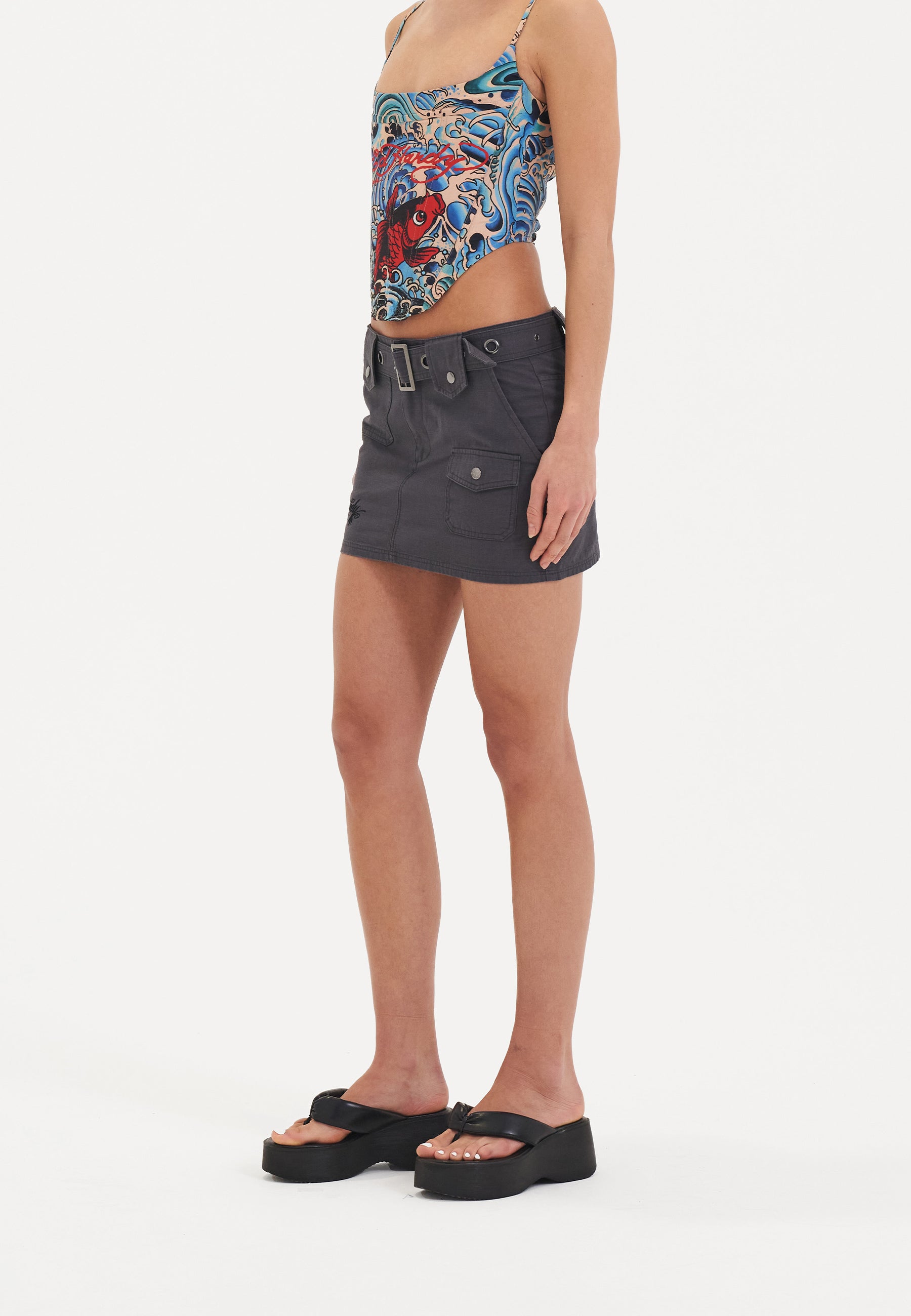 Dame Twisted Dragon Cargo Mini-nederdel - Grå