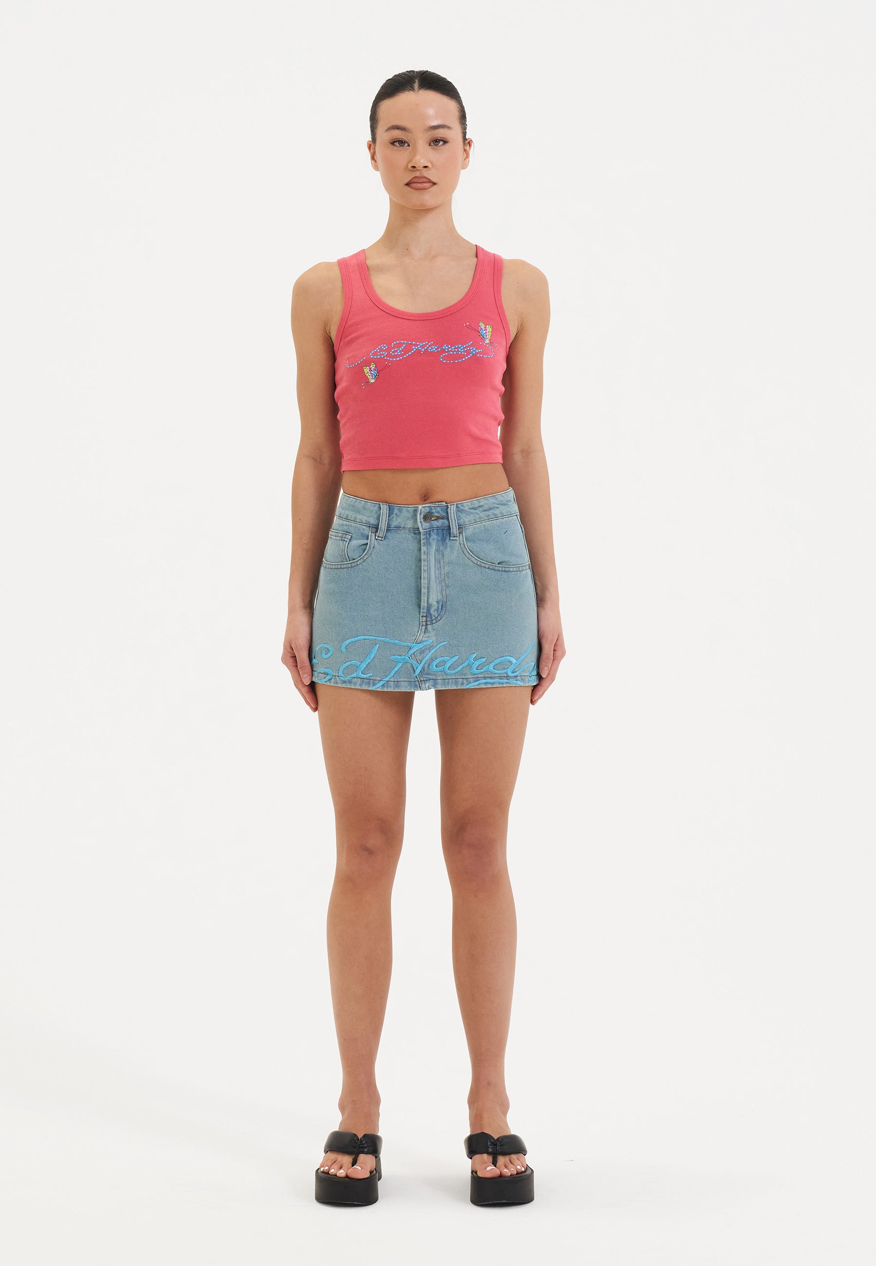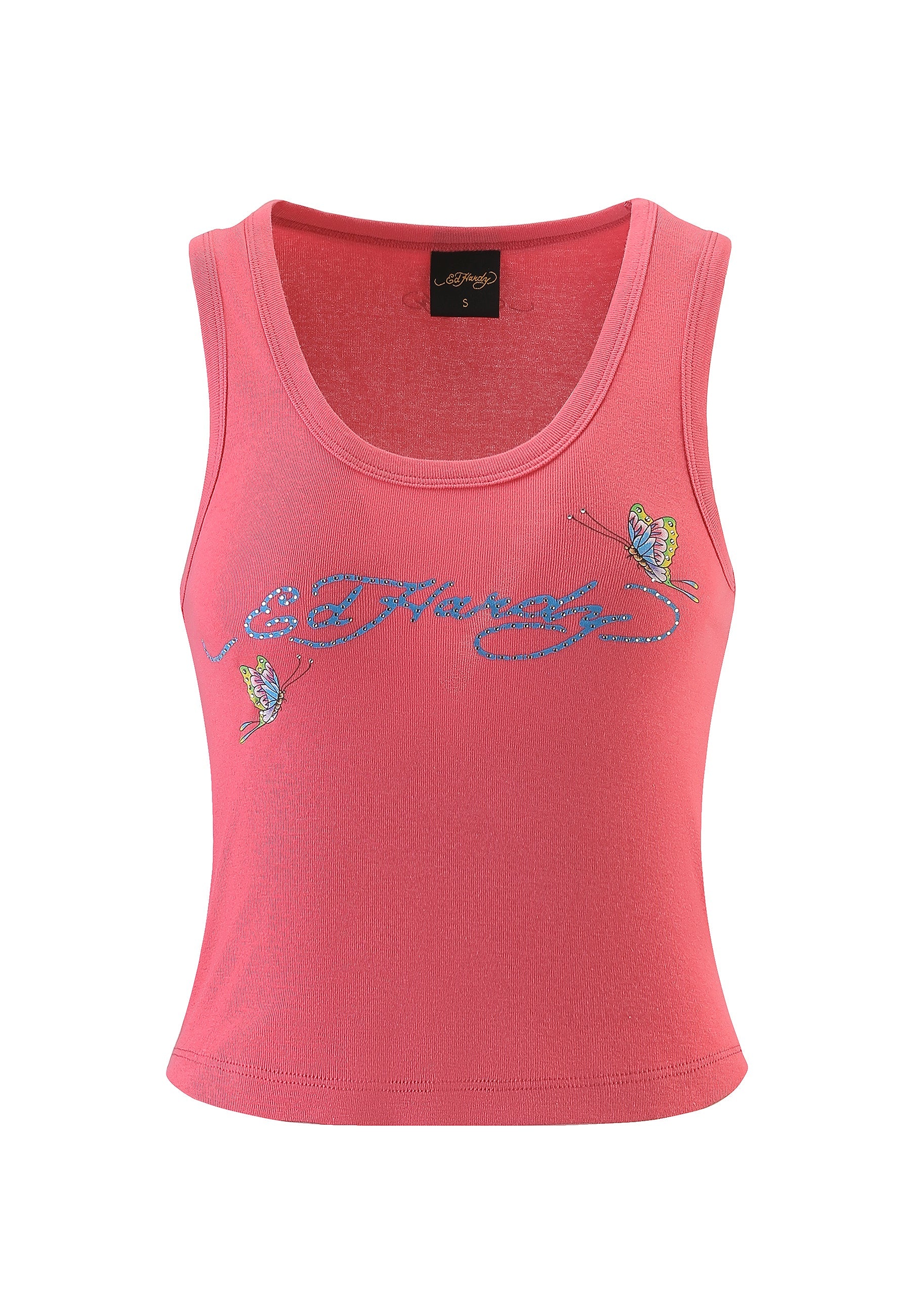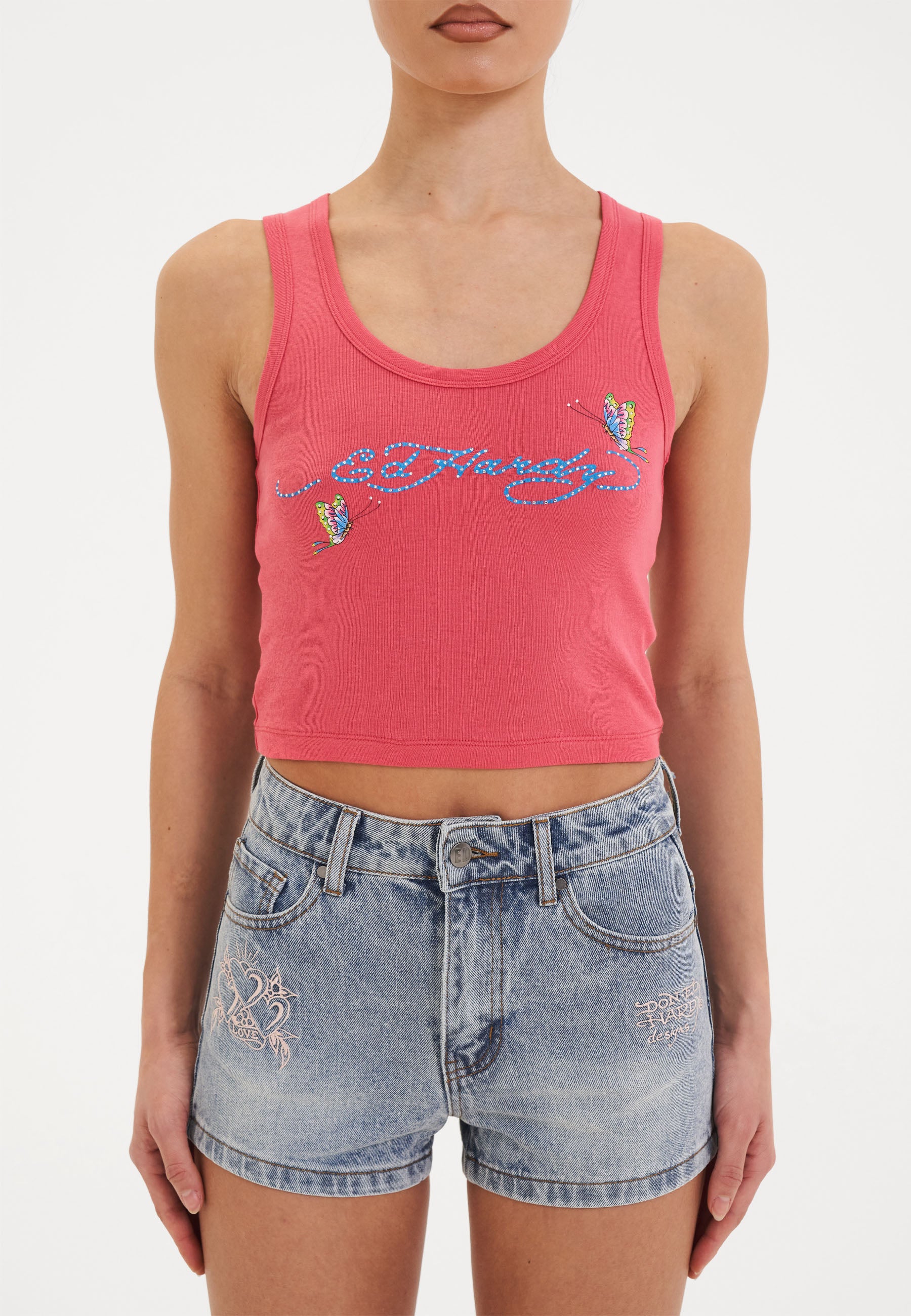 Kvinder Butterfly Party Rhinestone Cropped Vest Top - Pink