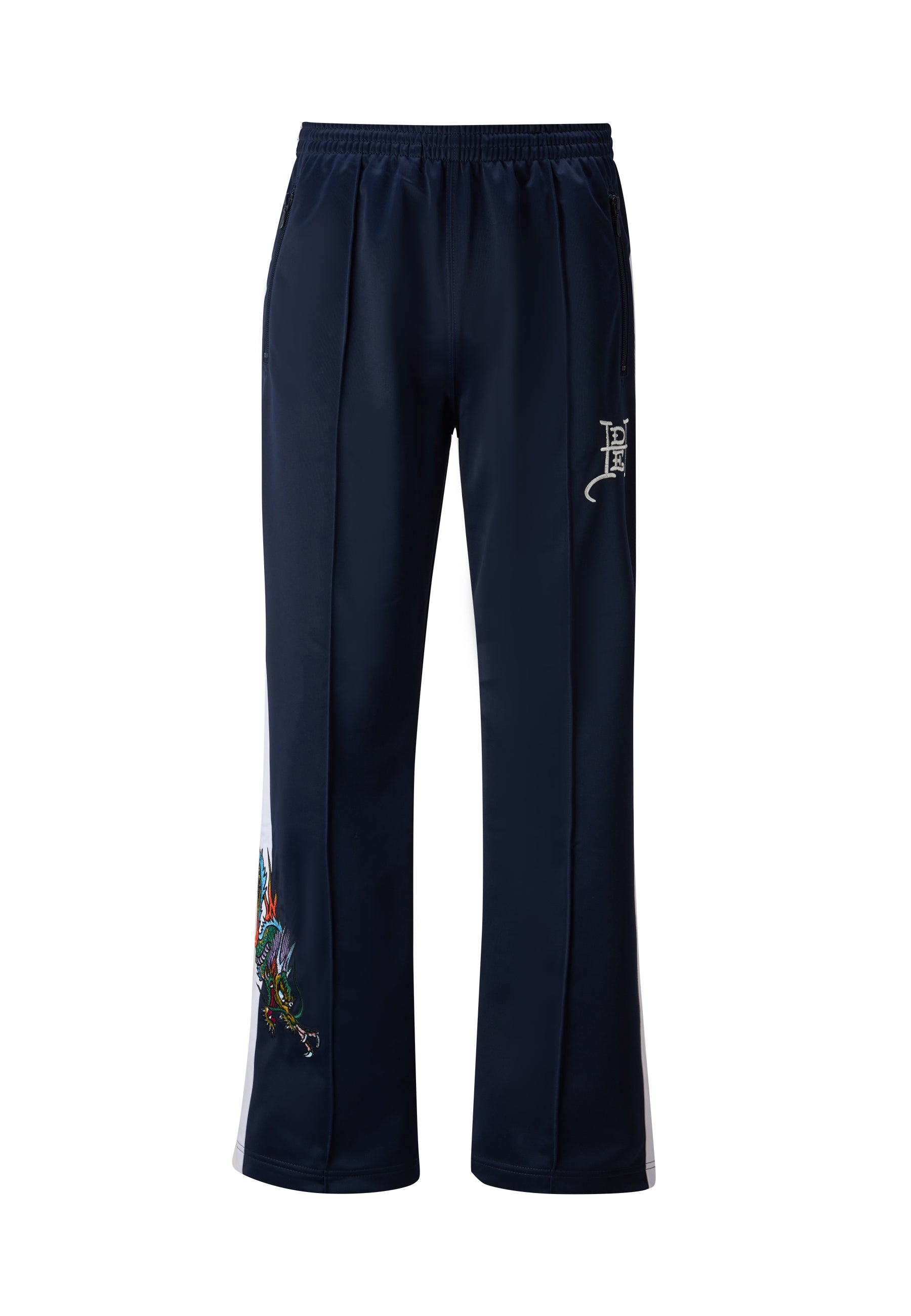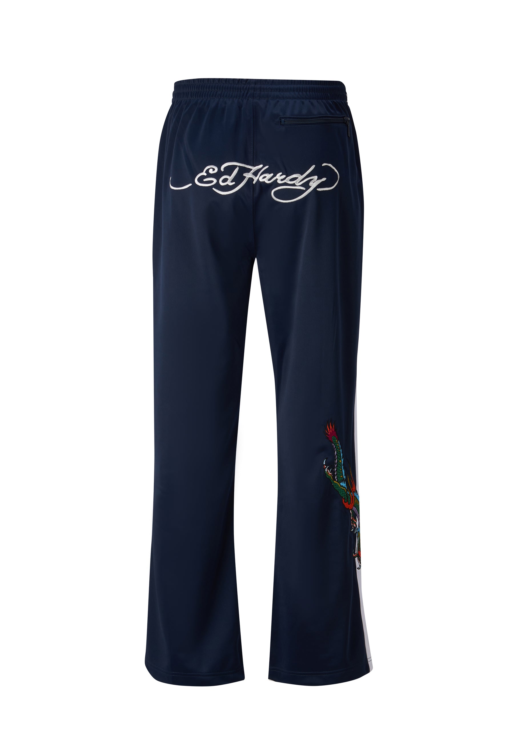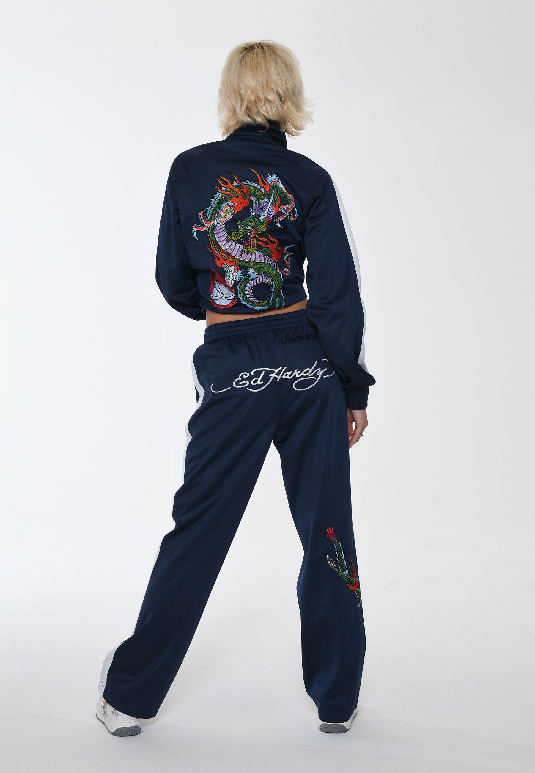 Vi præsenterer Big Dragon Tricot Track Joggers< span data-mce-fragment="1">, en retro-inspireret flådehelt. De er lavet af 100 % poly tricot og fremviser Eds vintageillustrationer gennem livlige dragebroderier i blå, lilla, grøn, rød, gul og orange.