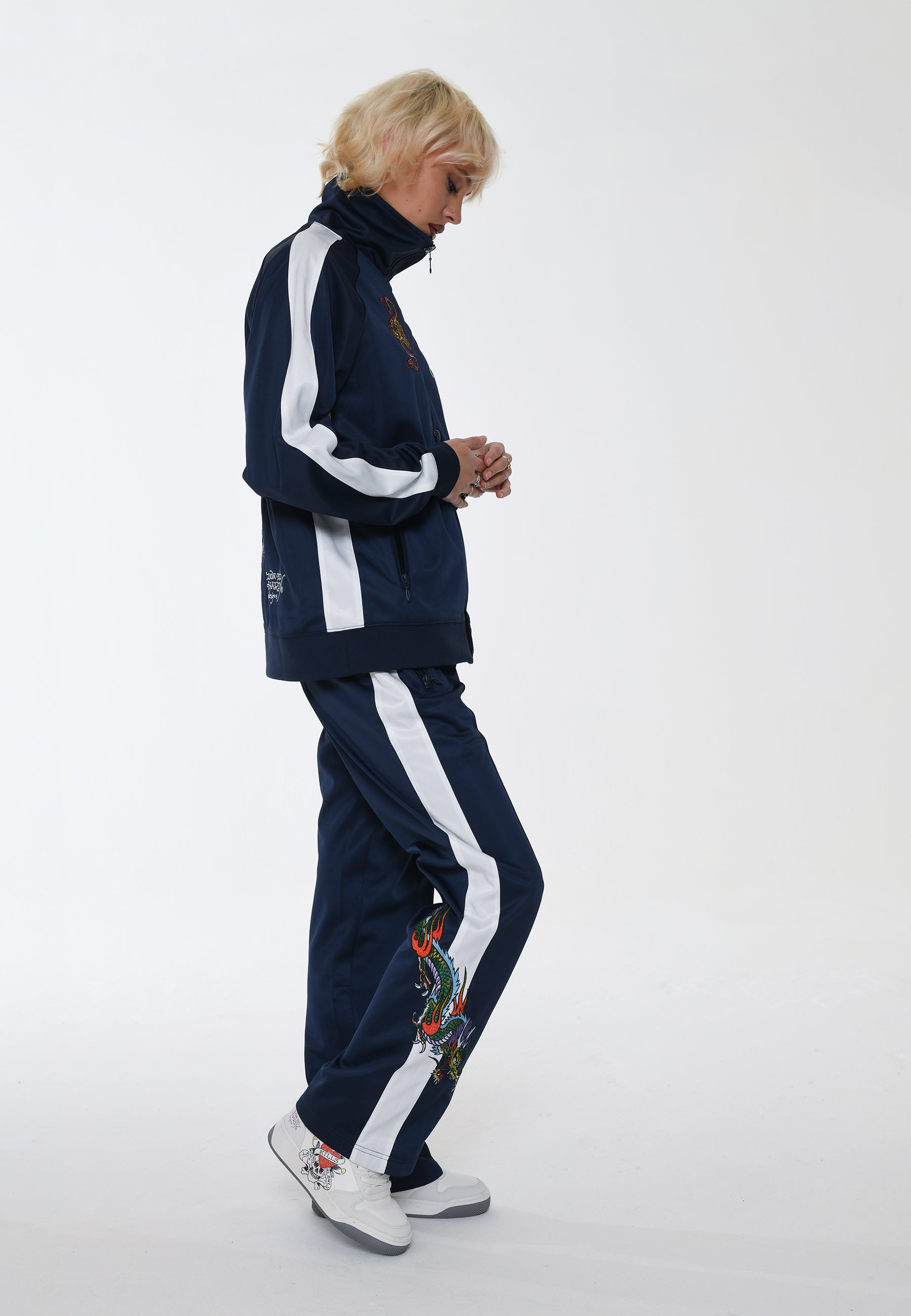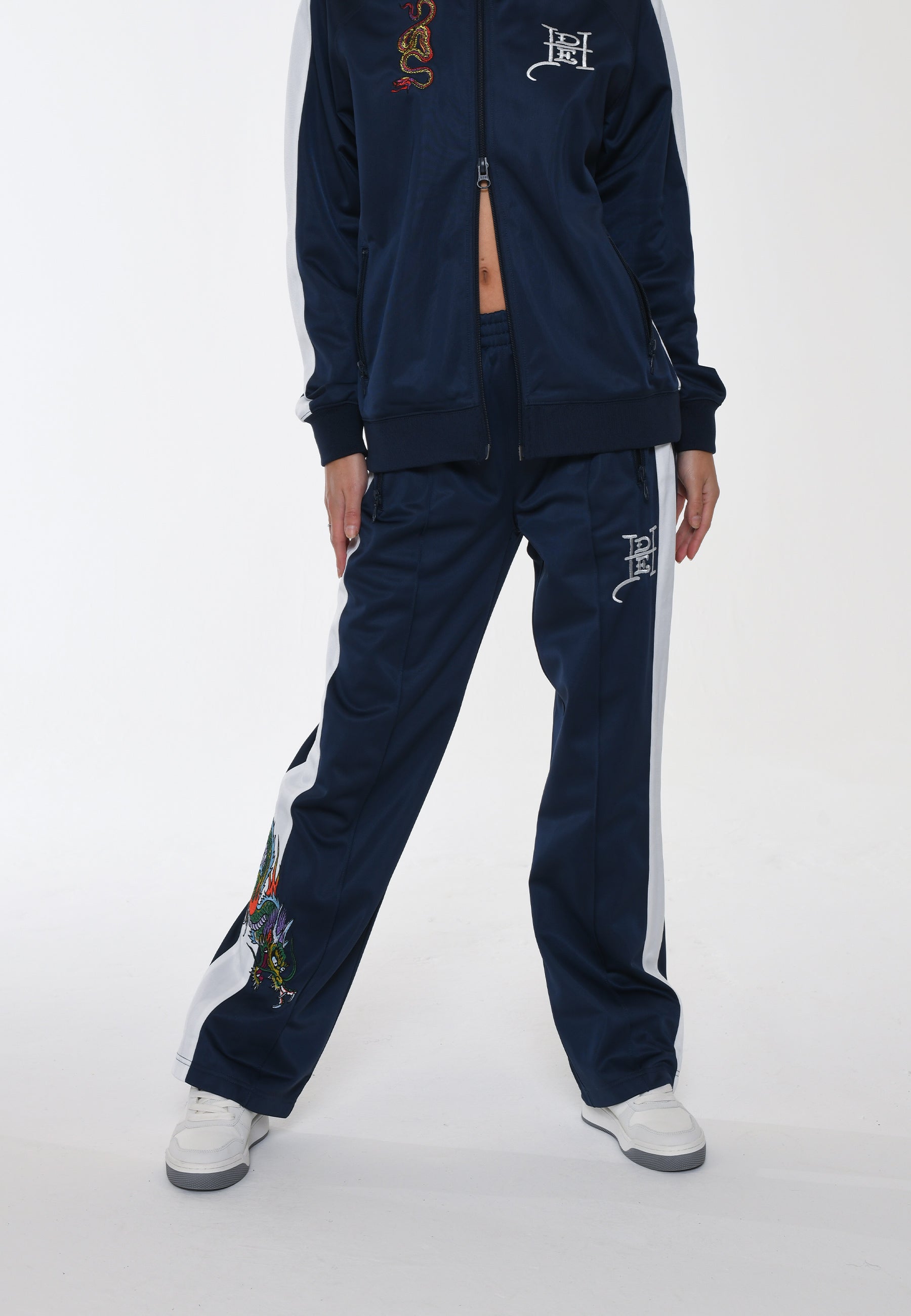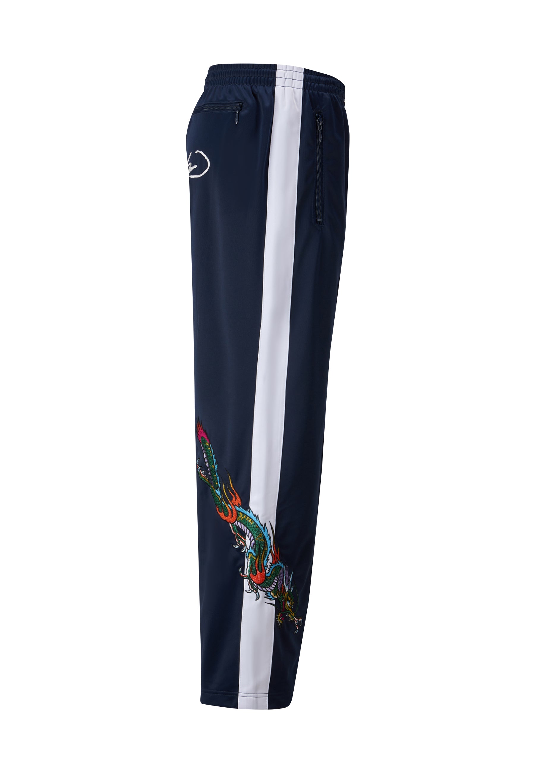Vi præsenterer Big Dragon Tricot Track Joggers< span data-mce-fragment="1">, en retro-inspireret flådehelt. De er lavet af 100 % poly tricot og fremviser Eds vintageillustrationer gennem livlige dragebroderier i blå, lilla, grøn, rød, gul og orange.