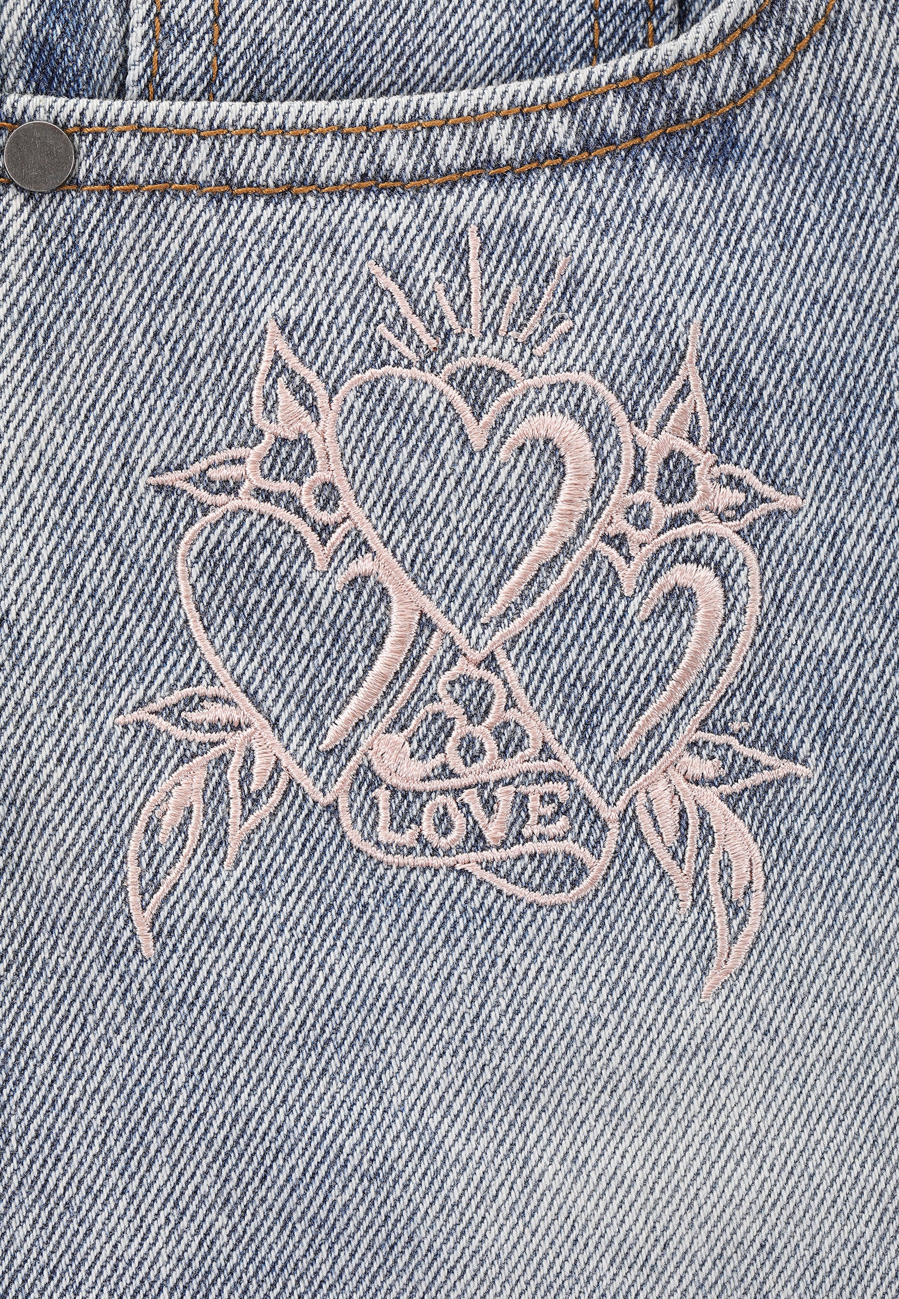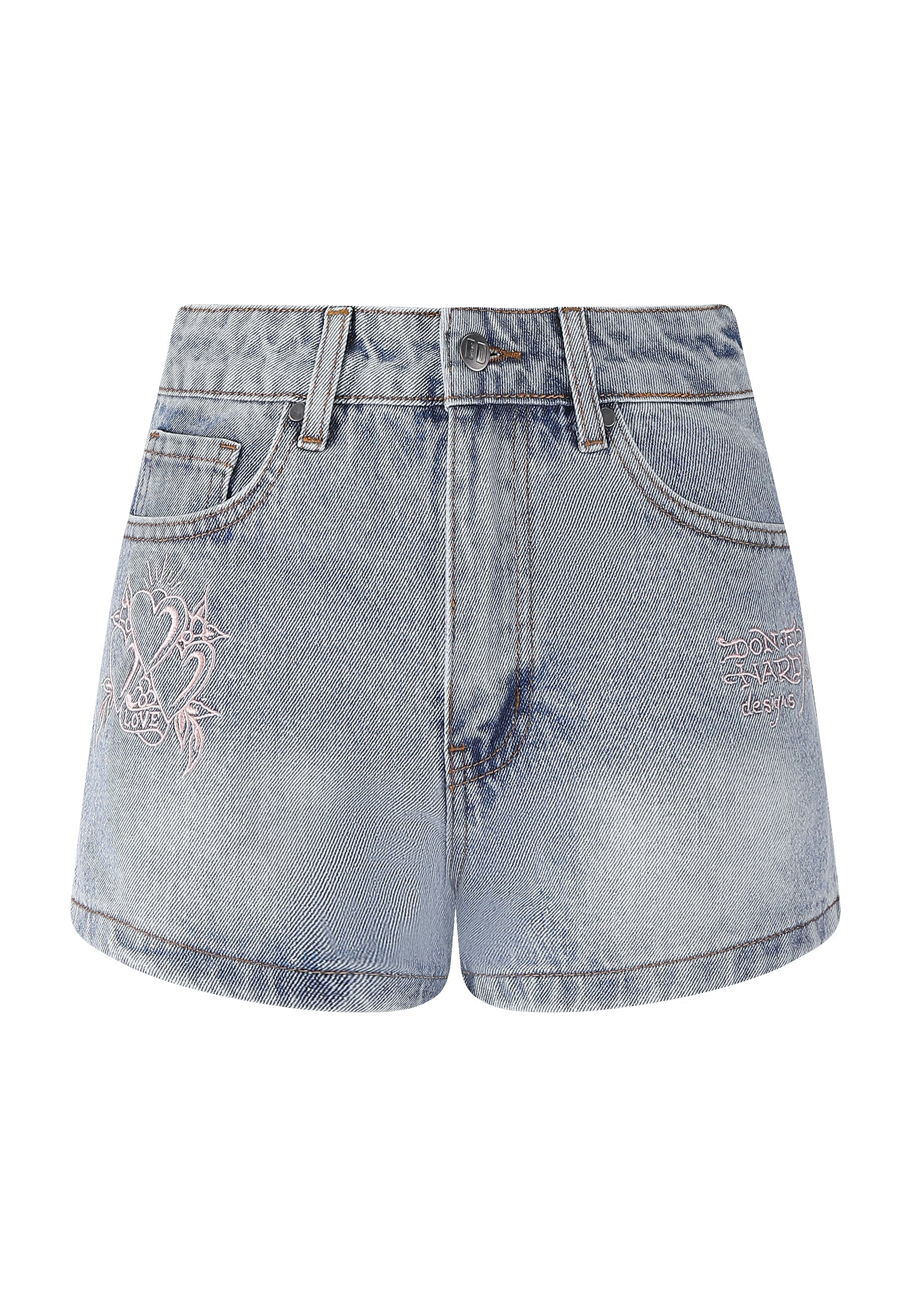 Womens Triple Heart Denim Jorts Shorts - Blå