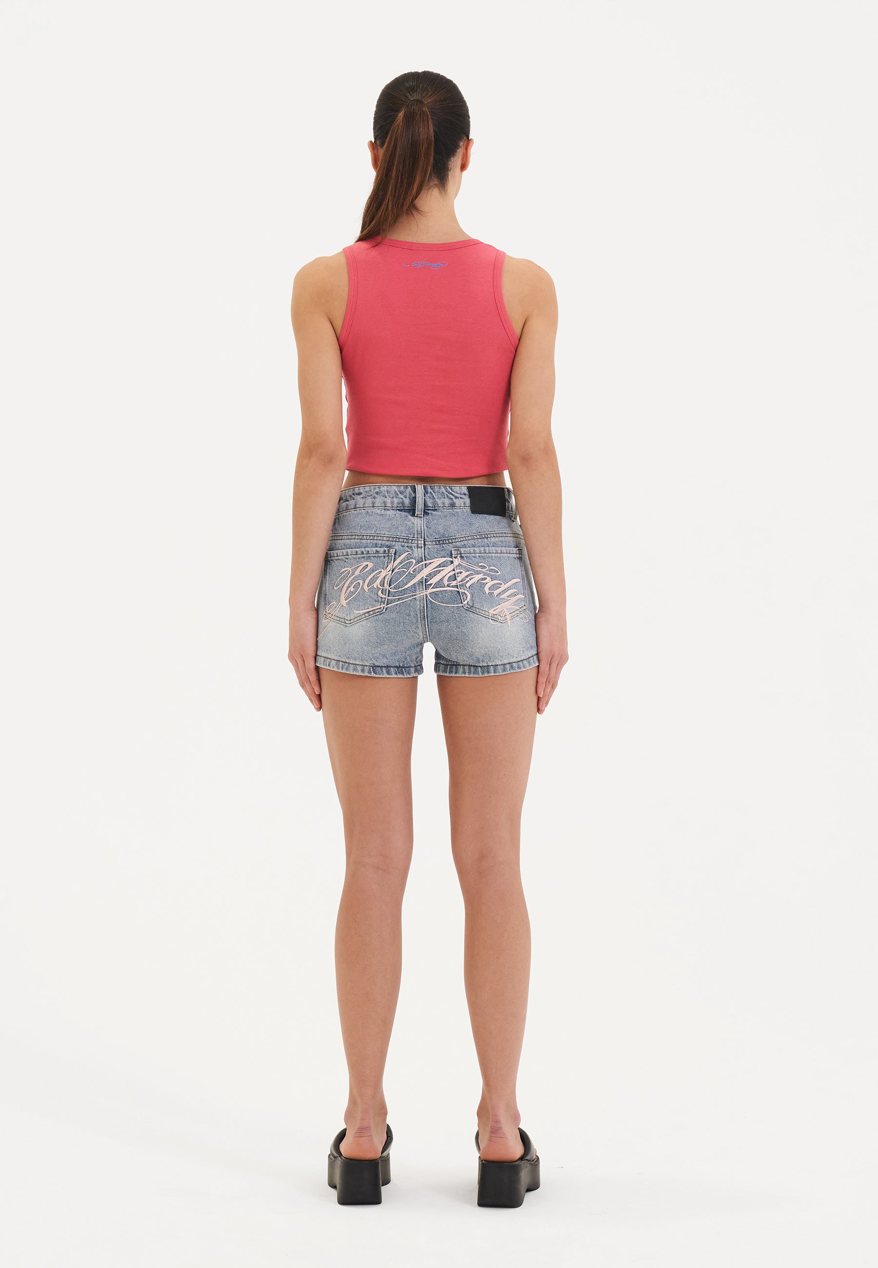 Designet med sommerfestivaler i fokus, dette letblegede par har tonalt grafisk broderi, der tilbyder en alsidig og vigtig tilføjelse til din Ed Hardy-kollektion.