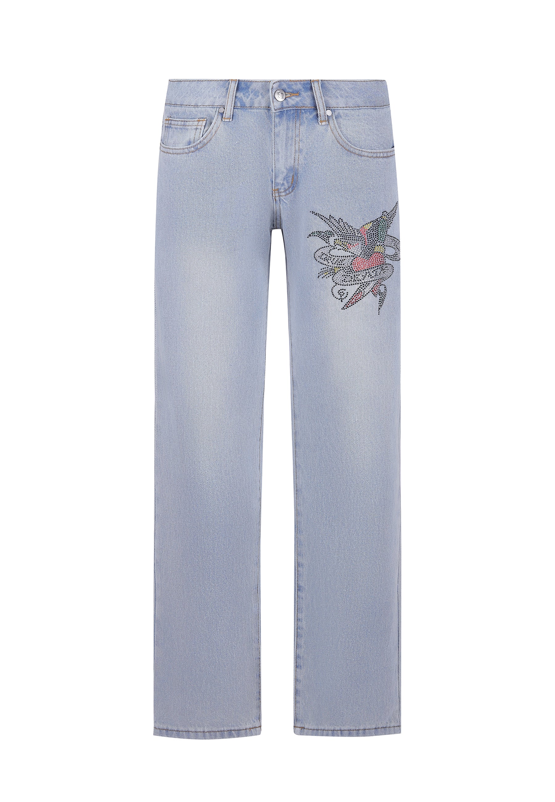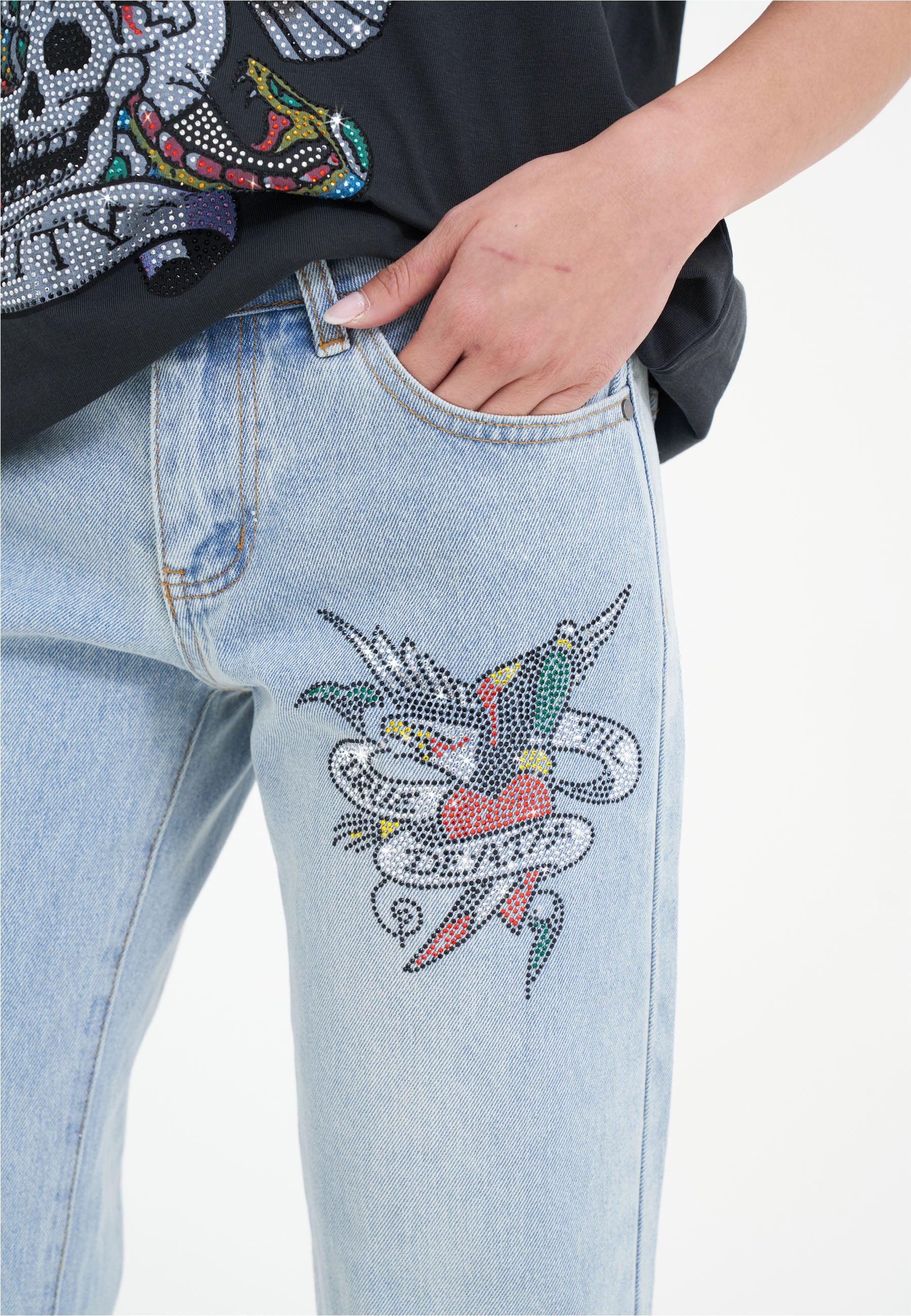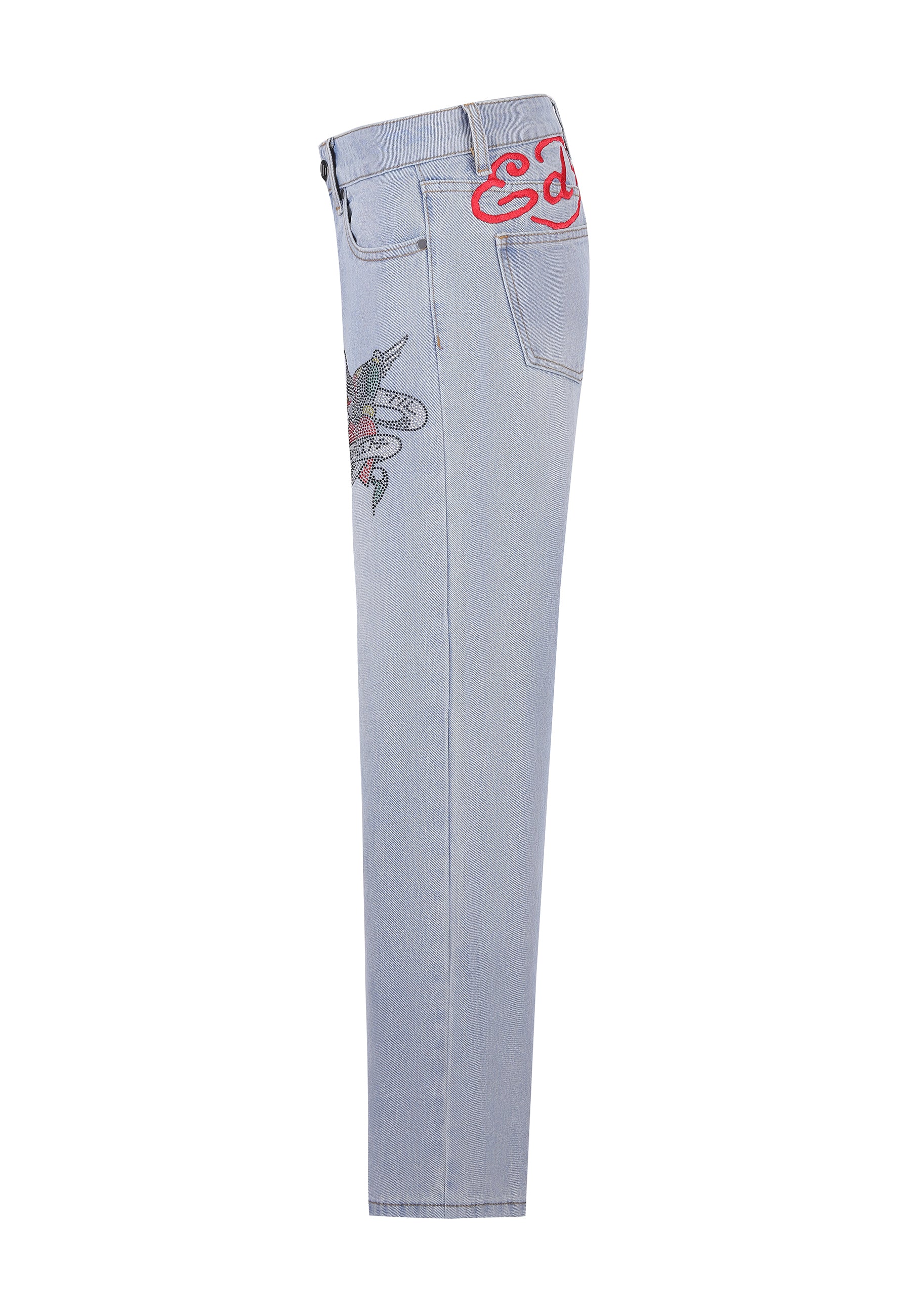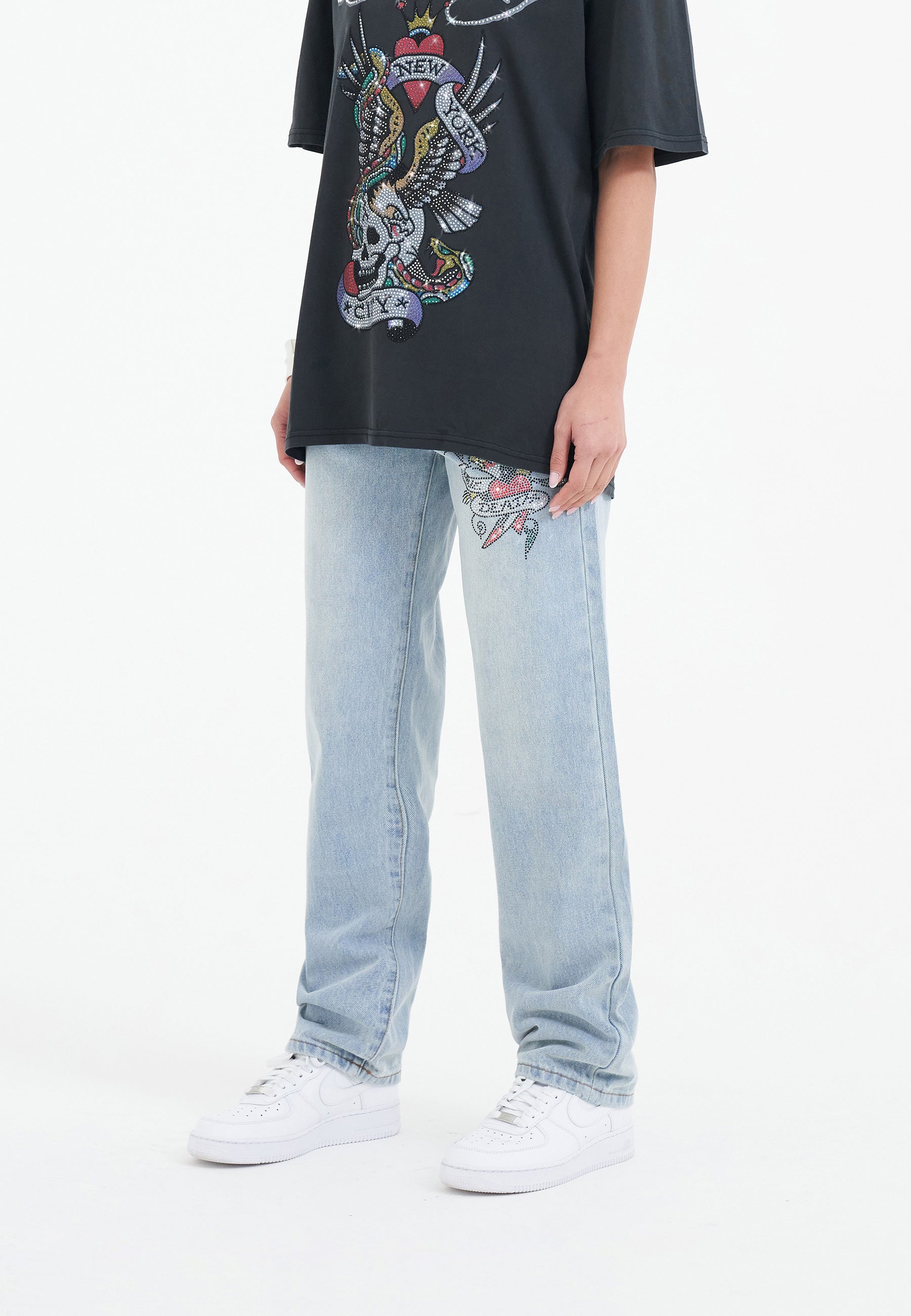 Dame True Death Diamante Straight Denim Bukser Jeans - Bleach