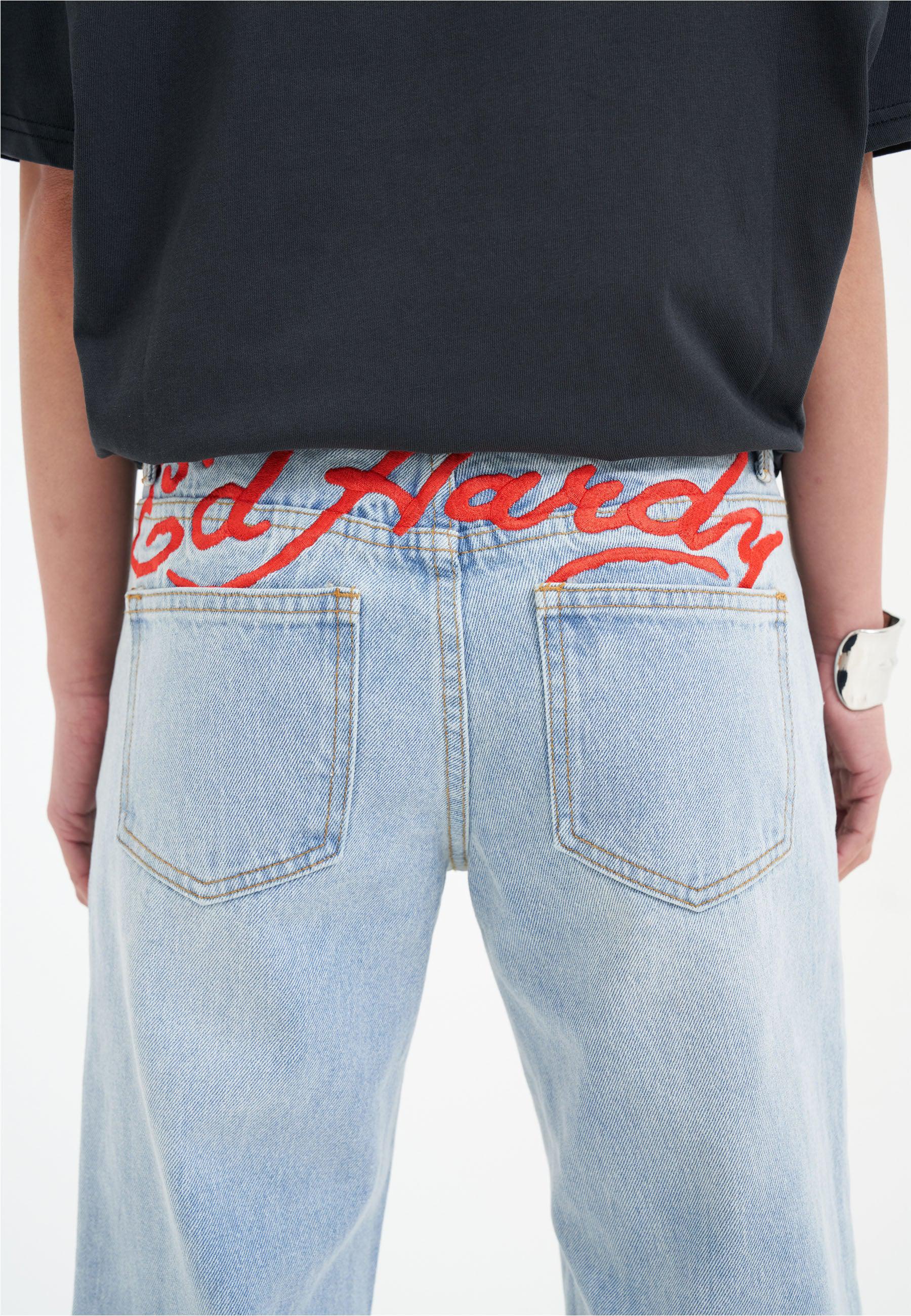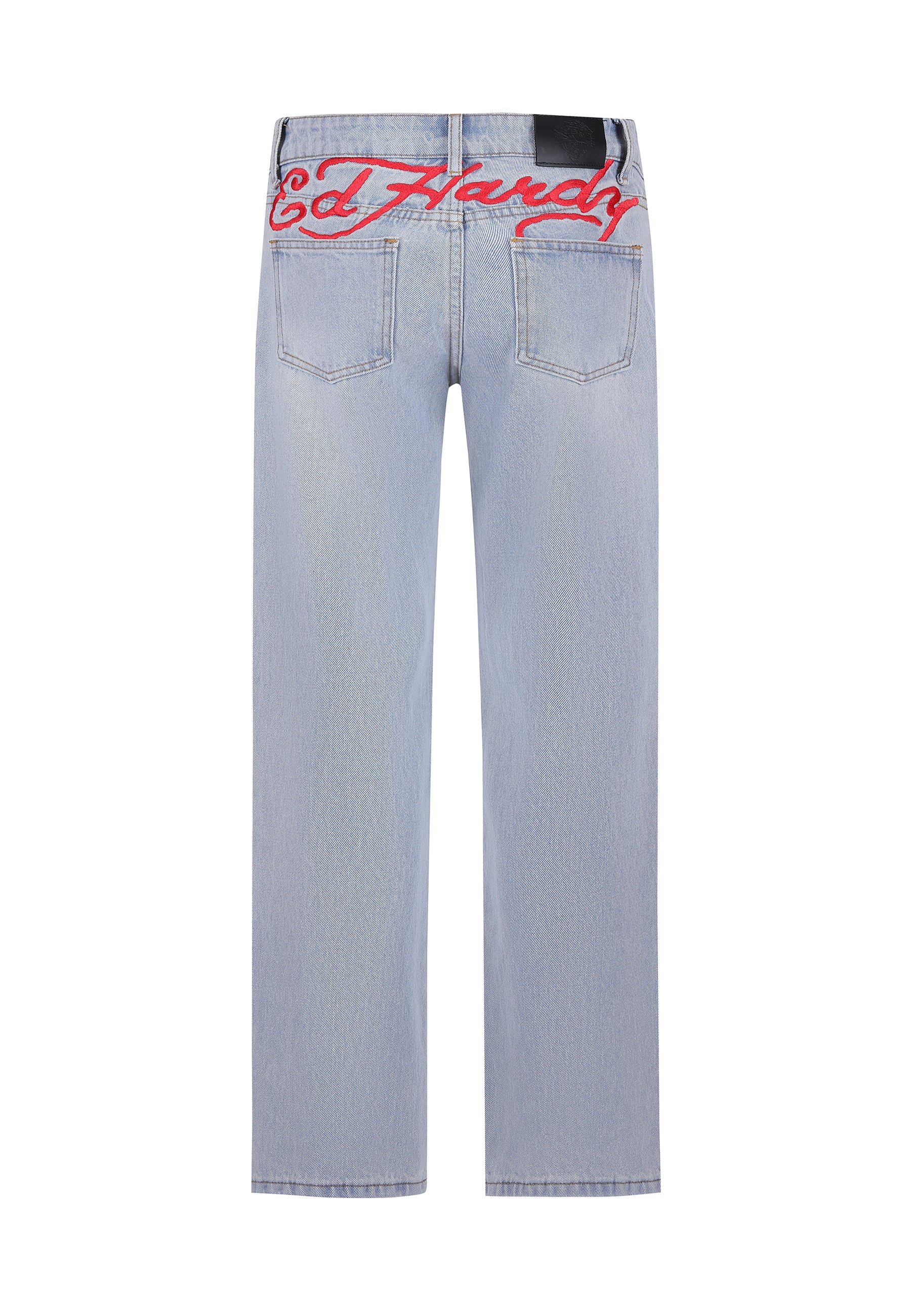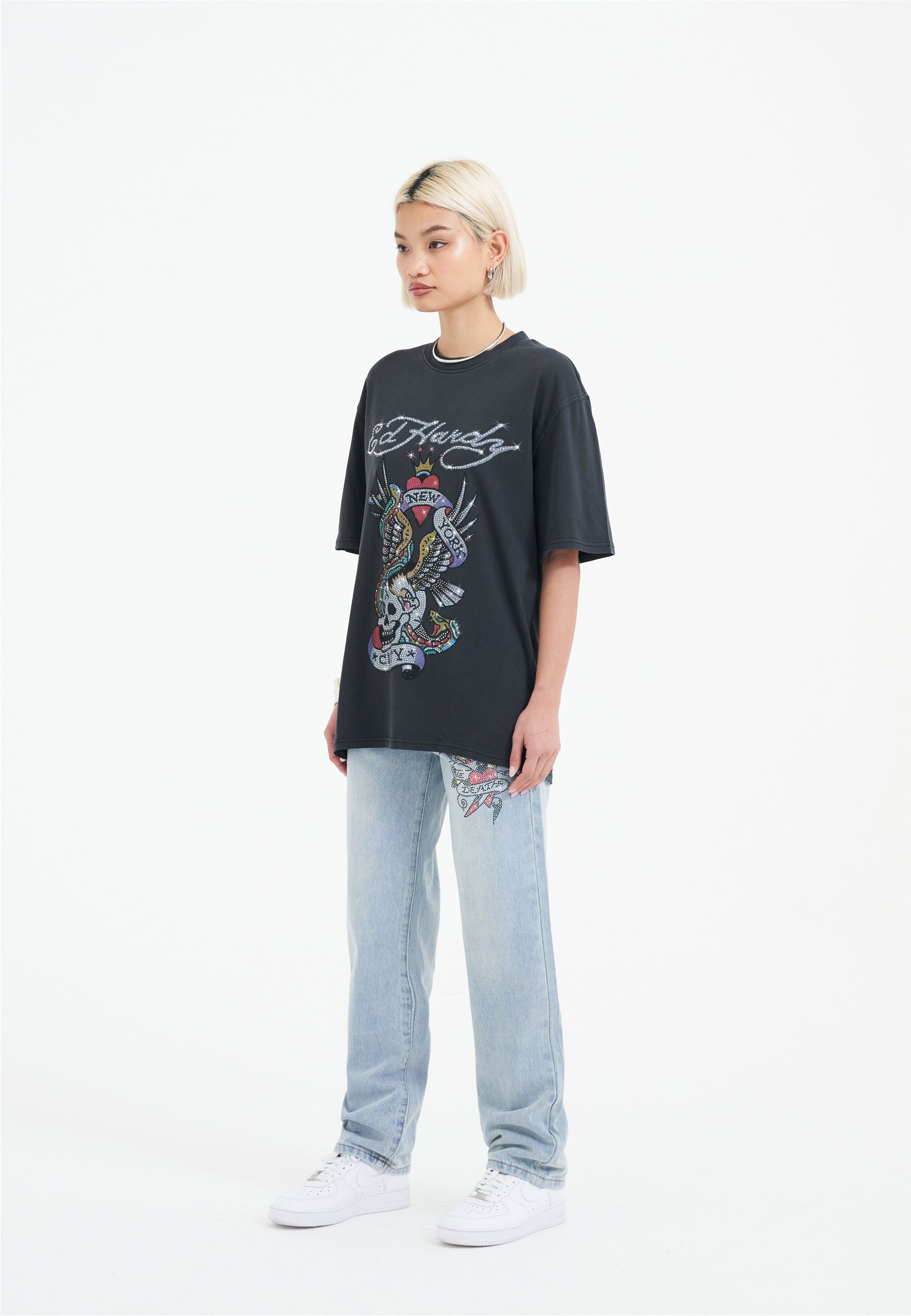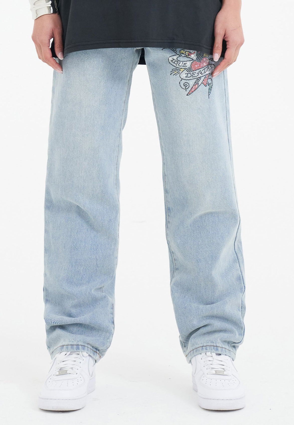 Dame True Death Diamante Straight Denim Bukser Jeans - Bleach