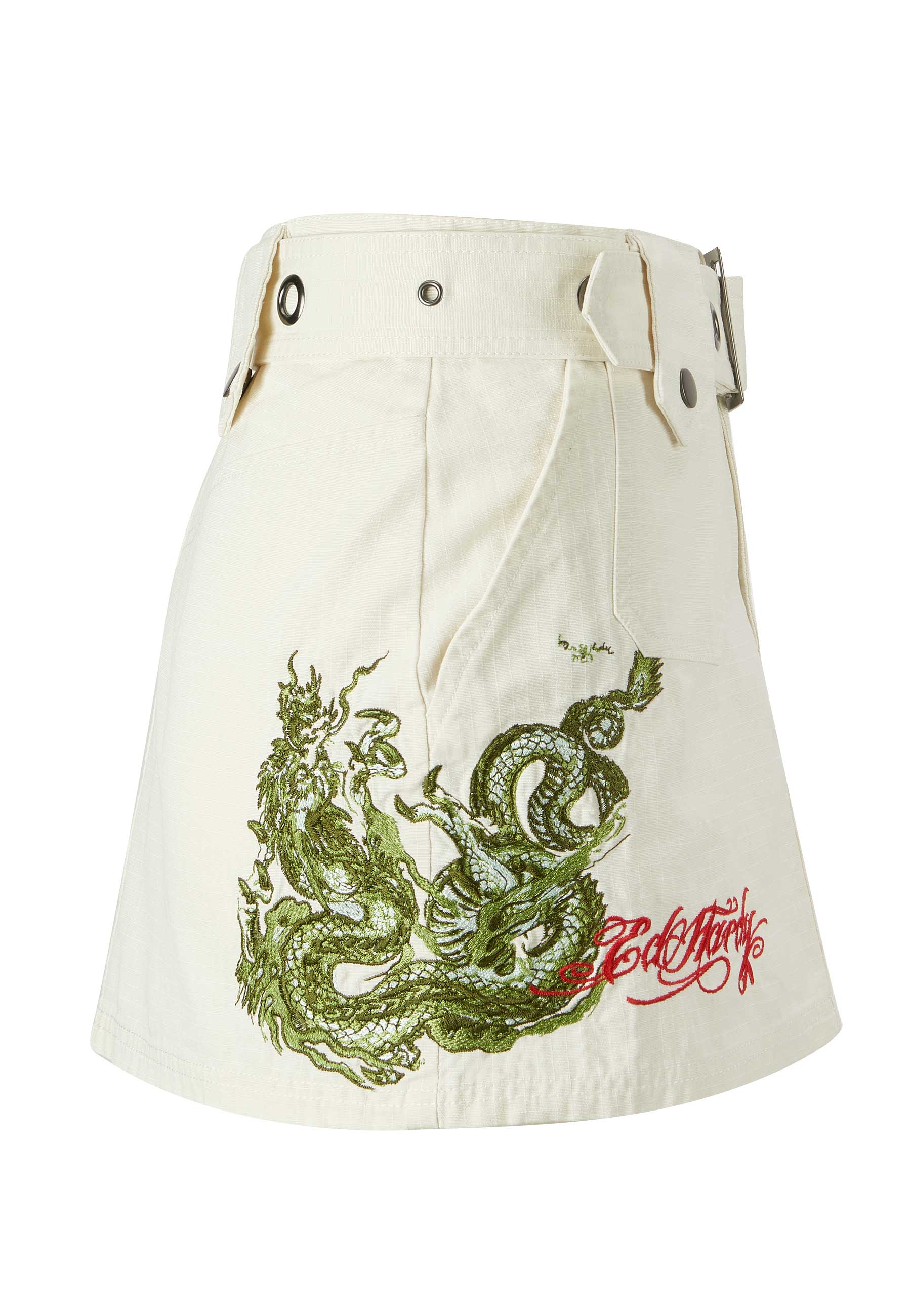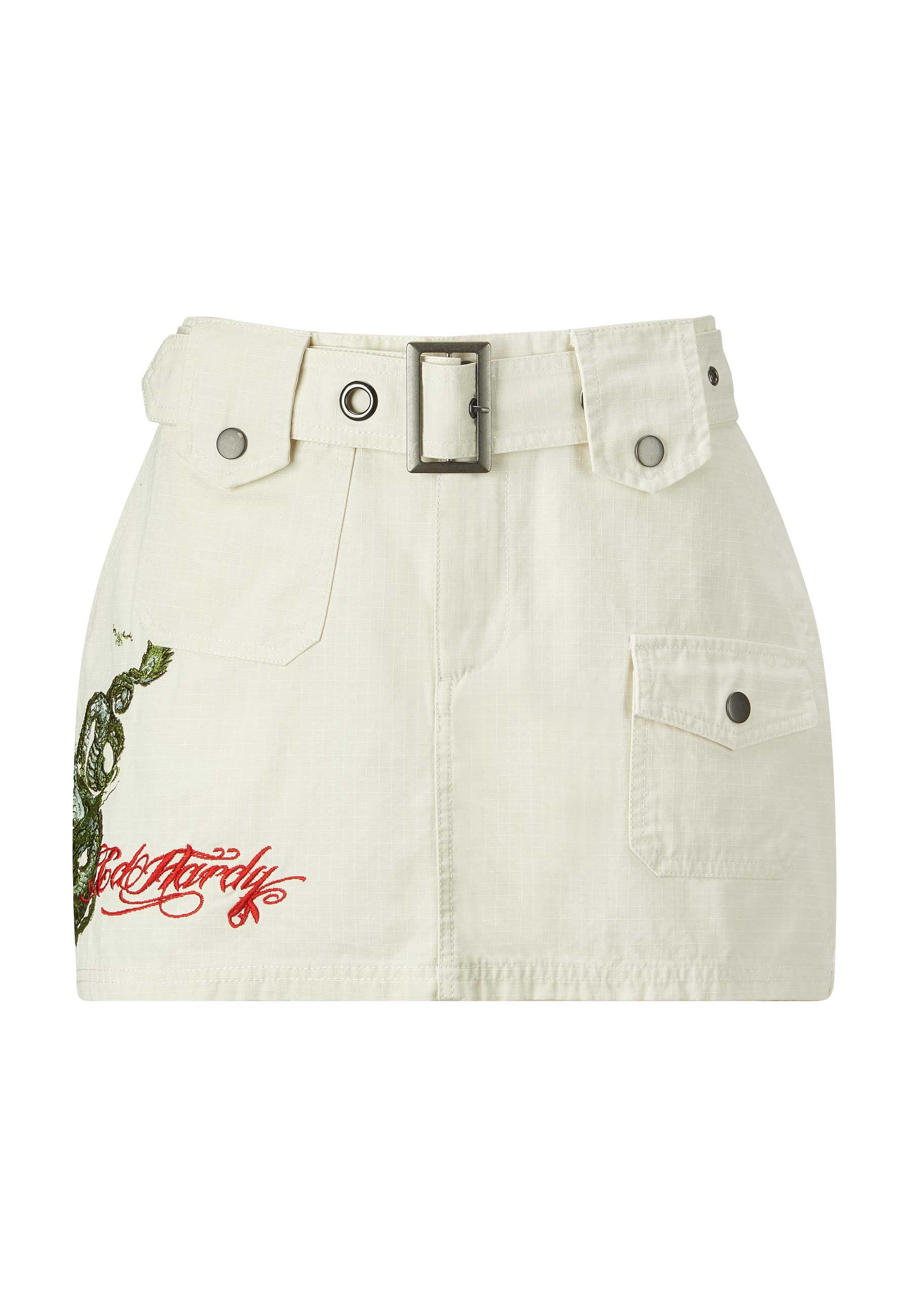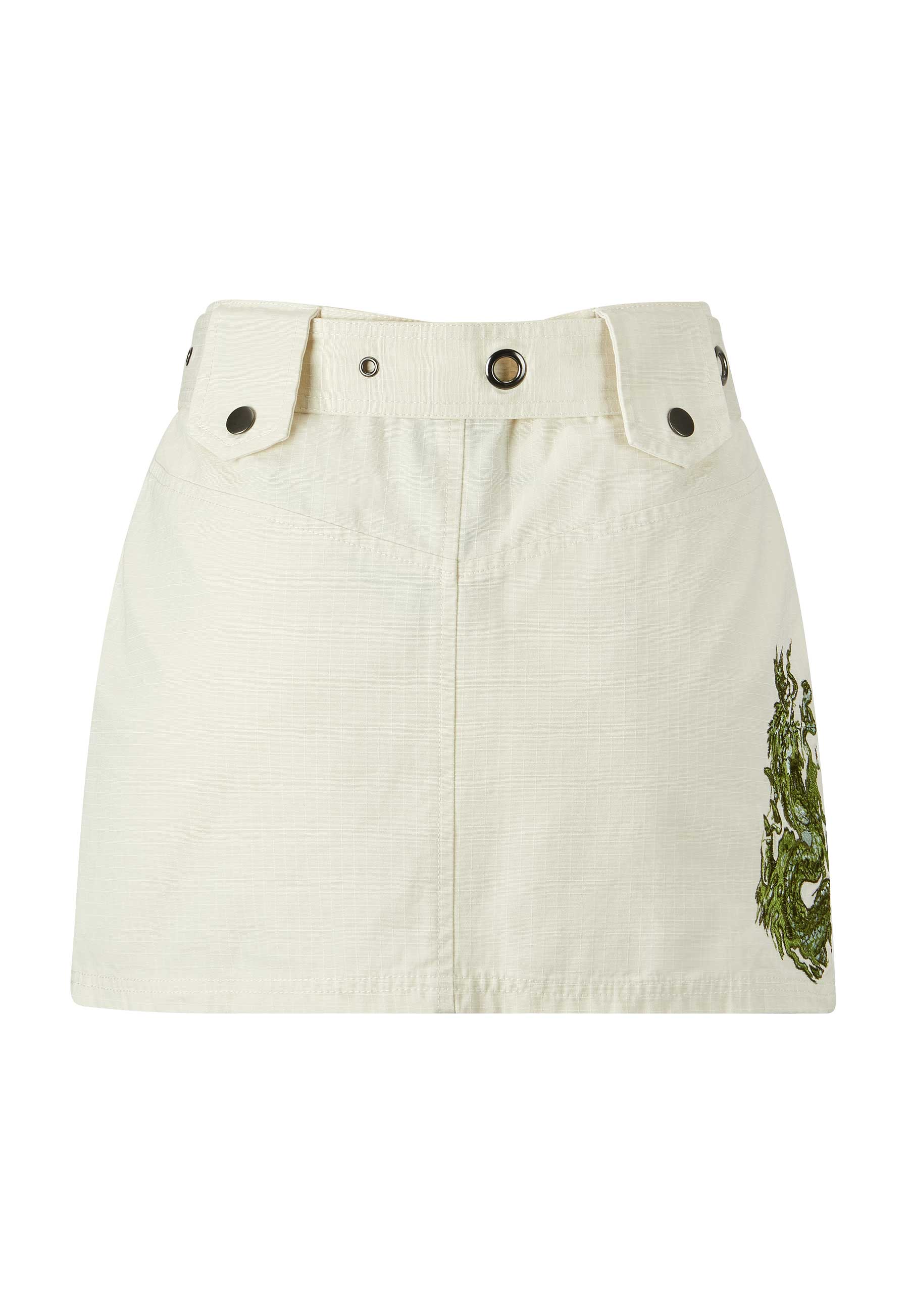 En mini for masserne! Med et broderet grafisk patch i fuld farve, er Twisted Dragon Cargo Mini-nederdel direkte påvirket af punk-design og kunsten at patches som udsagn ud over stilen. Vi forudser, at denne mini vil gøre store indtryk i denne sæson.