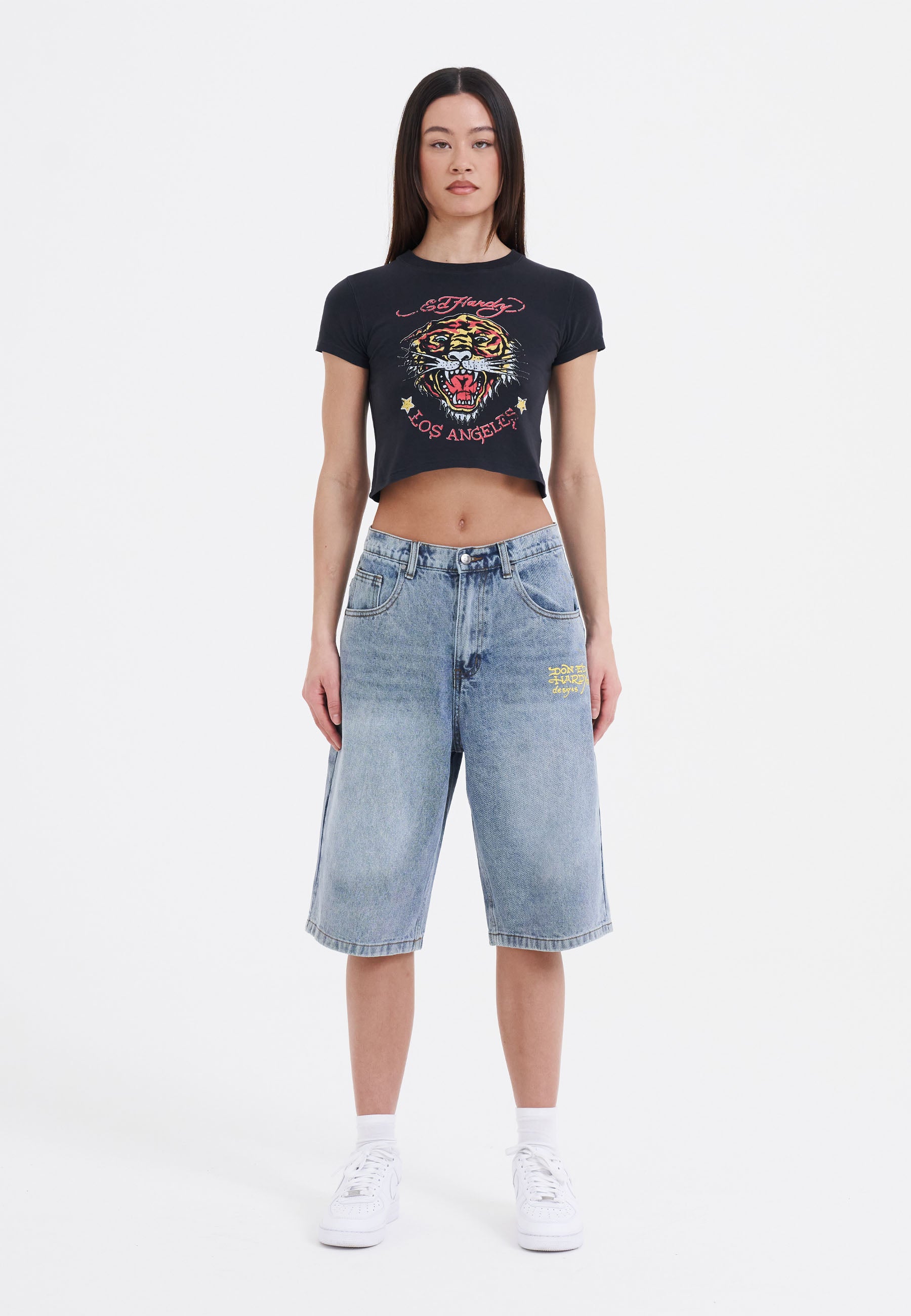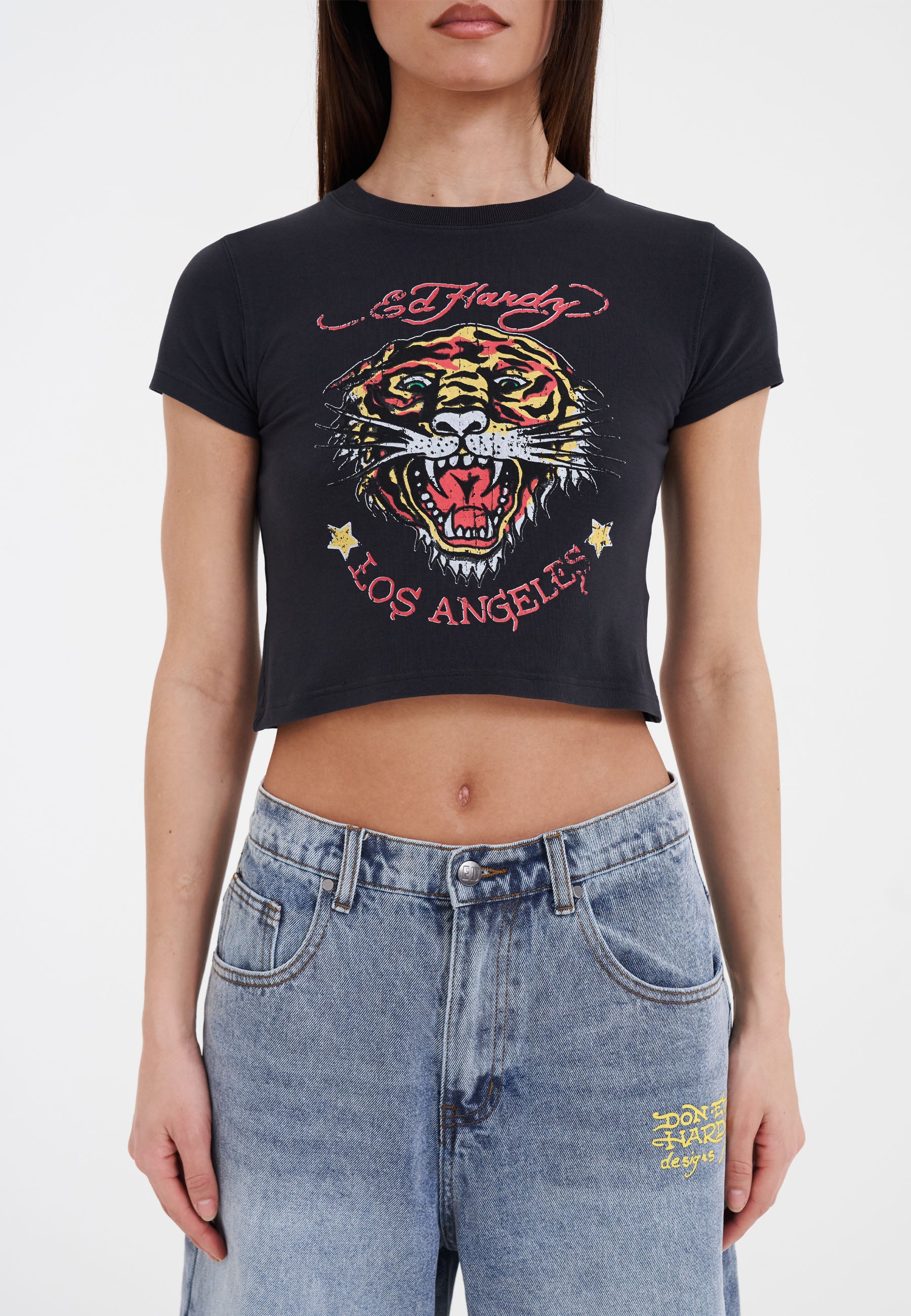 Dame La-Roar-Tiger Cropped Baby T-Shirt - Sort