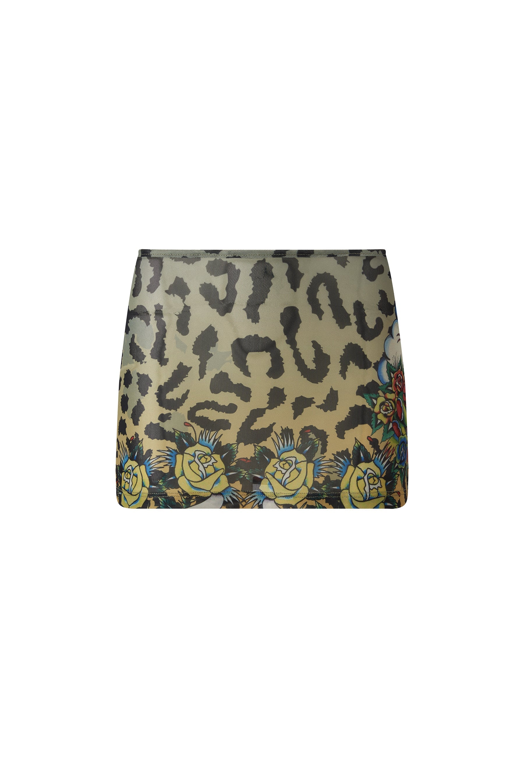 Dame La-Cobra Mesh Mini-nederdel - Ombre Leopard Print