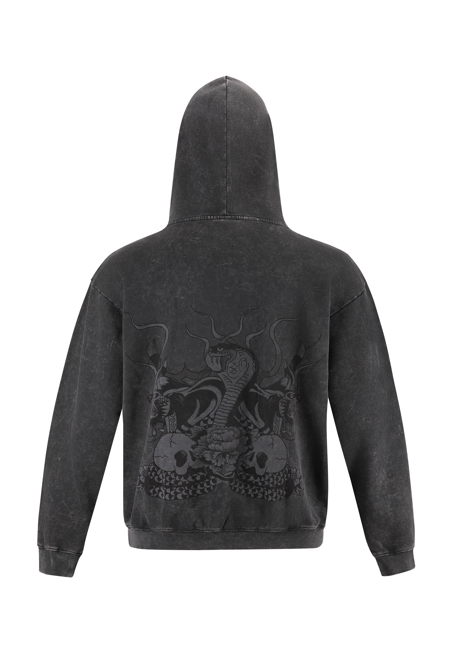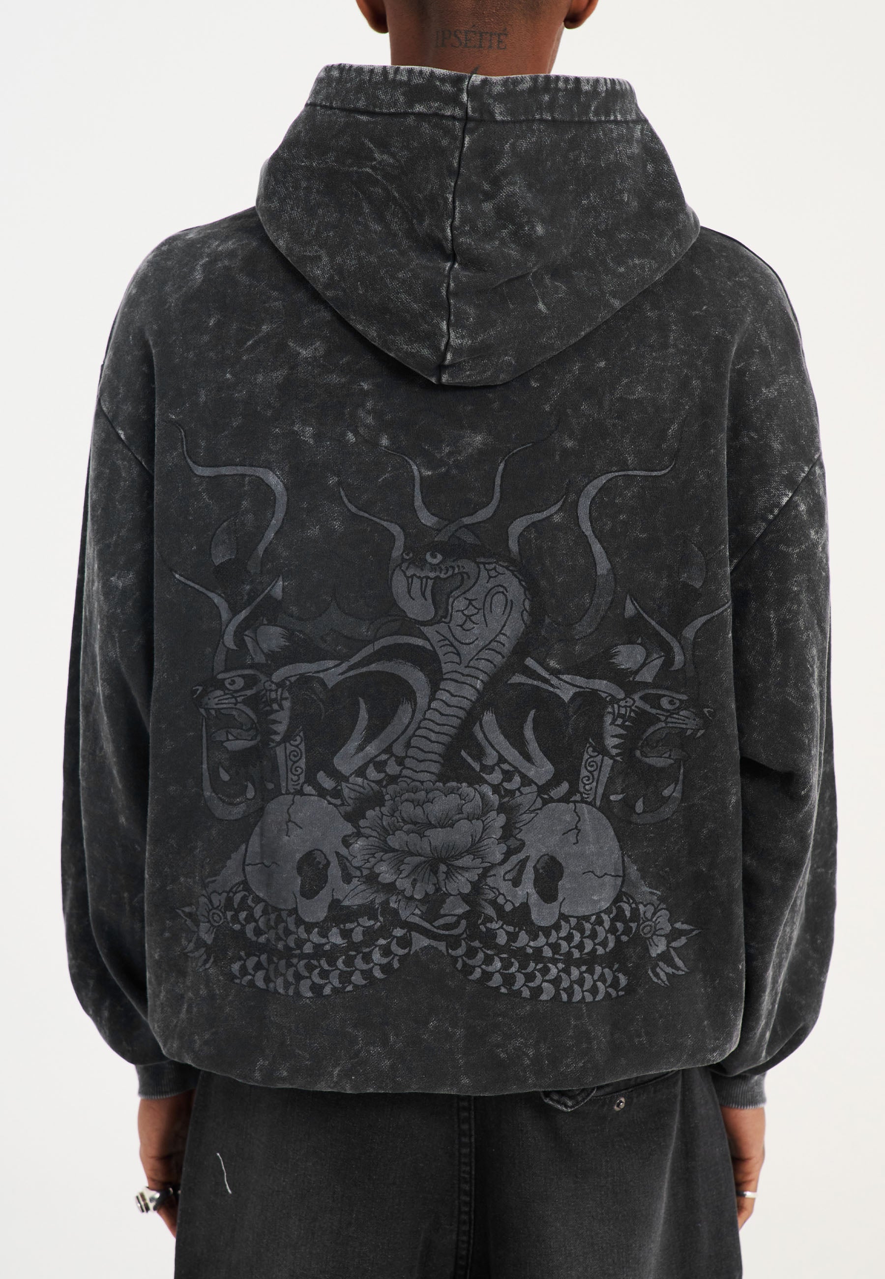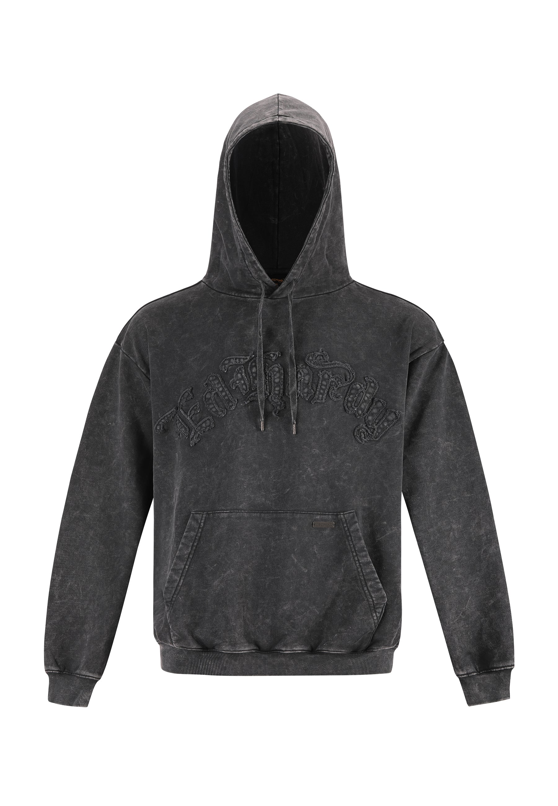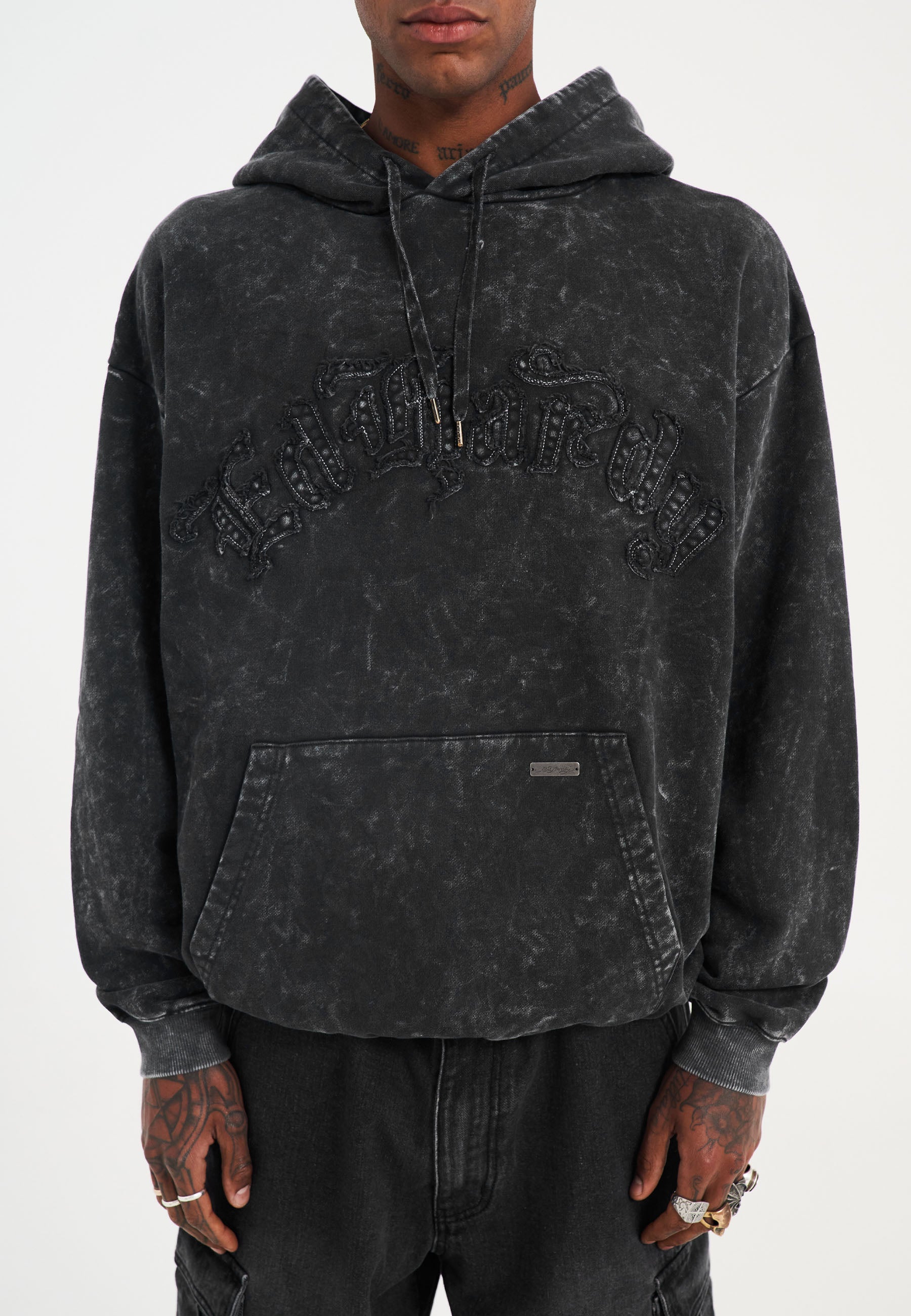 Tap into the legacy of tattoo legend Ed Hardy with the Men's Acid Wash Appliqué Hoodie. Featuring raw-edge Gothic logo detailing and an archival-inspired tattoo graphic design in an acid wash finish.