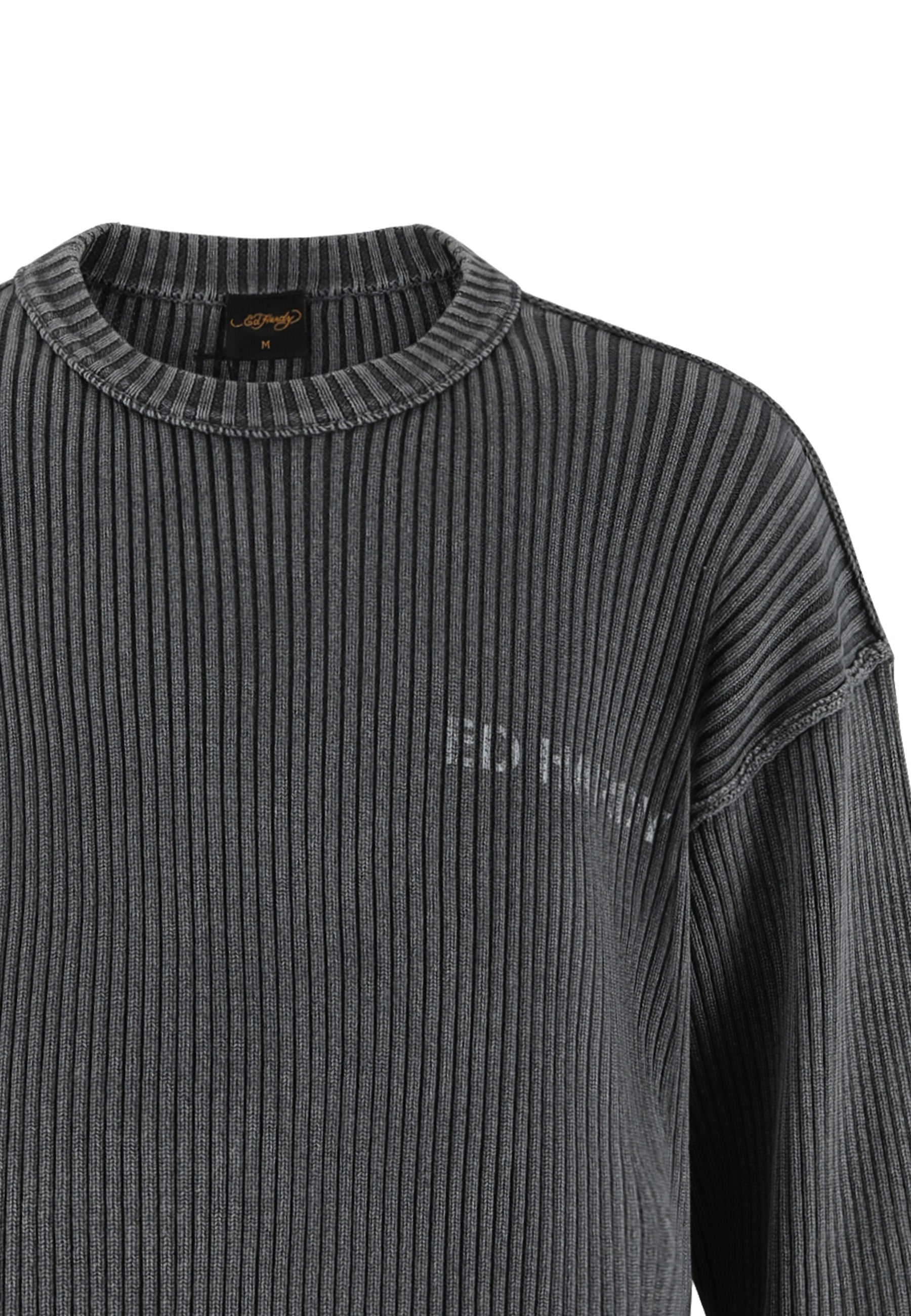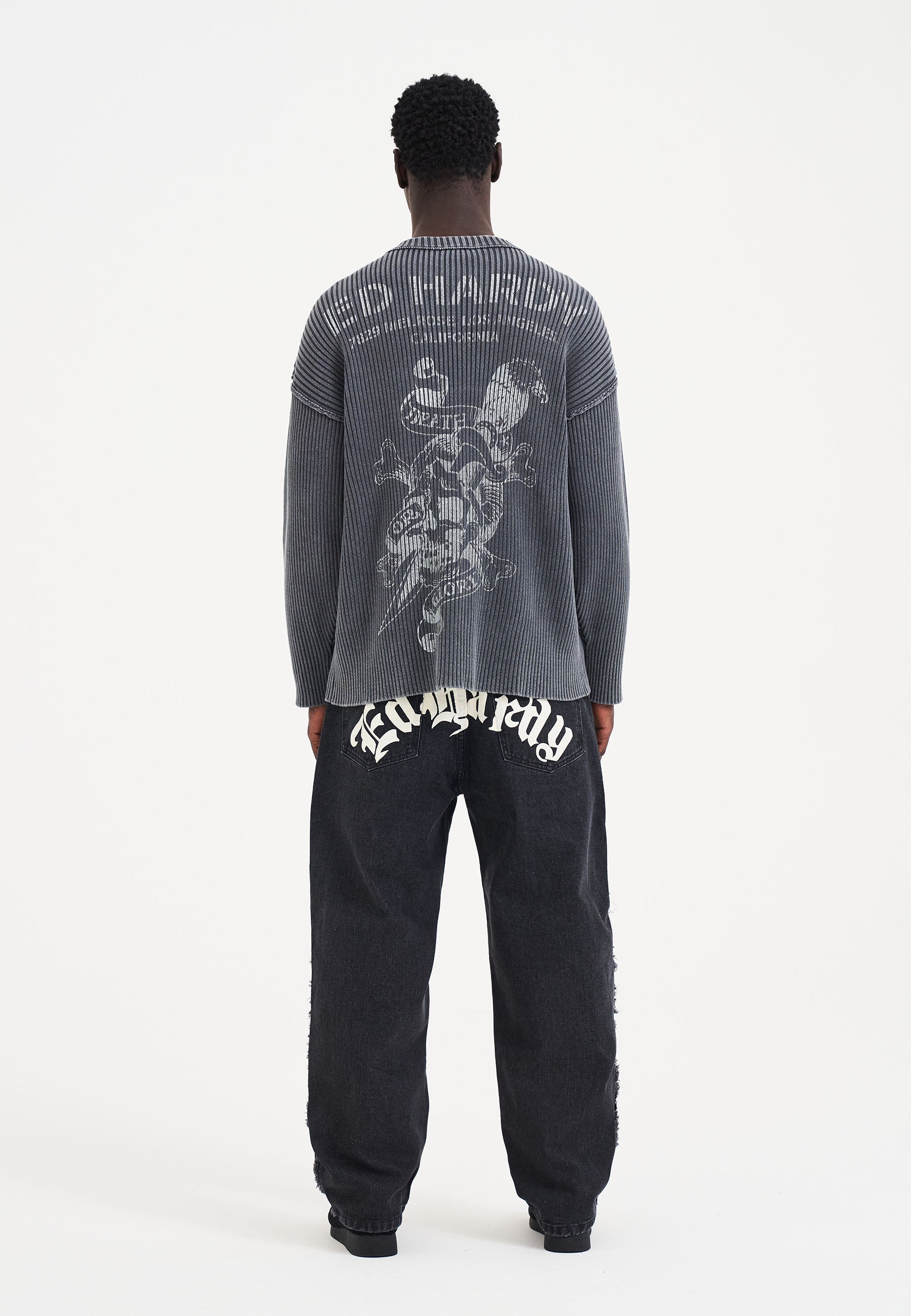 Mens Acid Wash Skull Knitted Jumper - Charcoal