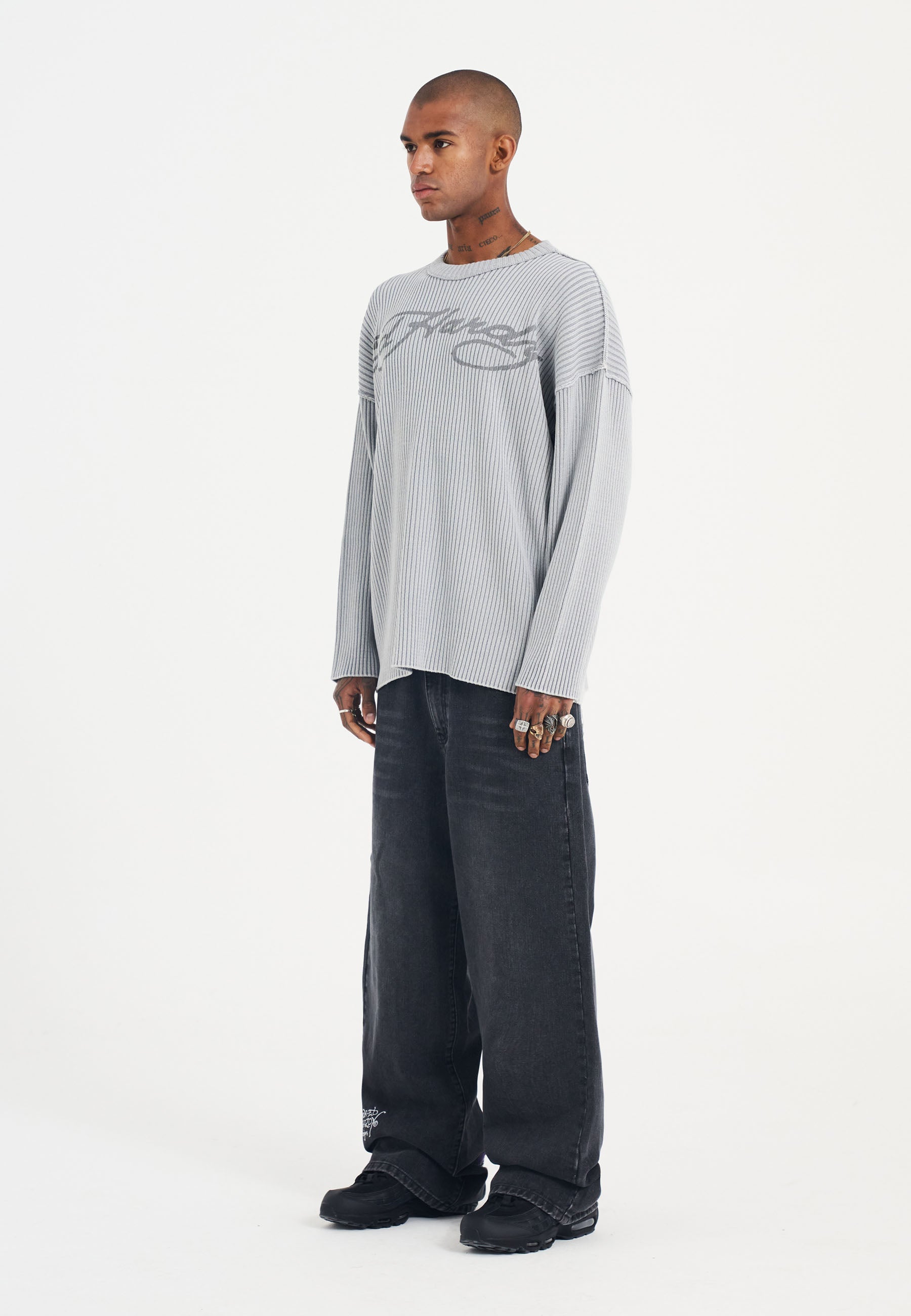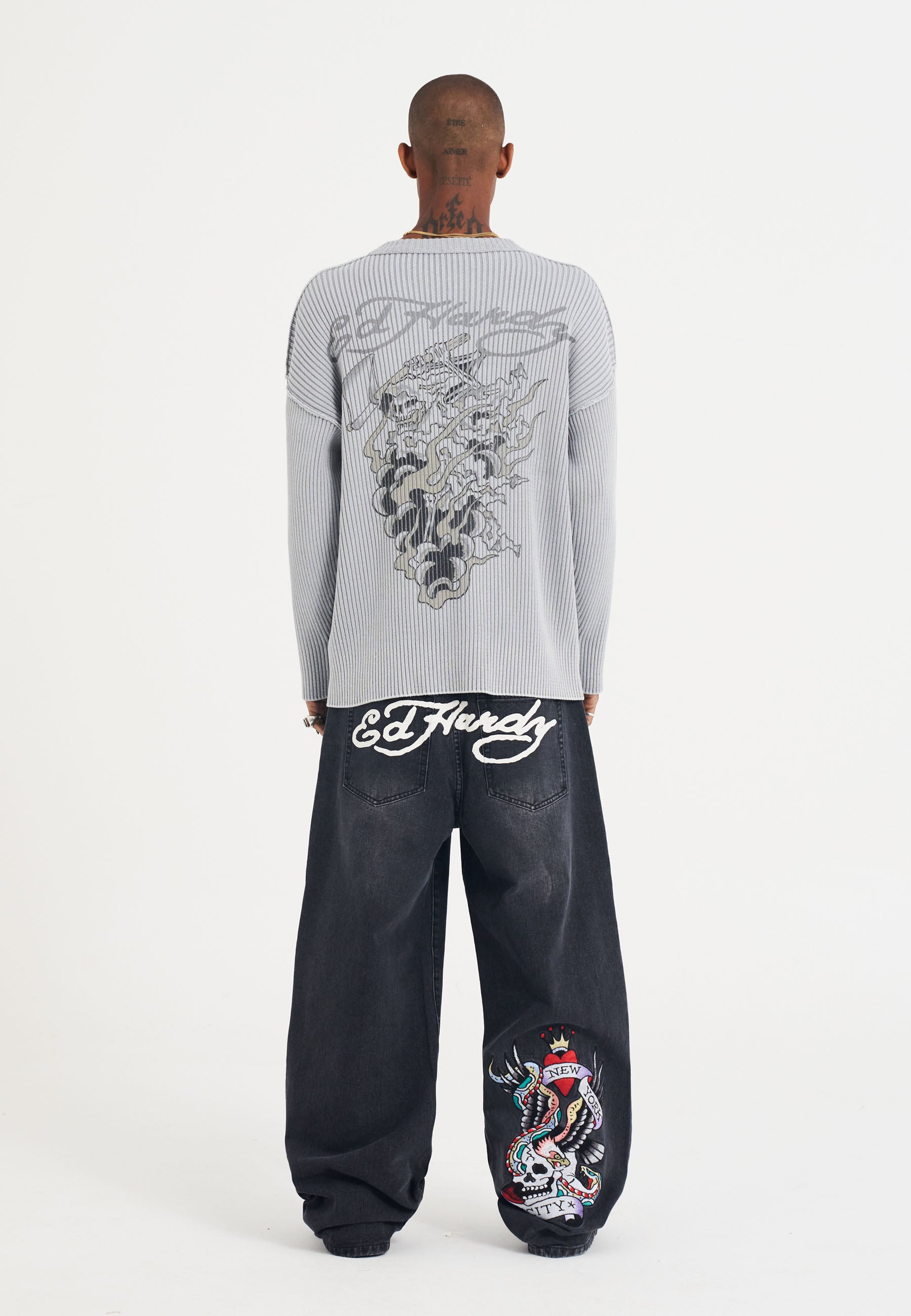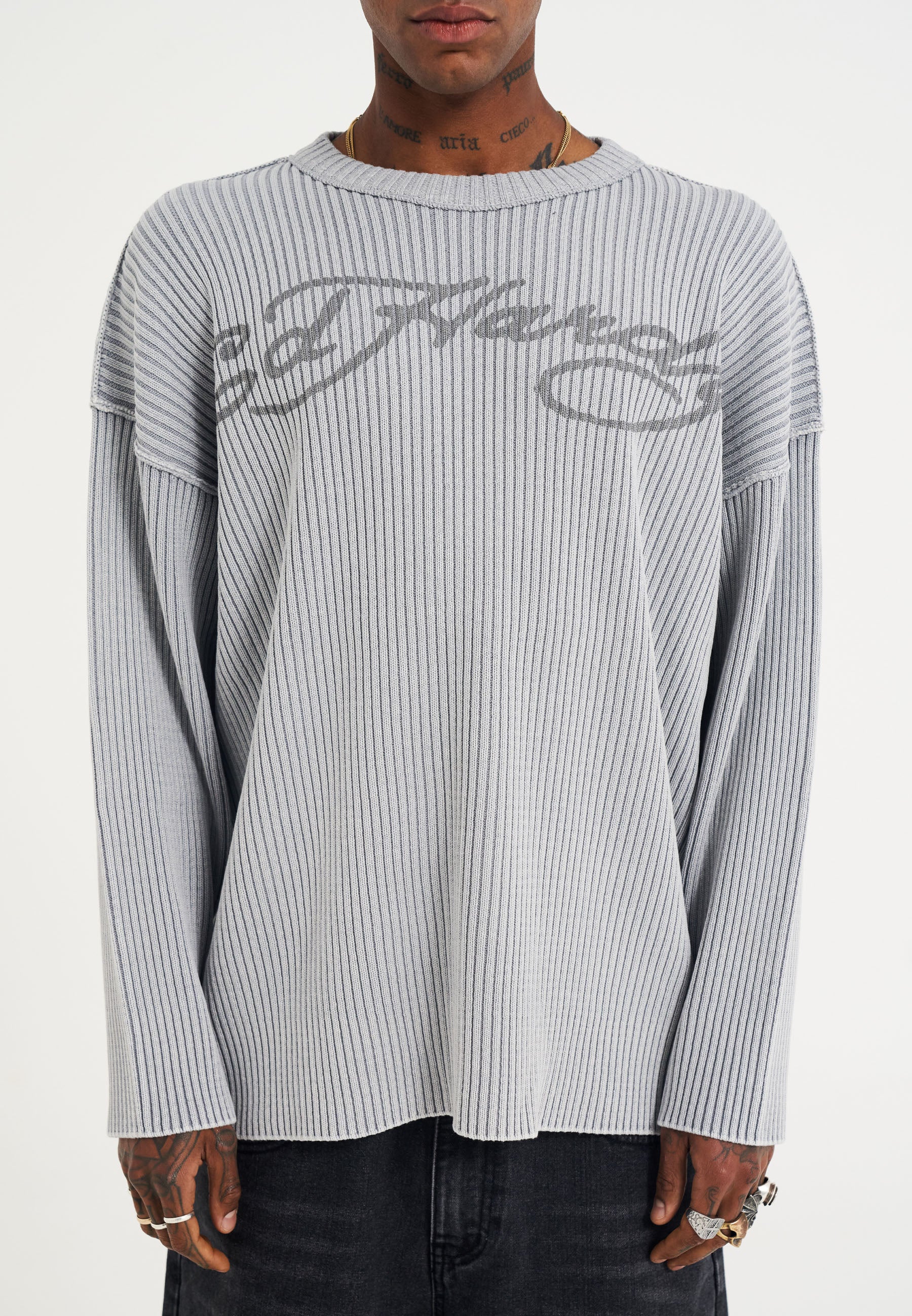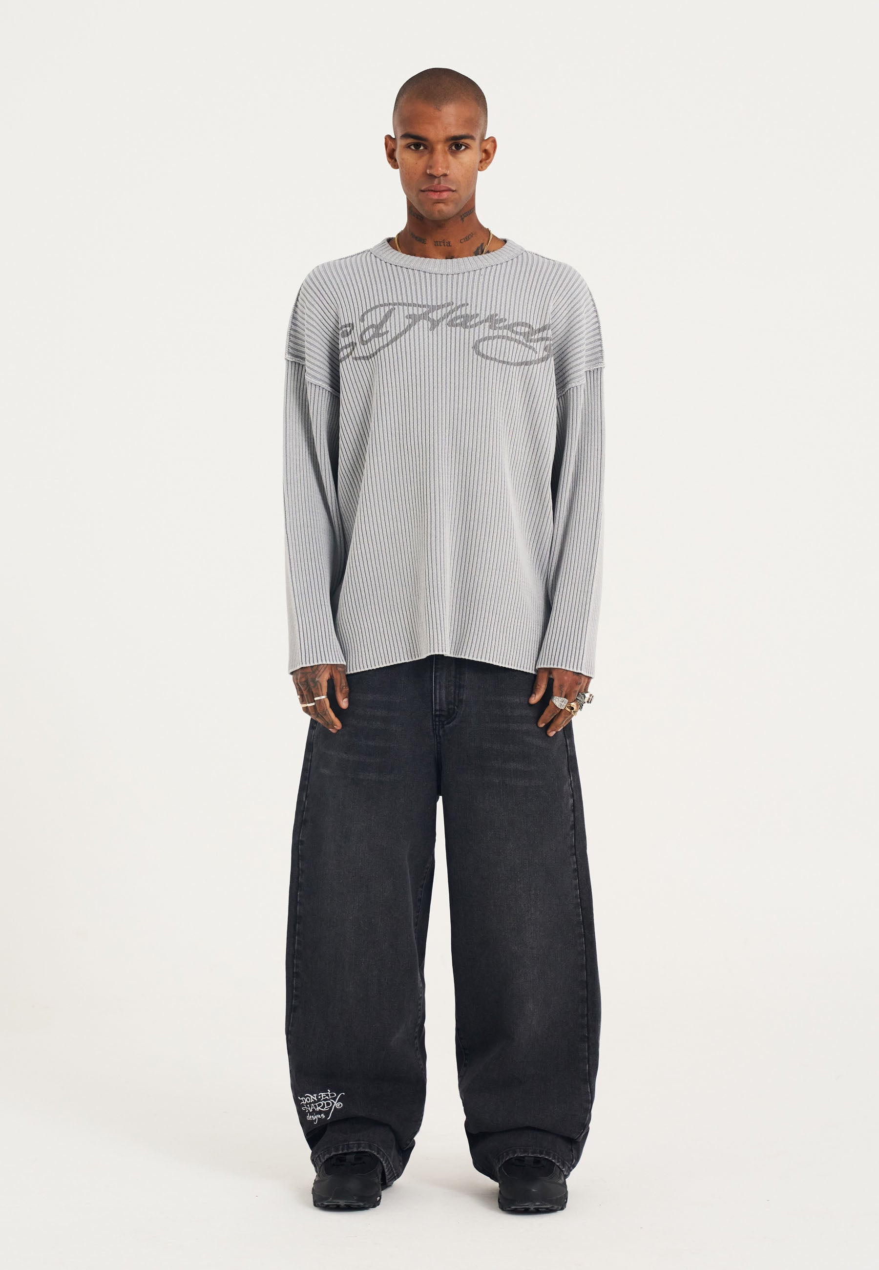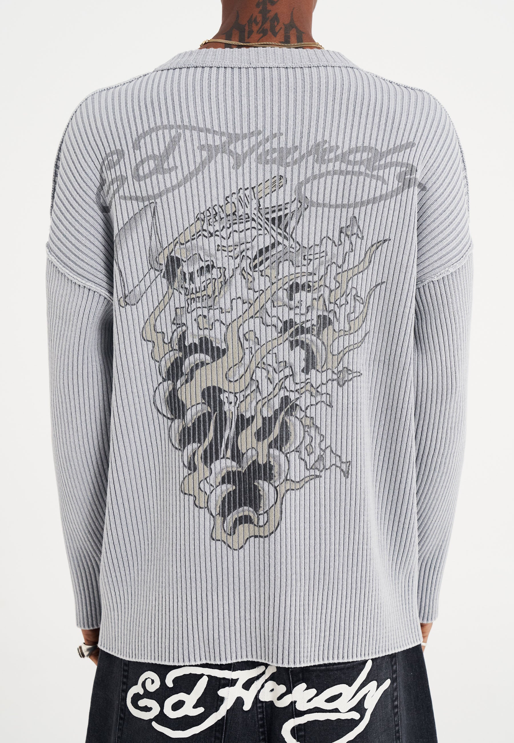 Mens Death Fighter Knitted Rib Relaxed Jumper - Grey