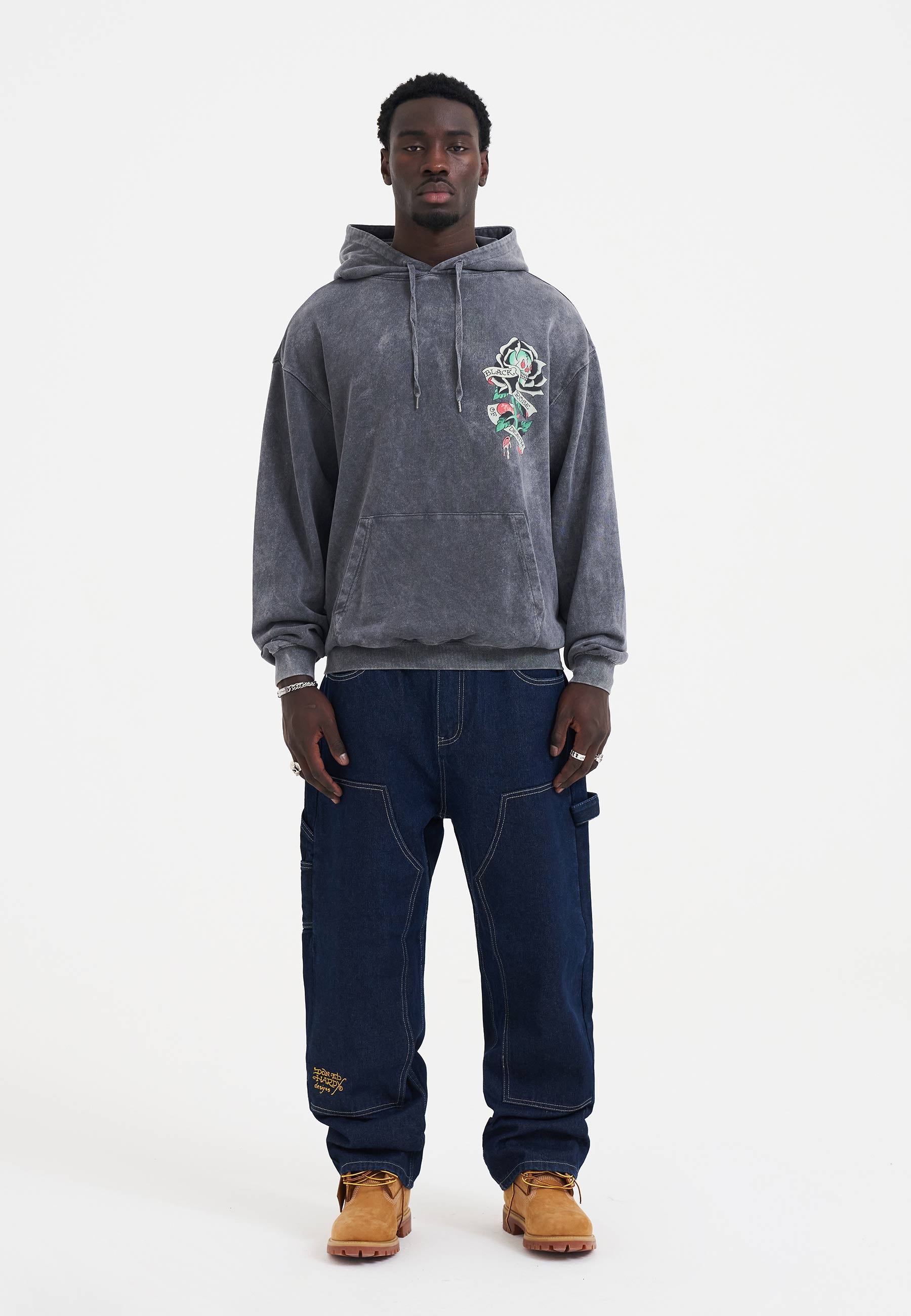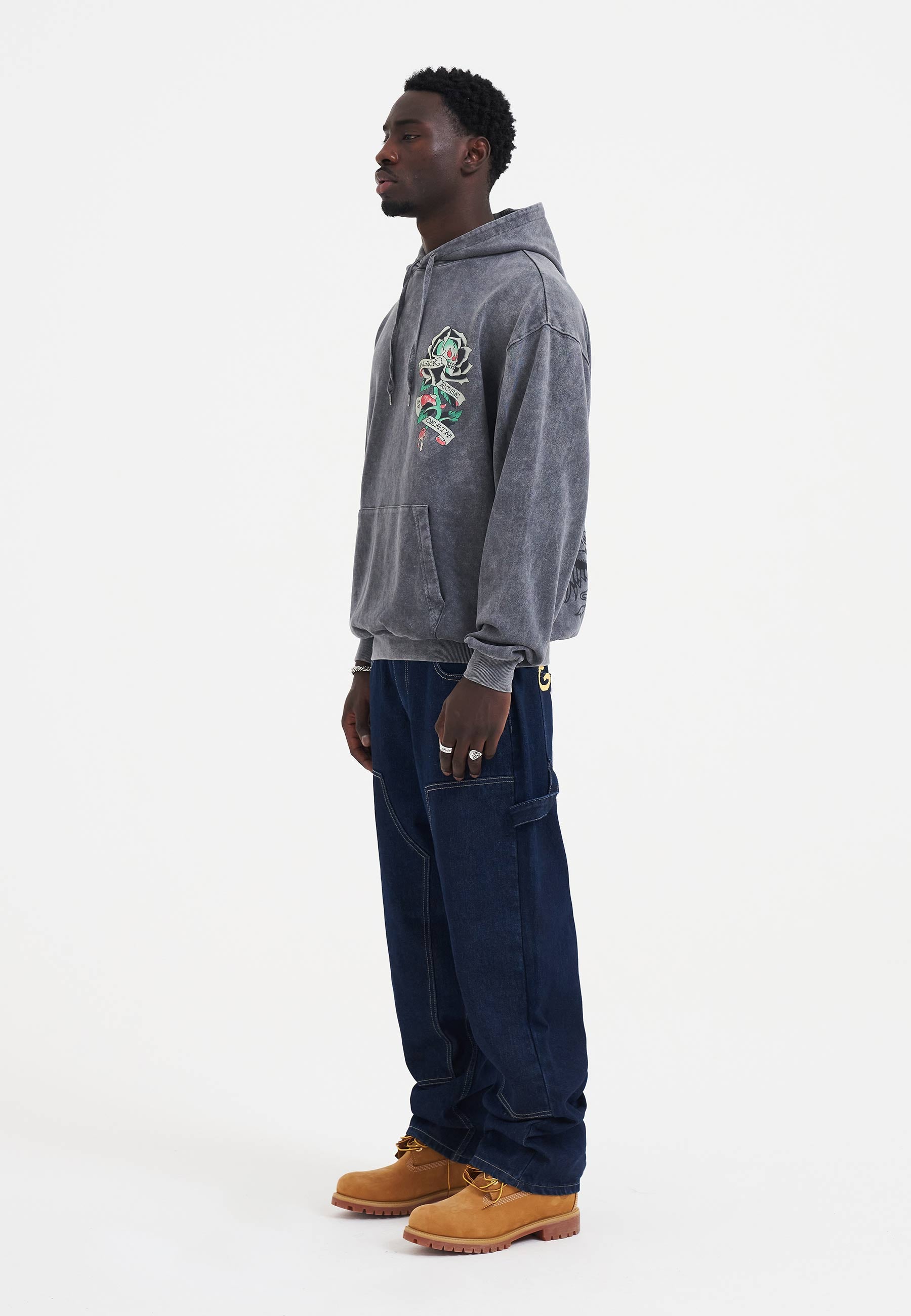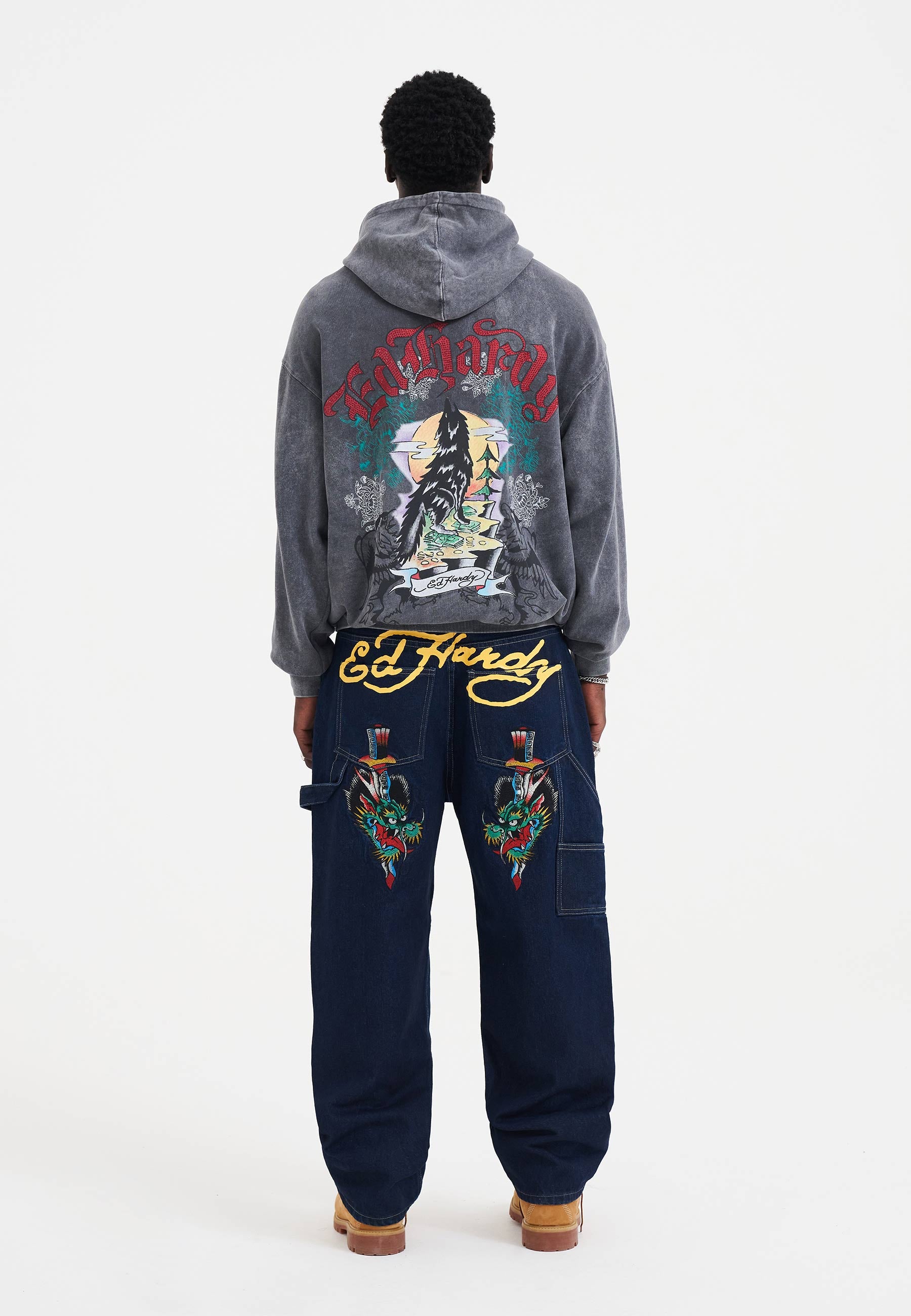 Mens Don Wolf Eagle Panther Diamante Hoodie - Charcoal