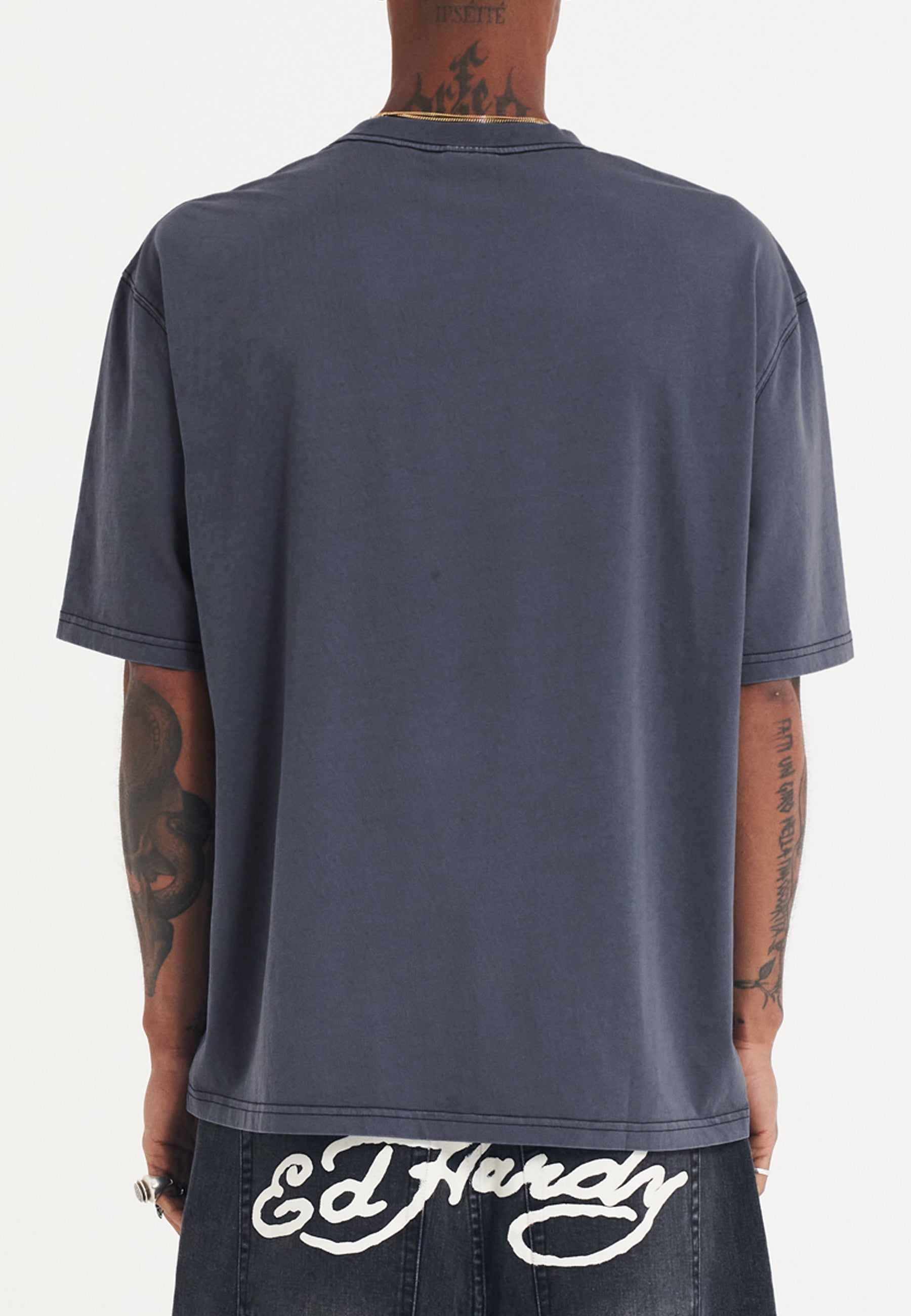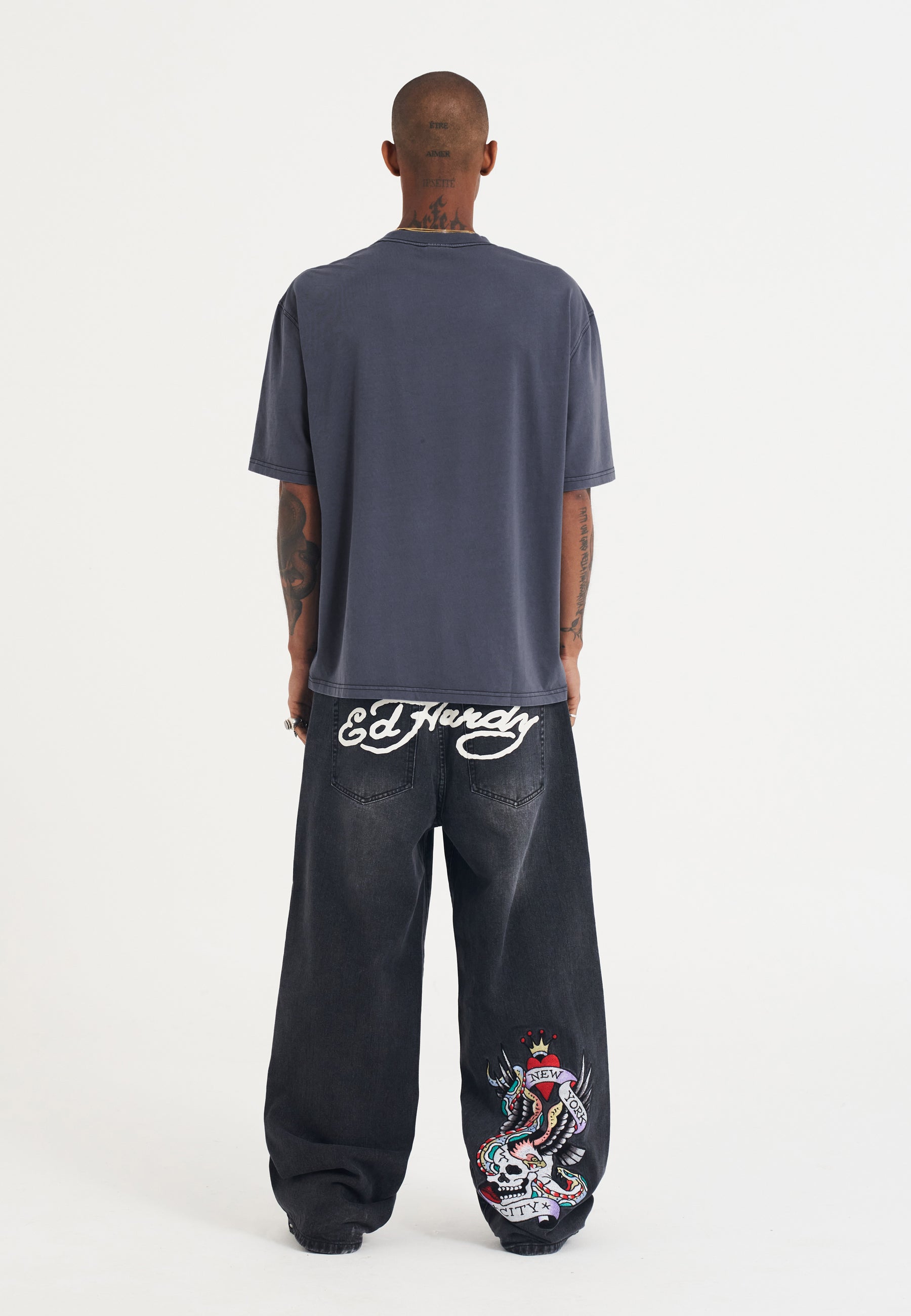 Mens Ed Hardy Distressed Applique Relaxed Tshirt - Blue