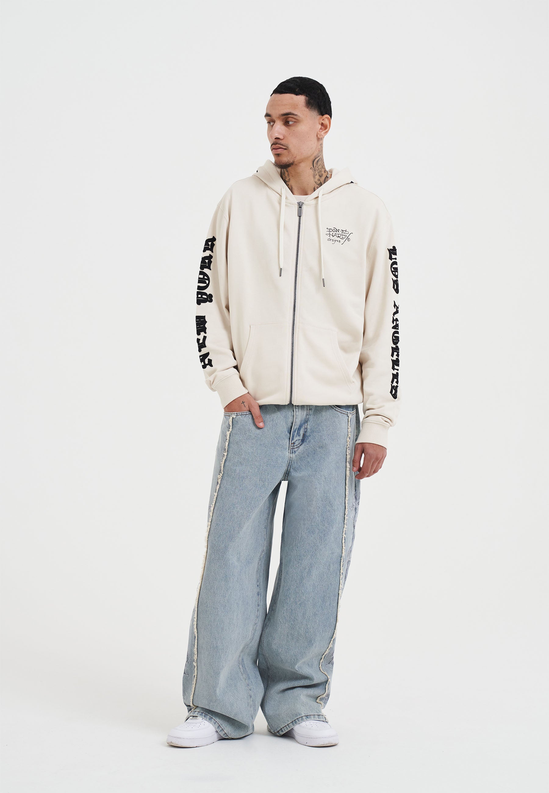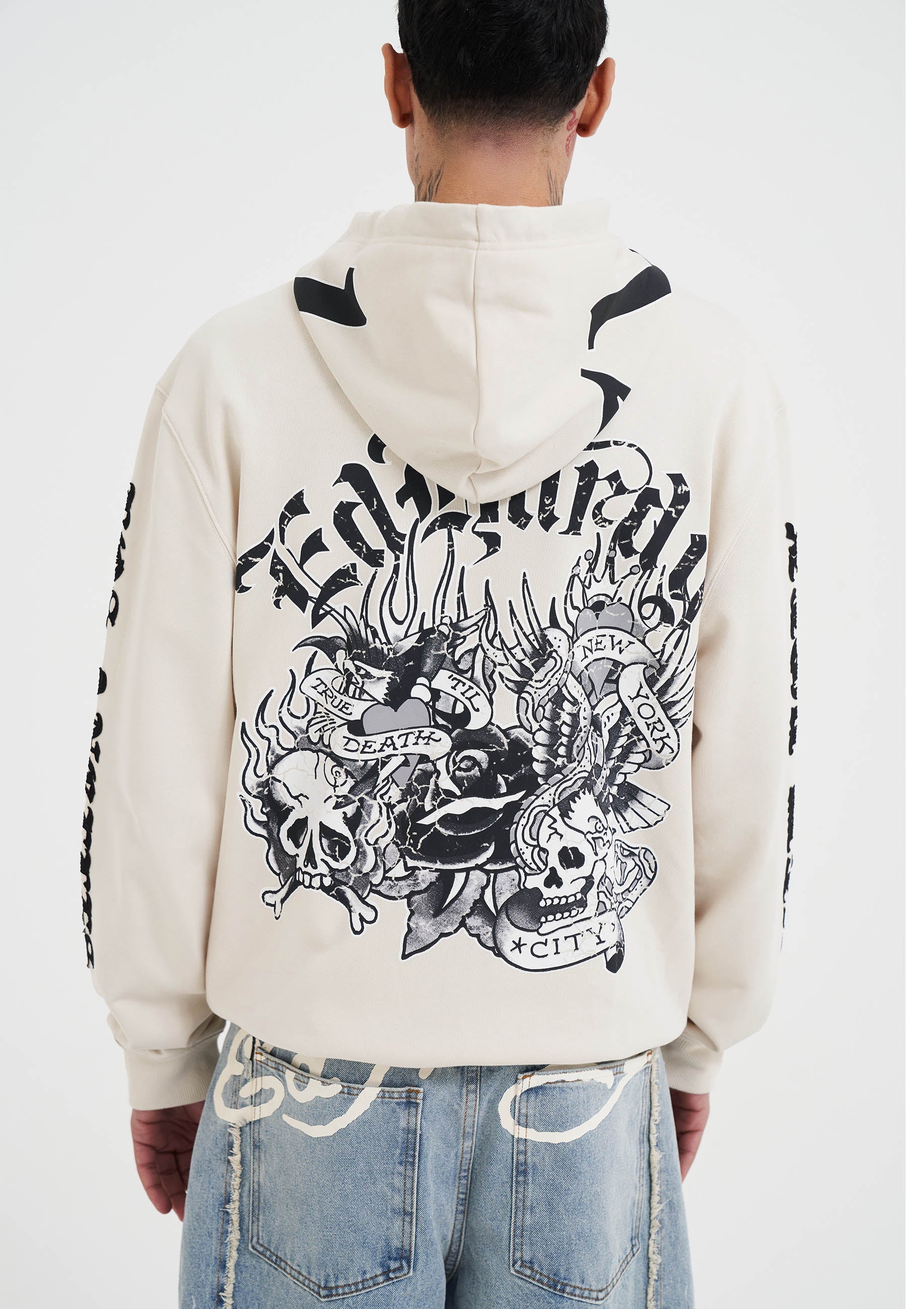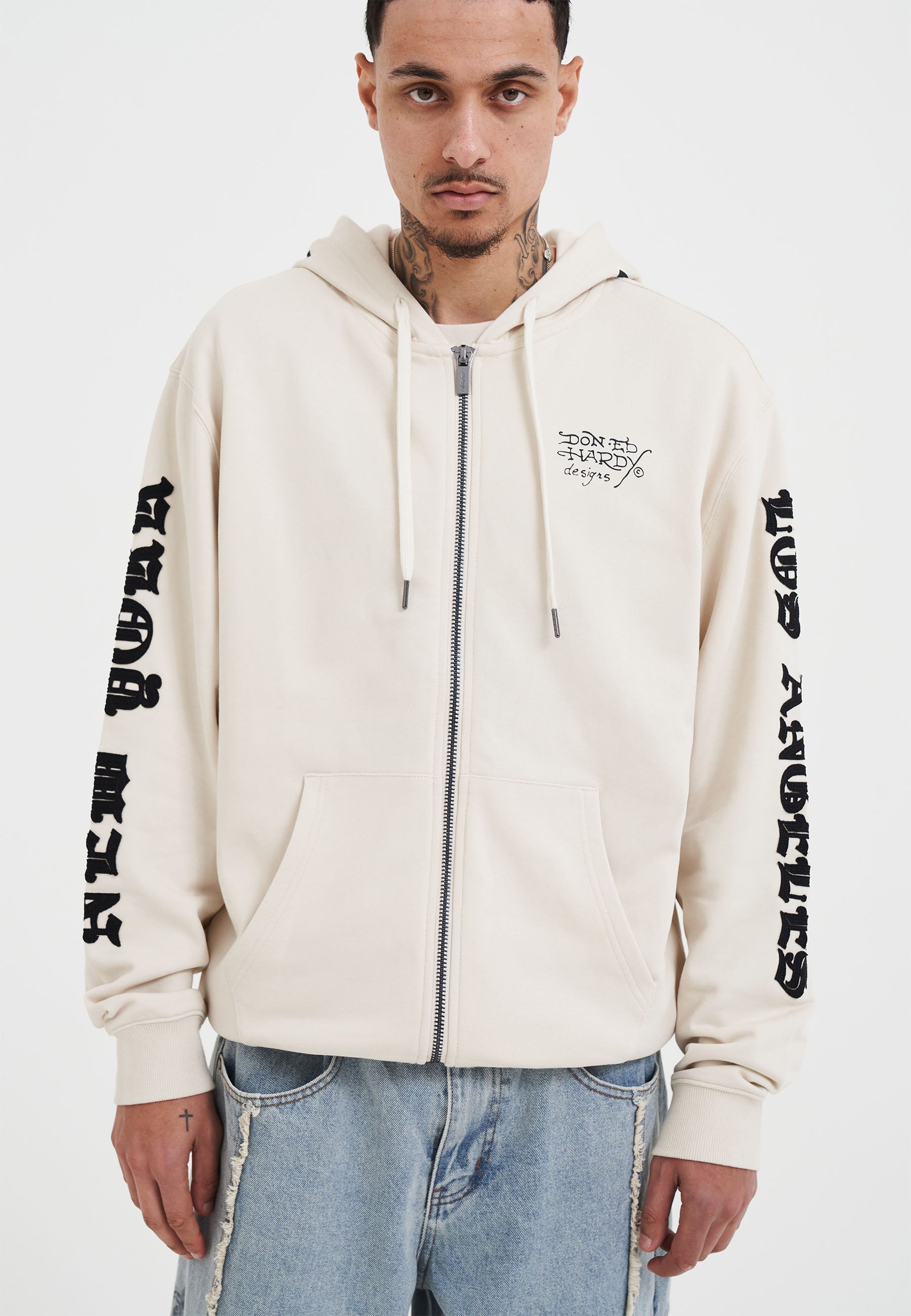 Mens Ed Mono Montage Zip Thru Hoodie - Beige