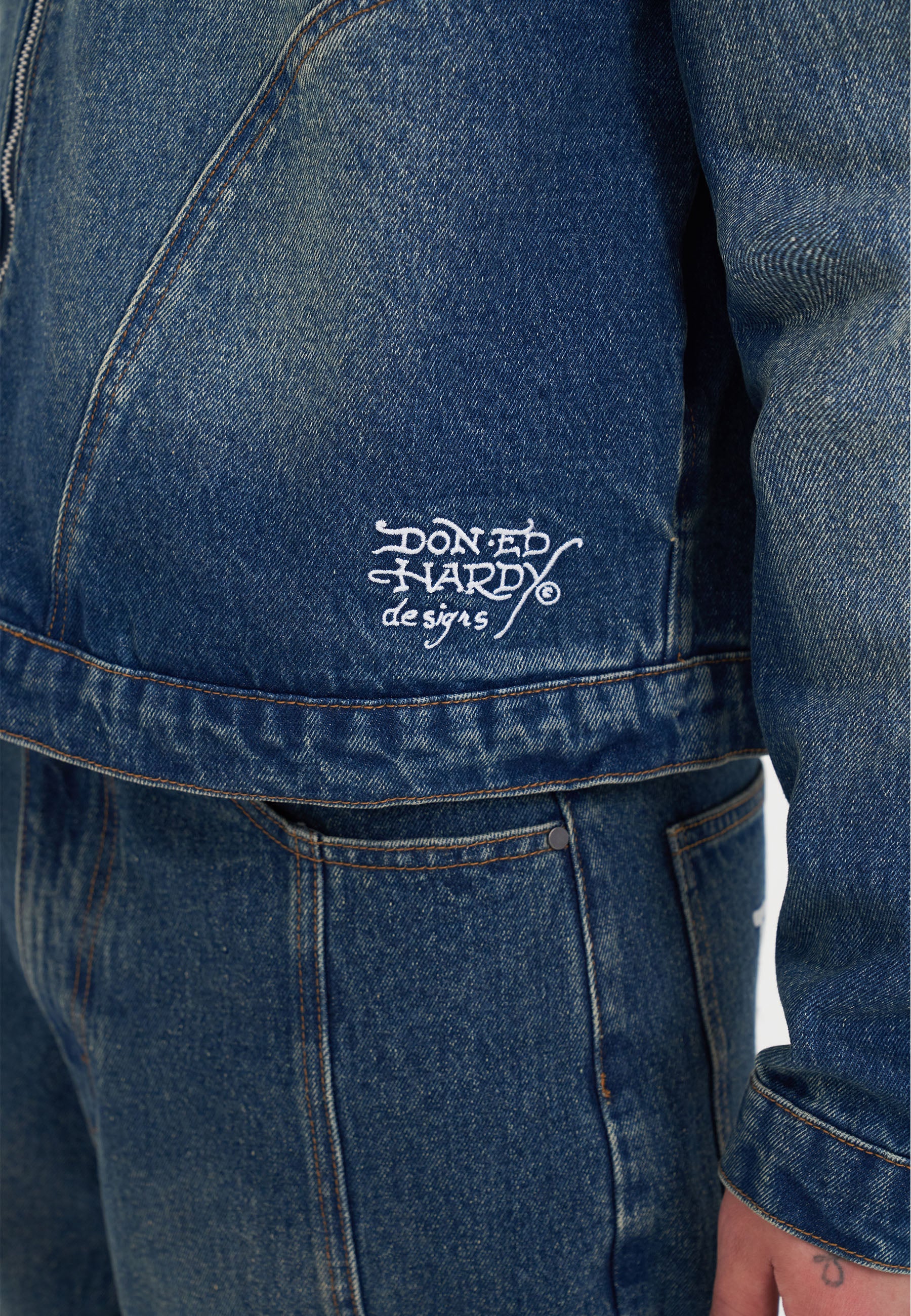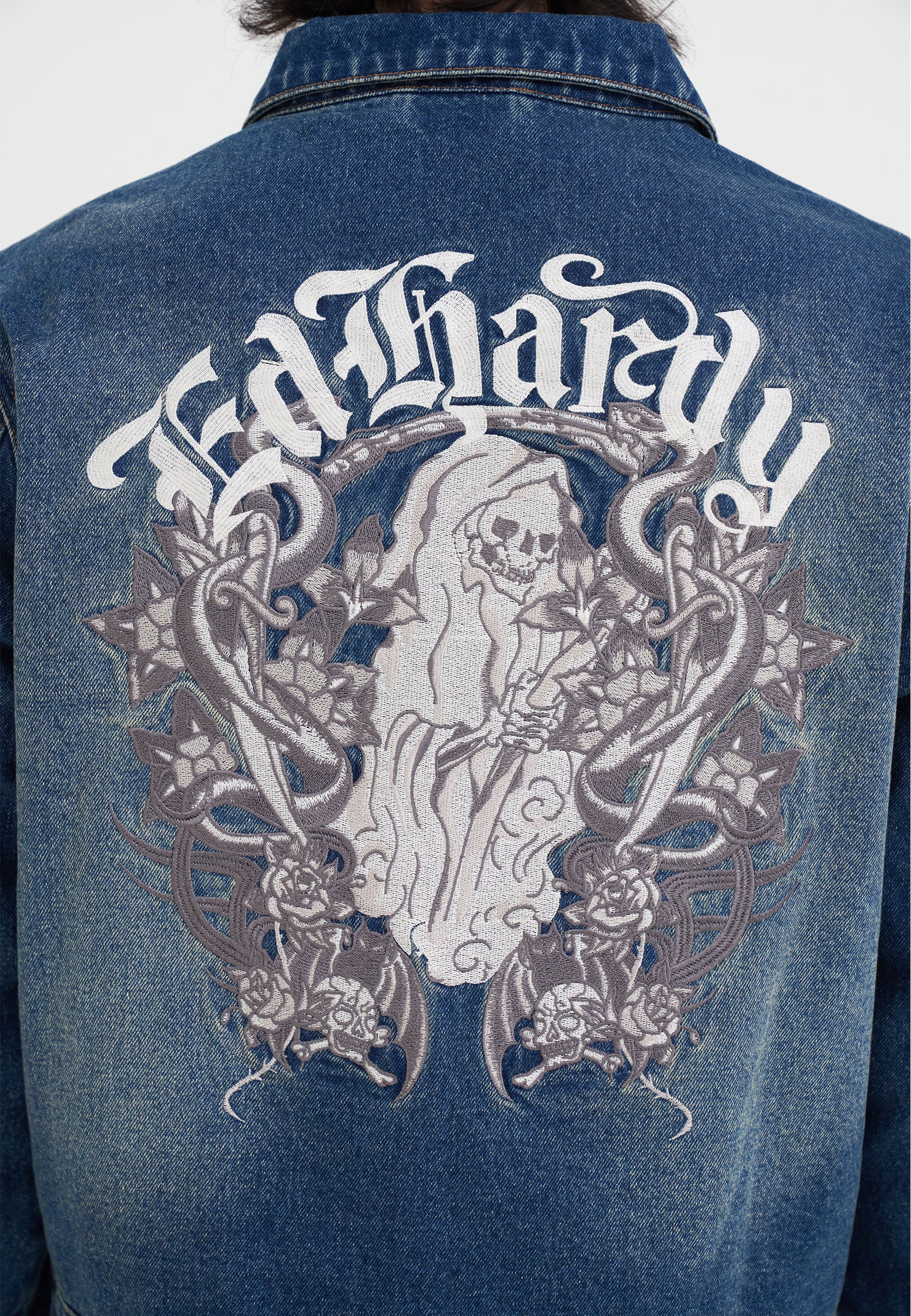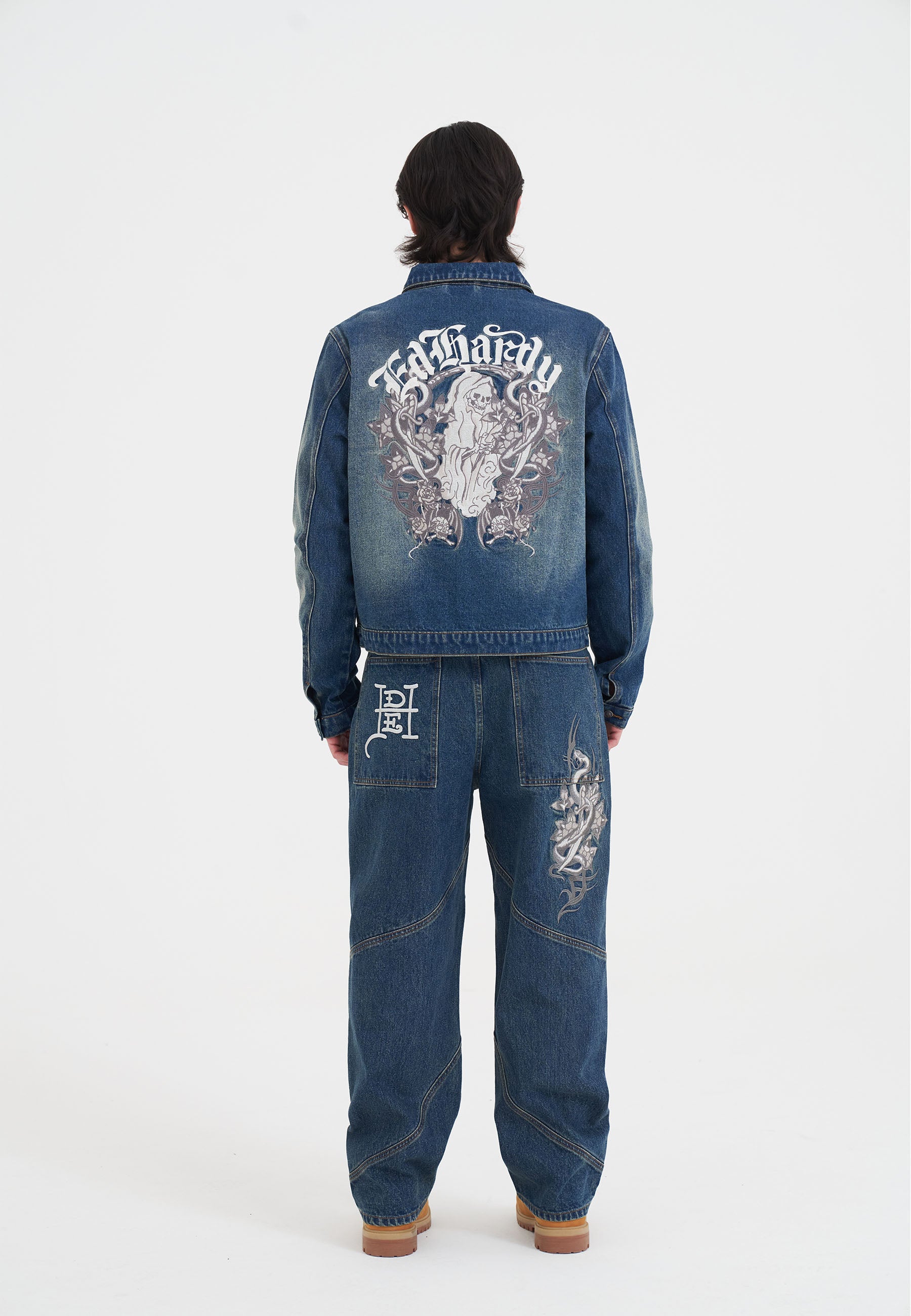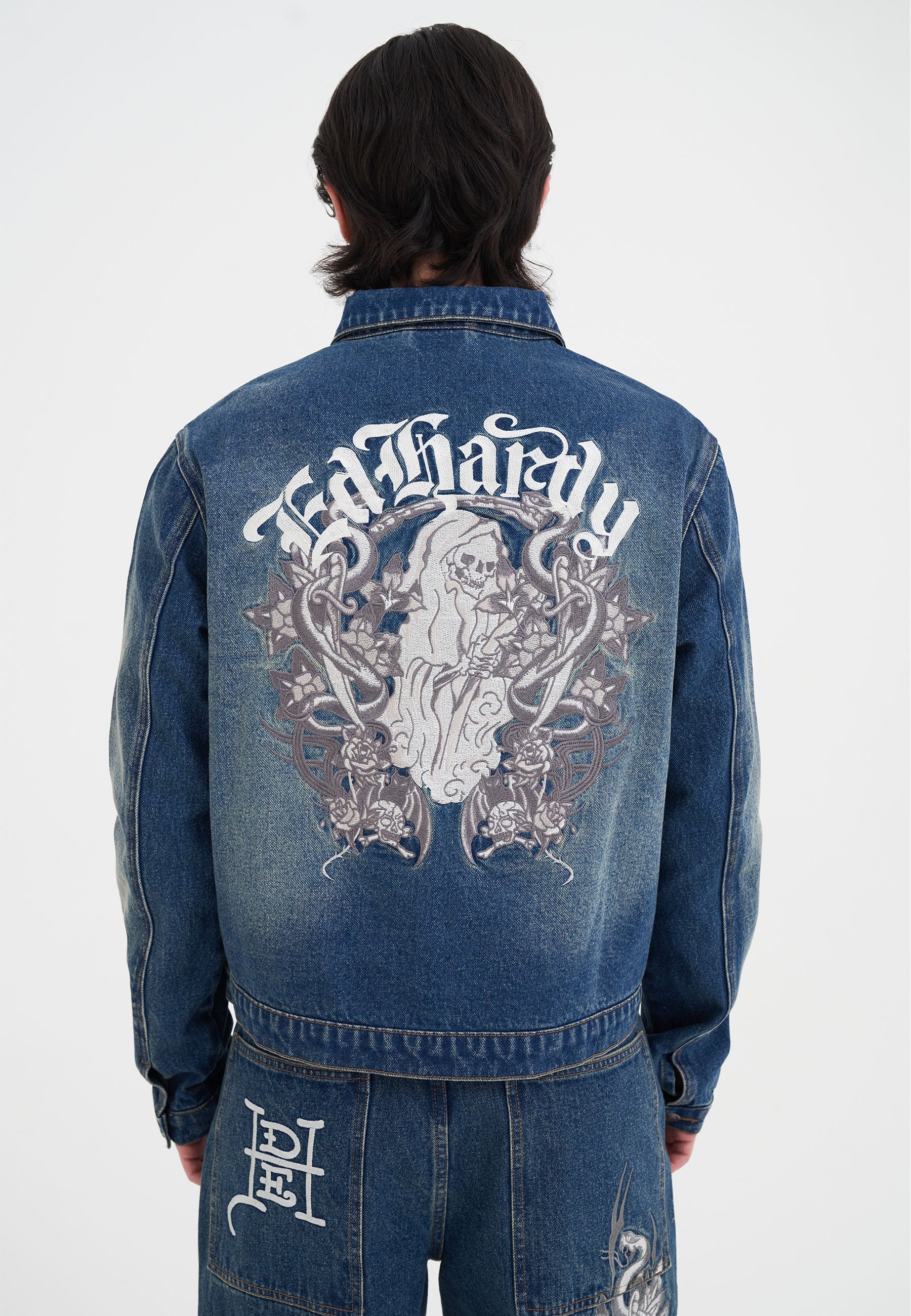 MENS FLAMING SKULL DENIM JACKET in Indigo