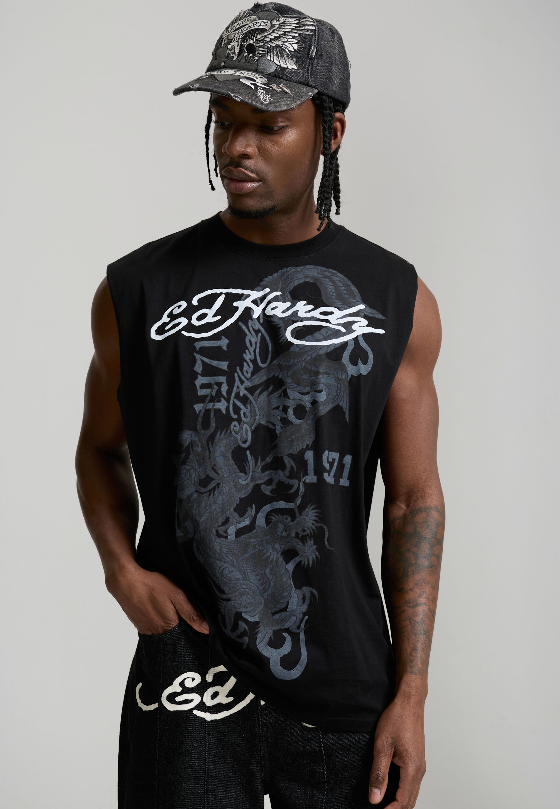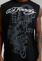 Mens Flying Dragon Graphic Sleeveless T-Shirt in Black