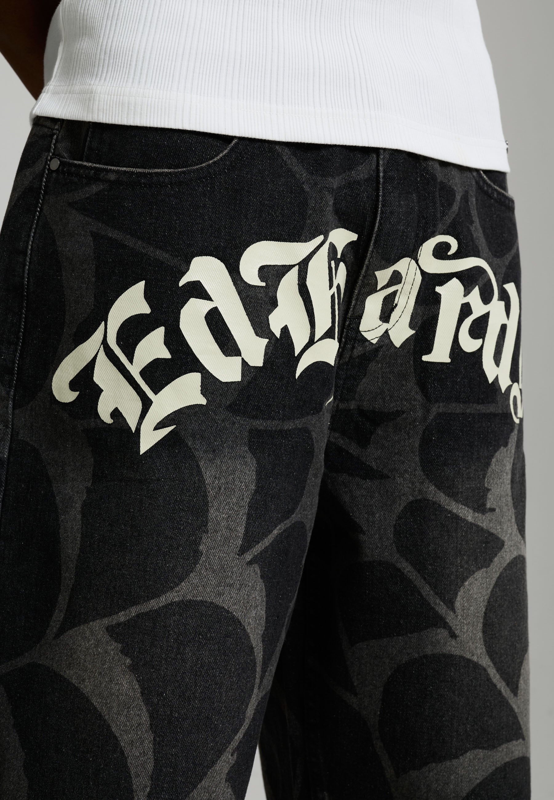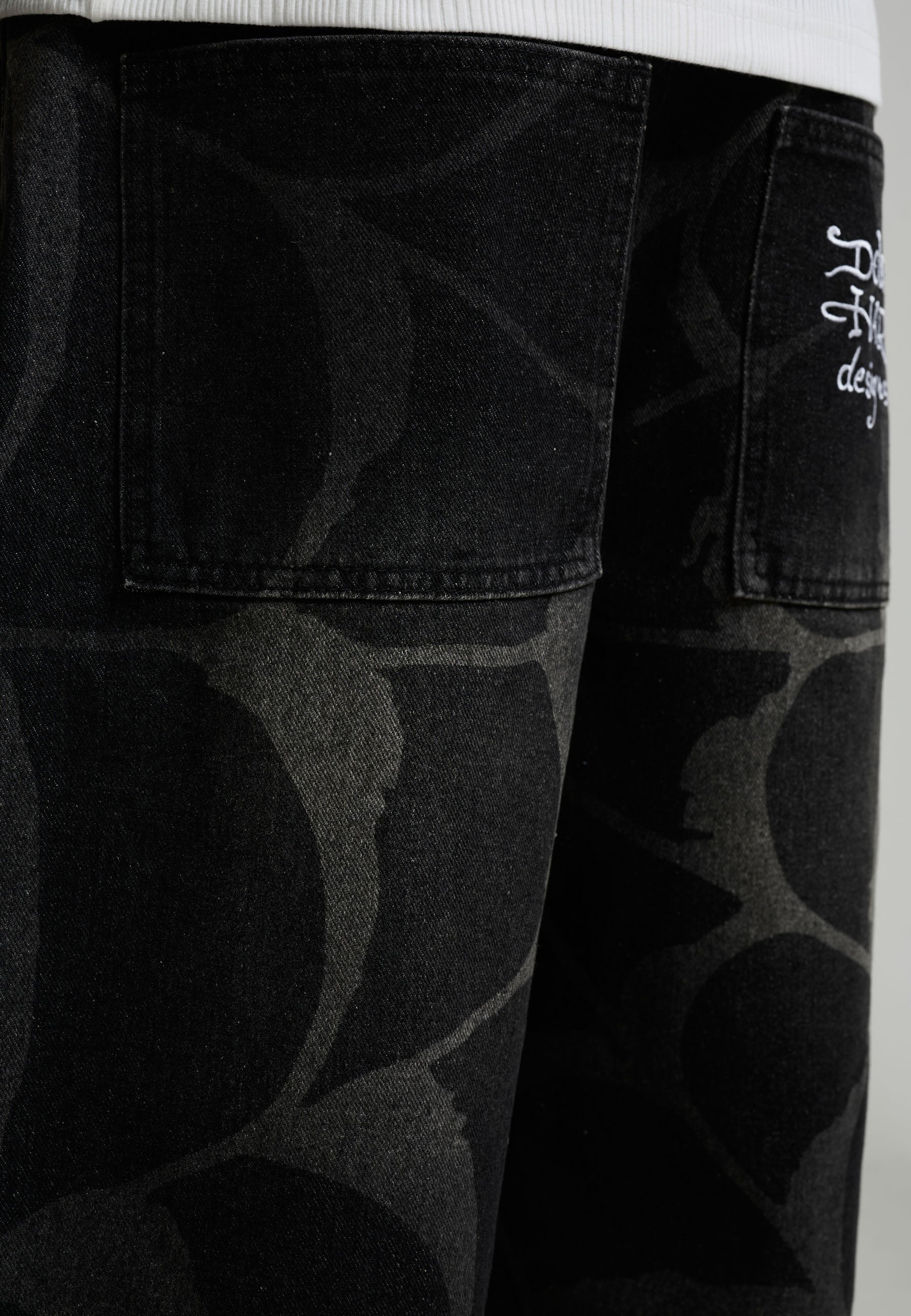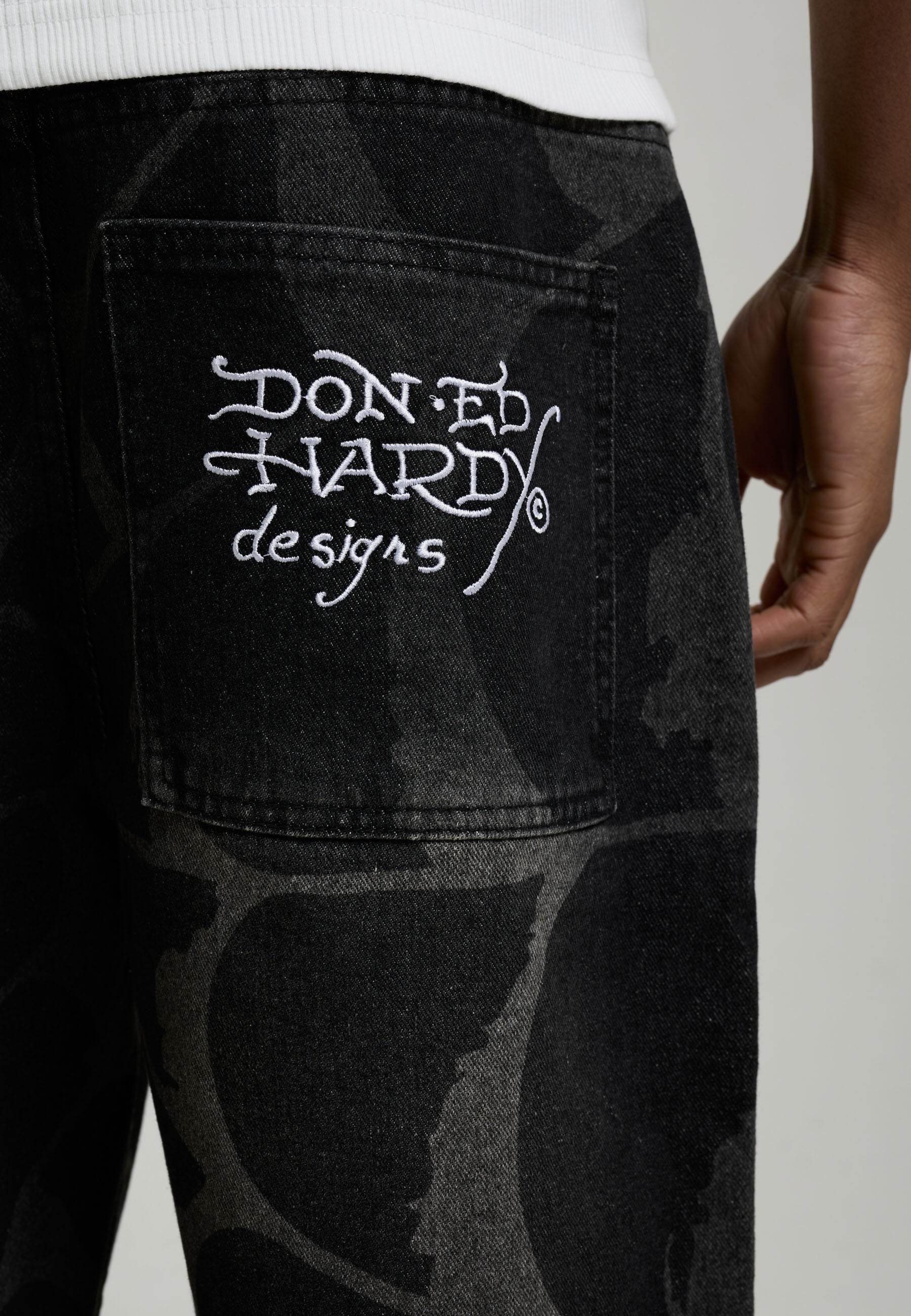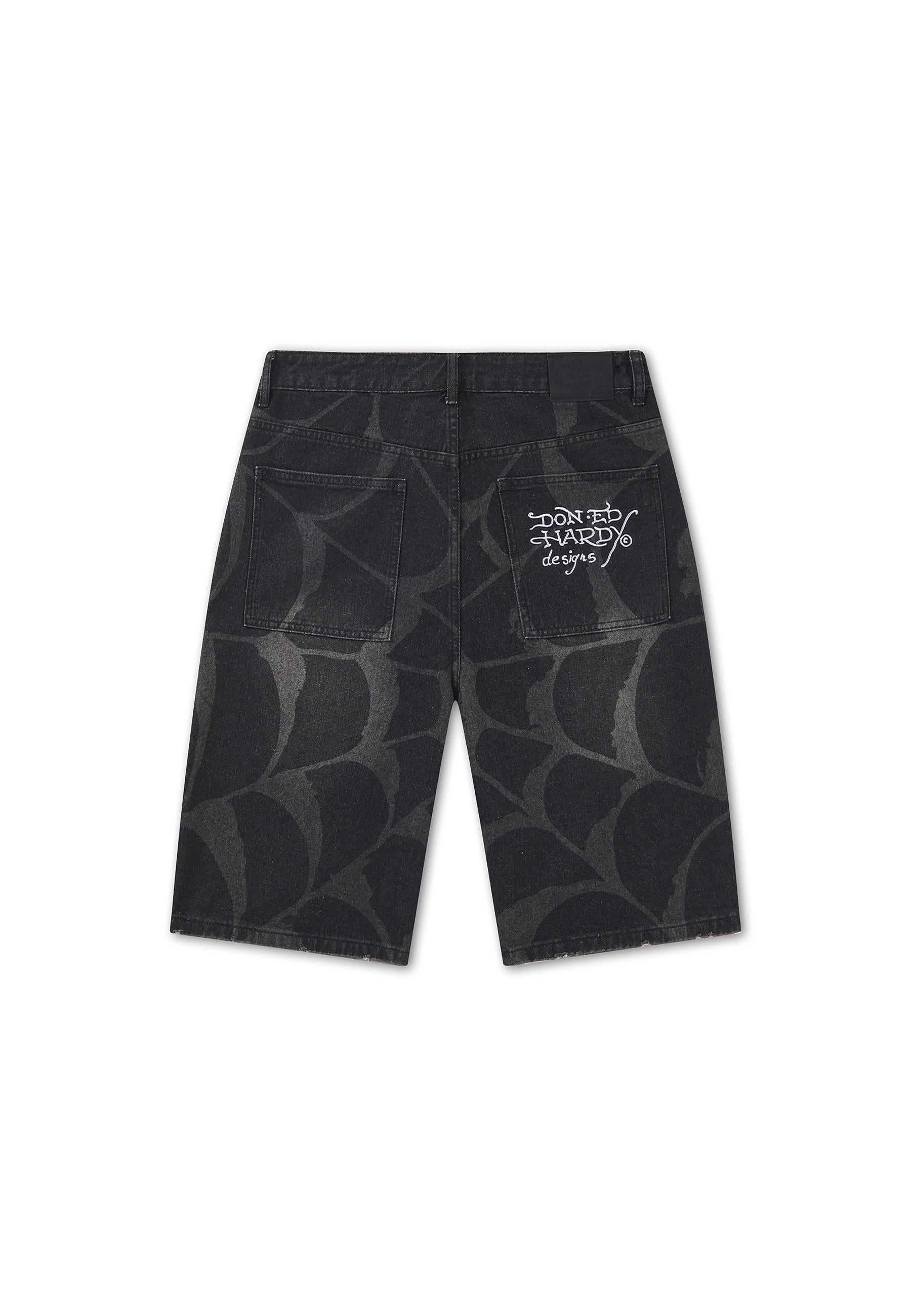 100% COTTON RELAXED FIT 12OZ ED HARDY PRINT COBWEB GRAPHIC ALL OVER PRINT EMBROIDERY AT BACK POCKET