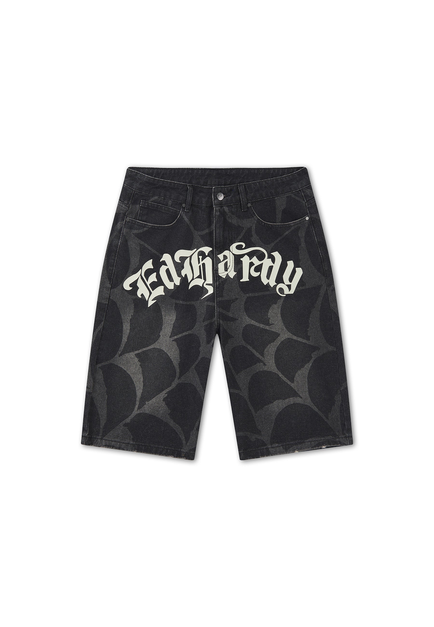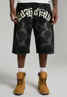 Mens Gothic Ed Hardy Cobweb Denim Jorts - Vintage Charcoal