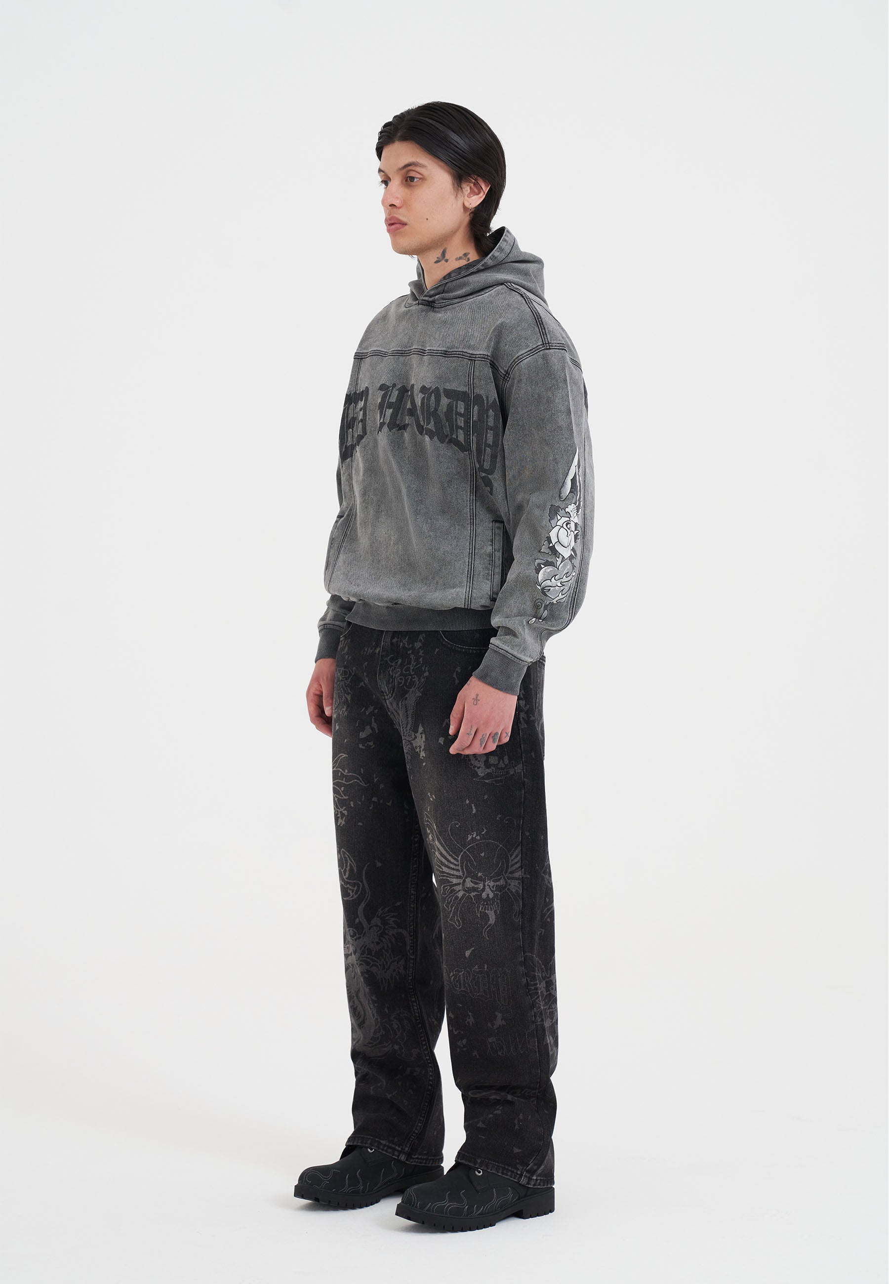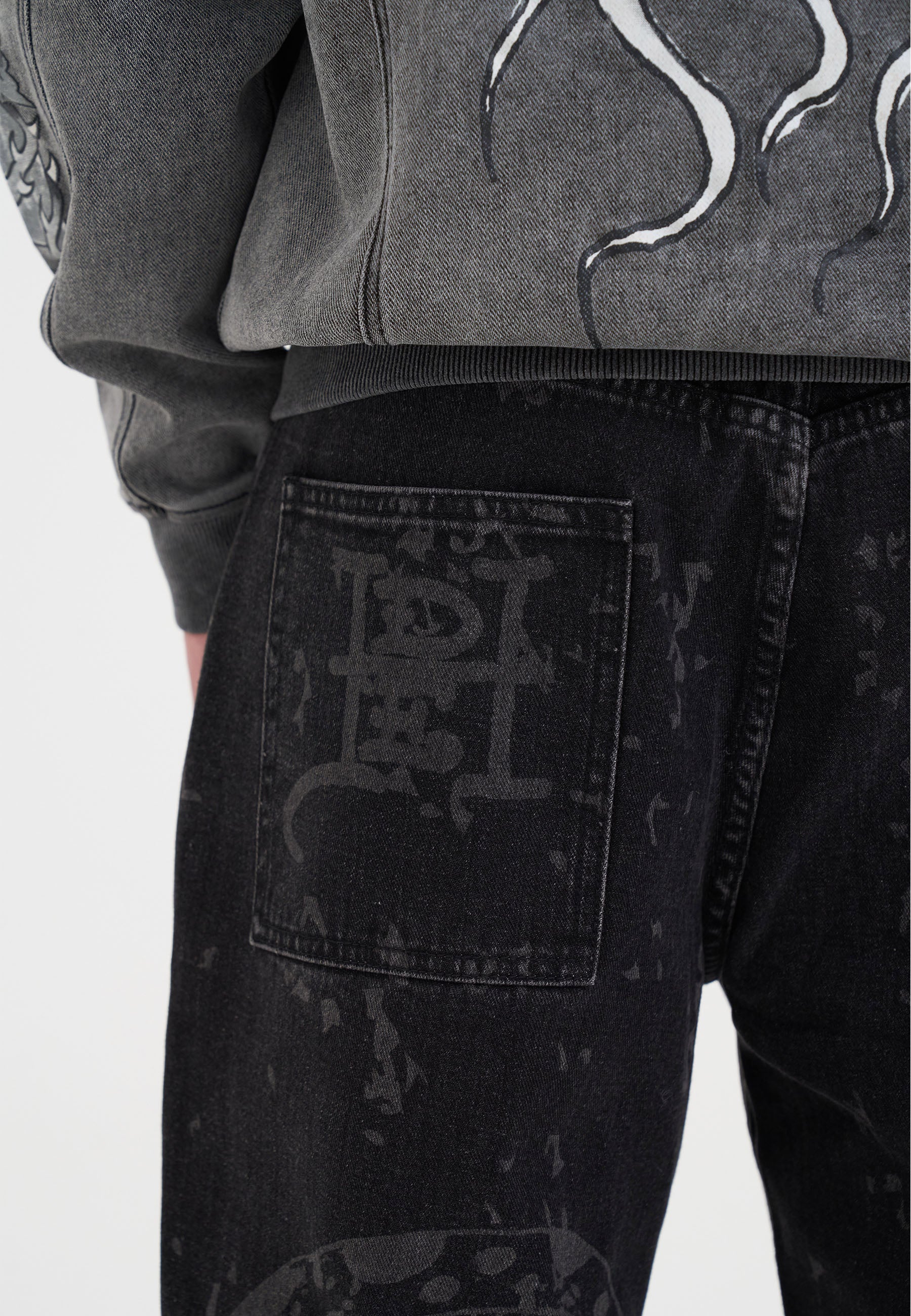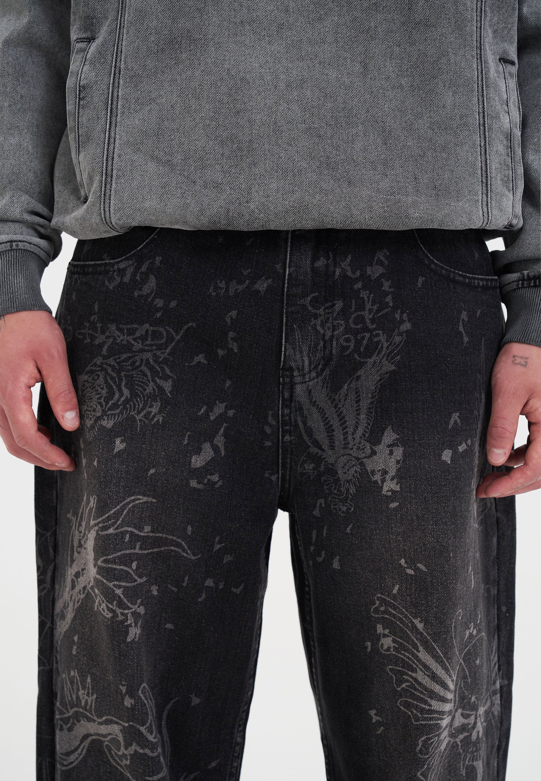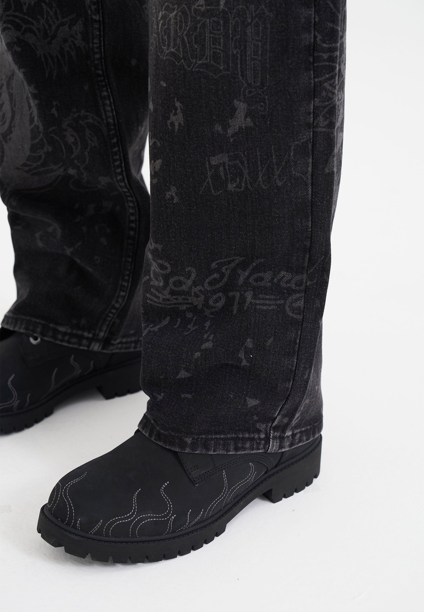 Mens Gothic Multi Graphic Jeans - Black