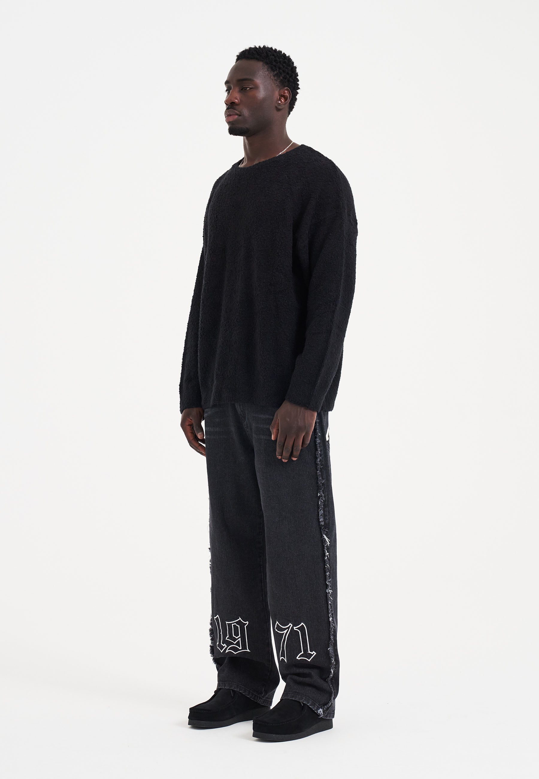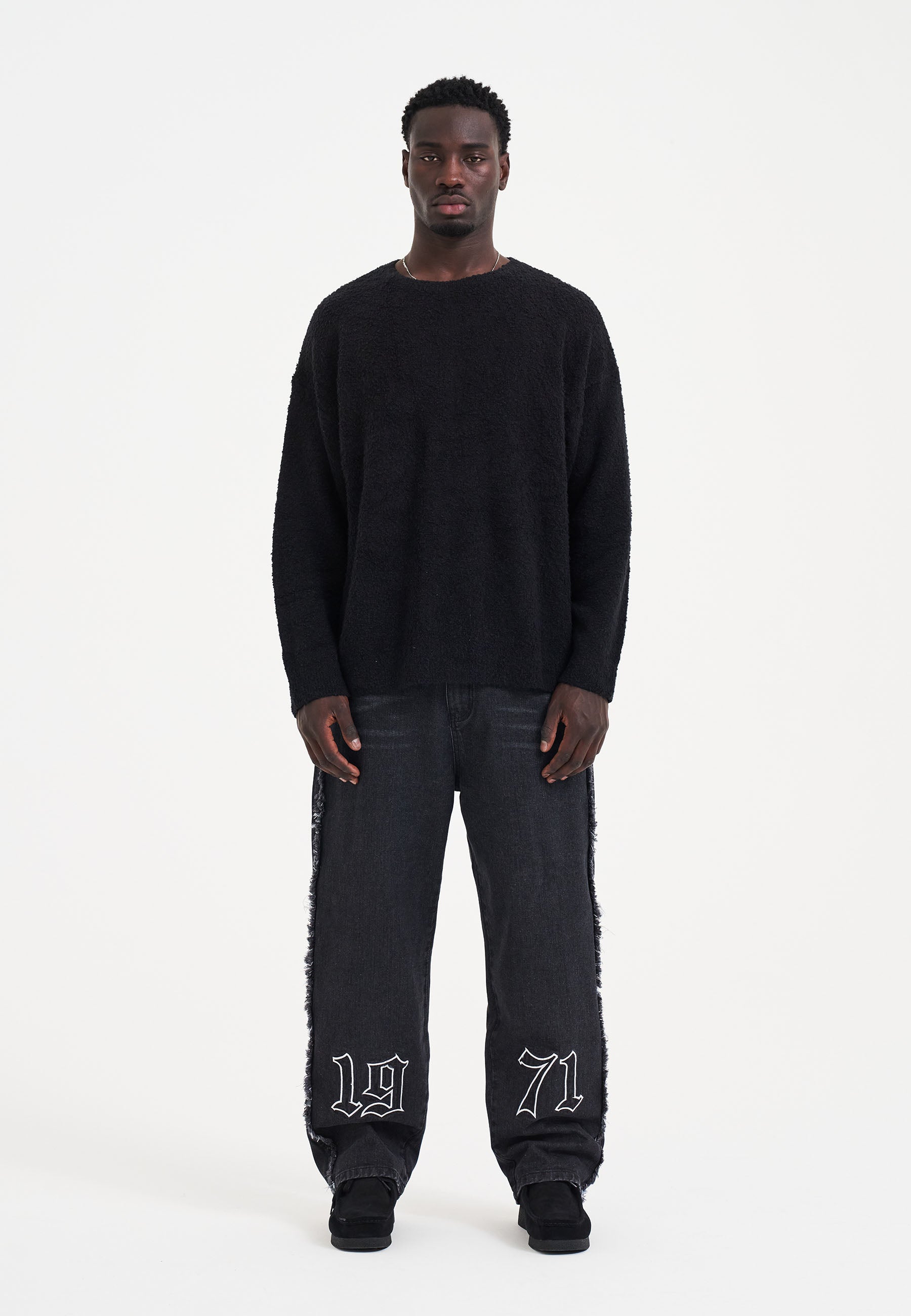 Mens Lucky 13 Boucle Knitted Jumper - Black