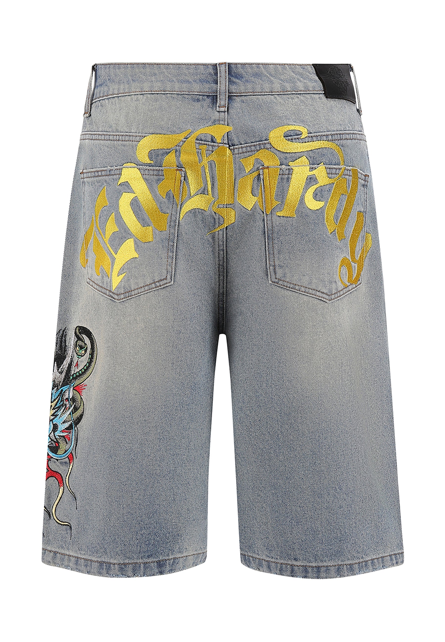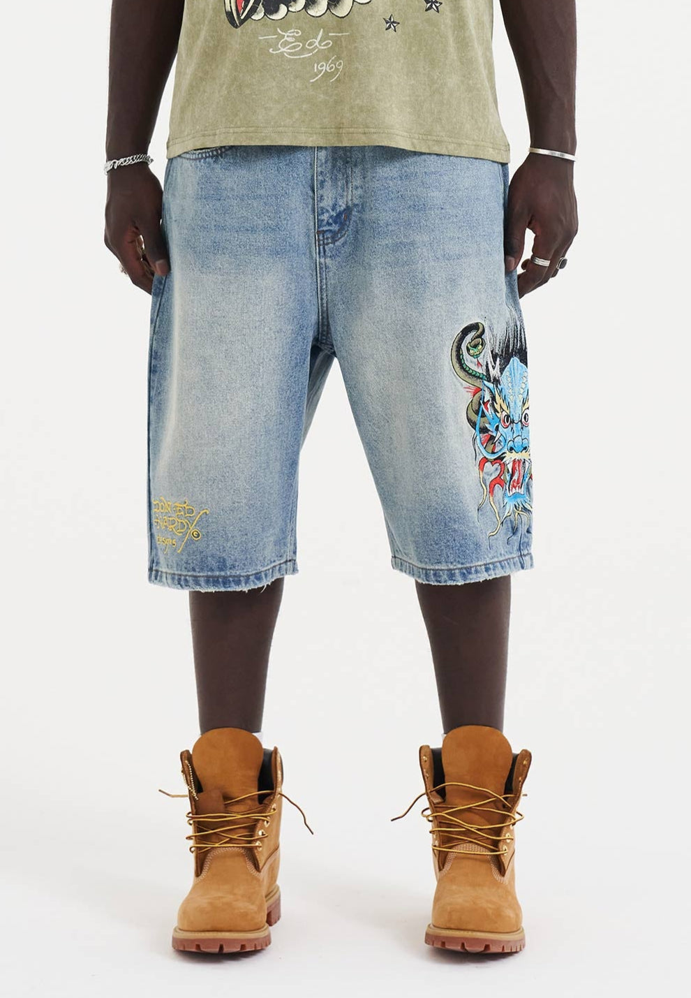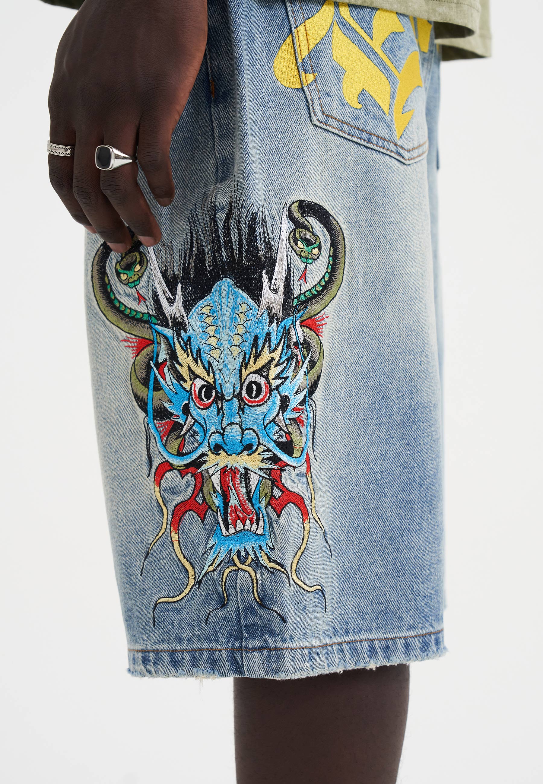 Mens Medusa Drag Denim Skater Jorts Shorts - Bleach
